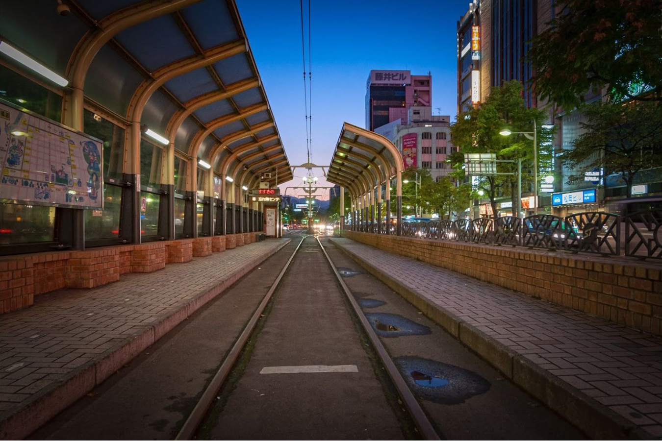 かつては終端駅でしたが、2012年(平成24年)に、西4丁目停留場とつないで環状線とする方針が打ち出され、2015年(平成27年)12月20日の都心線の開業により環状線化が完了しています。このループ化工事を機に、西4丁目停留場・狸小路停留場同様、上屋は白いコンクリート製に更新されています。
