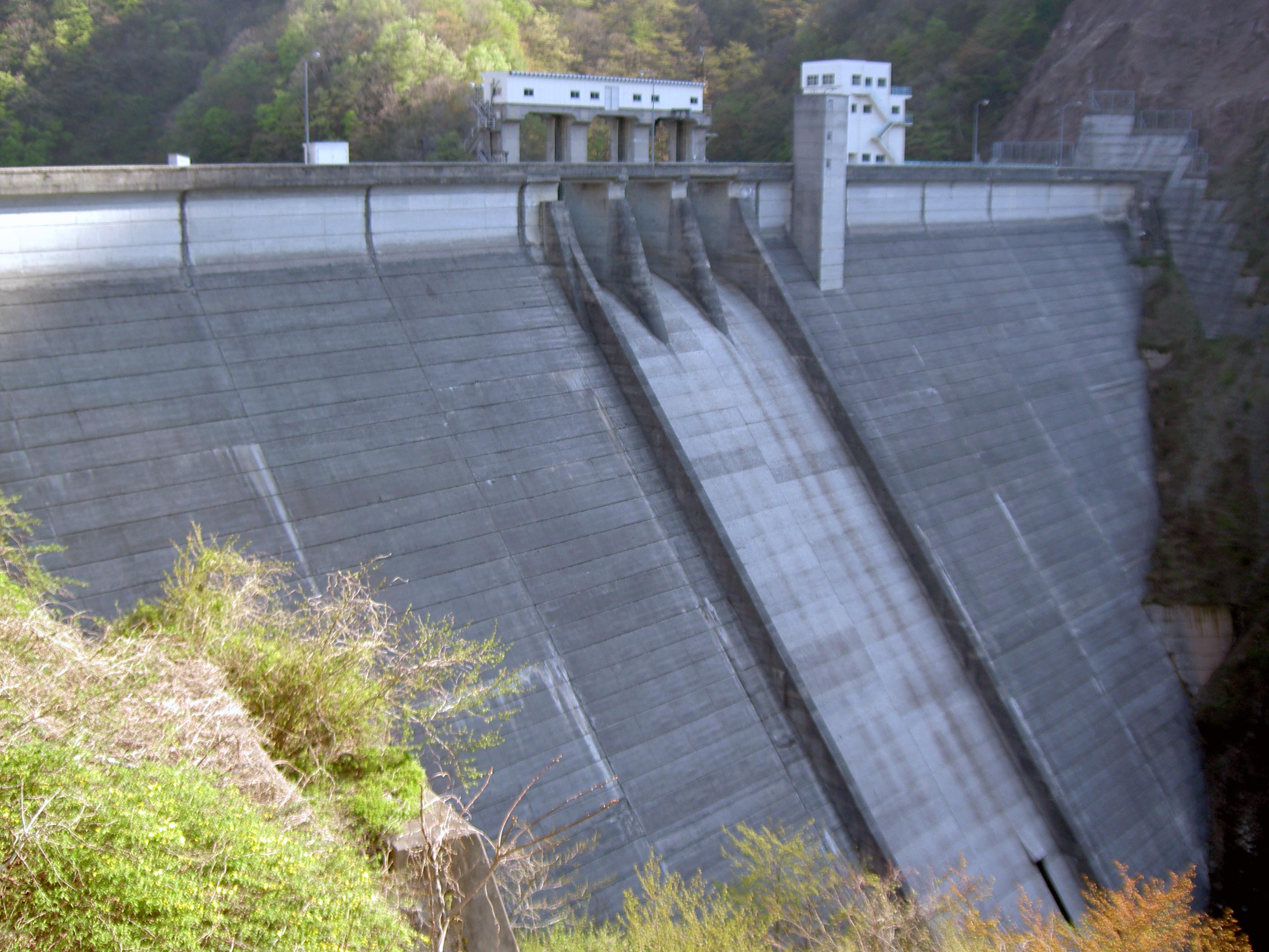 笹生川ダム湖 洪水吐から堤体を望む