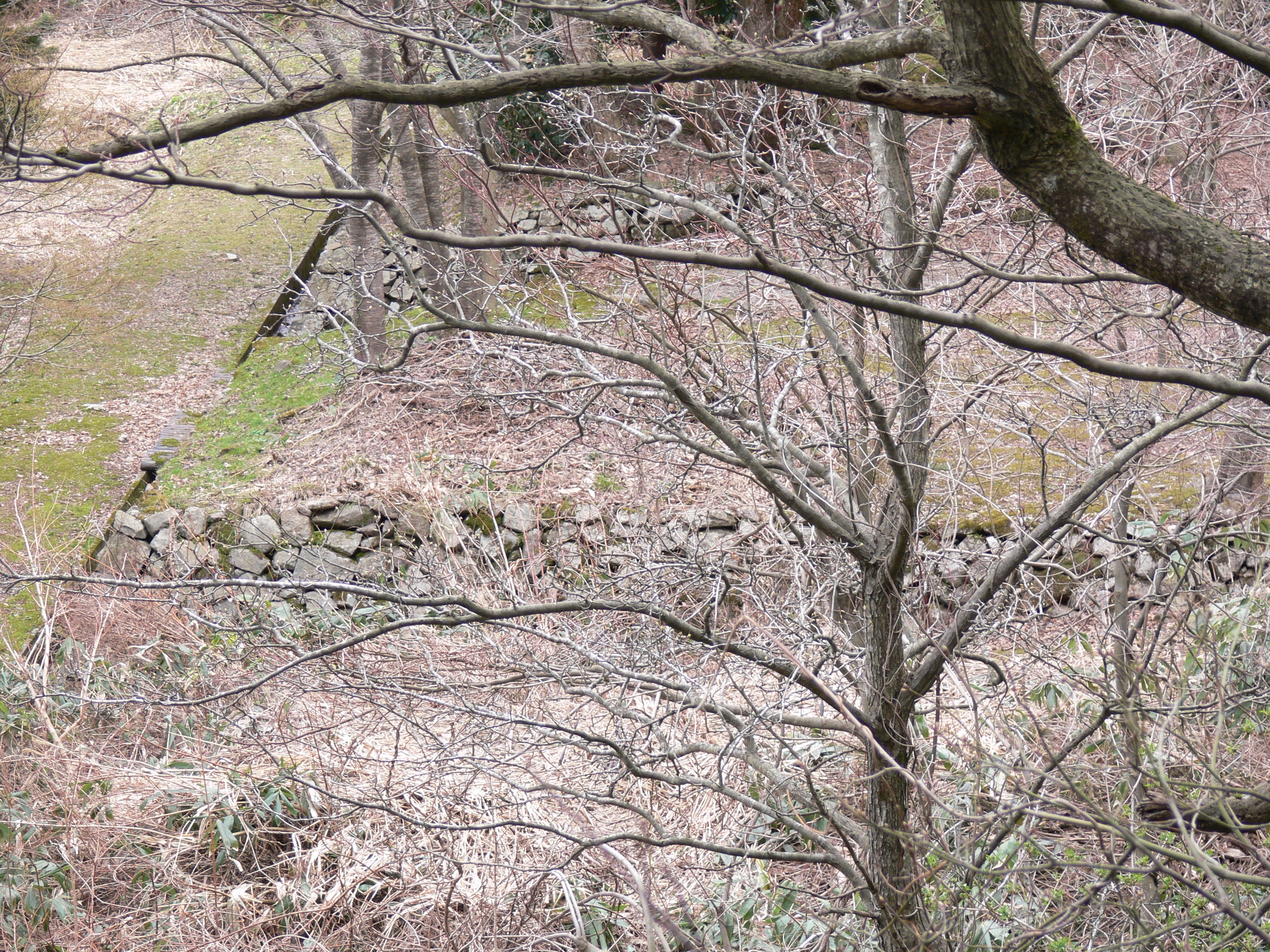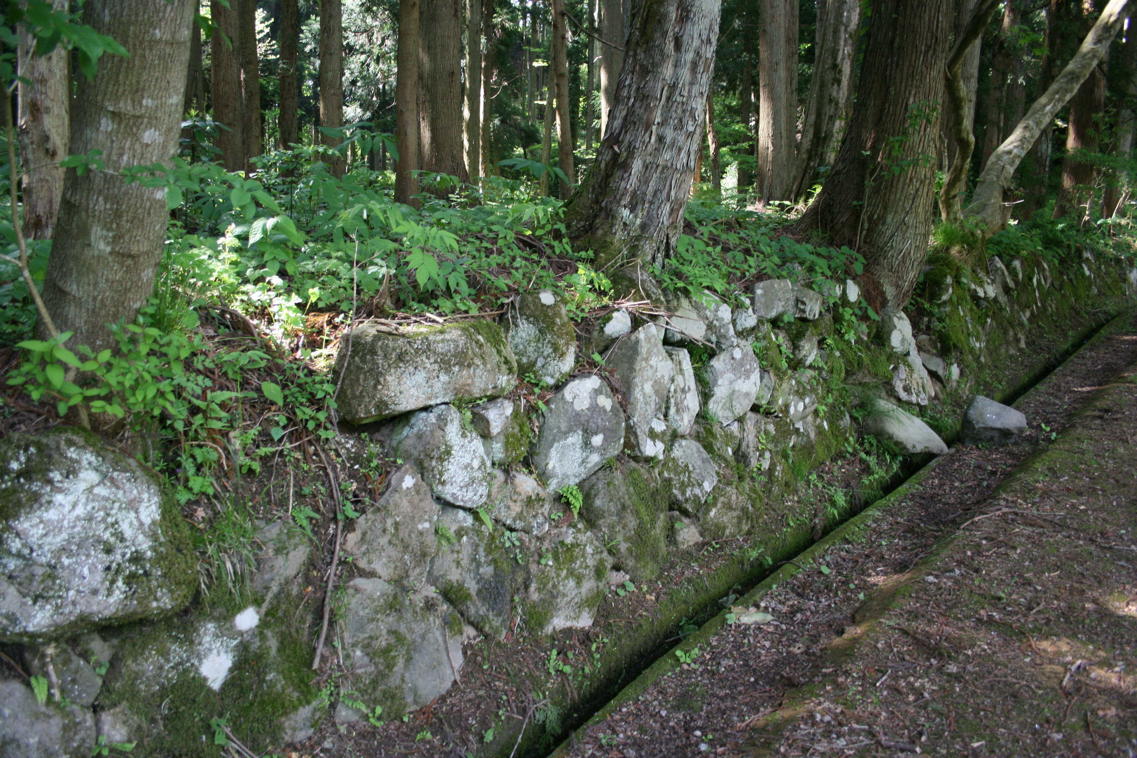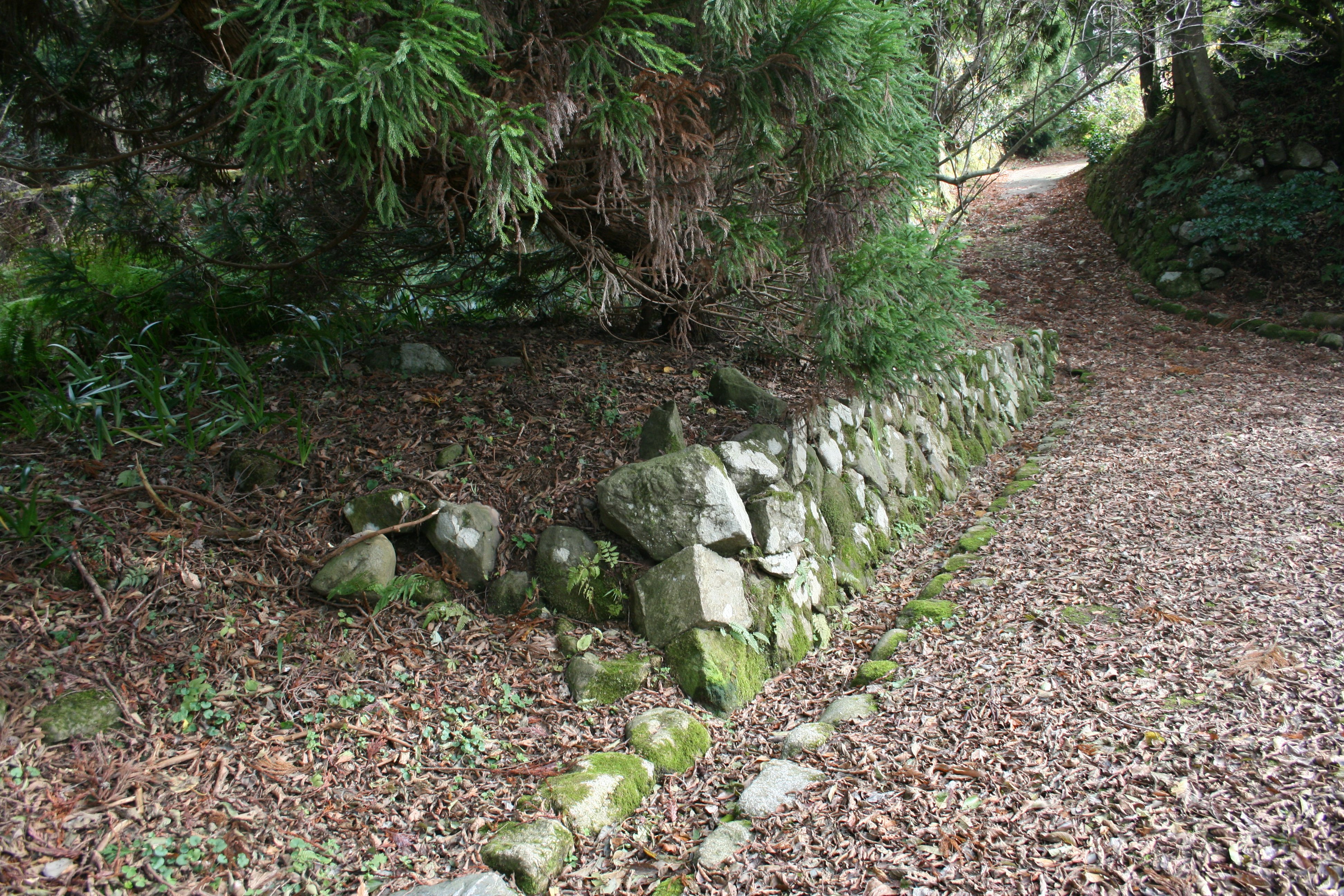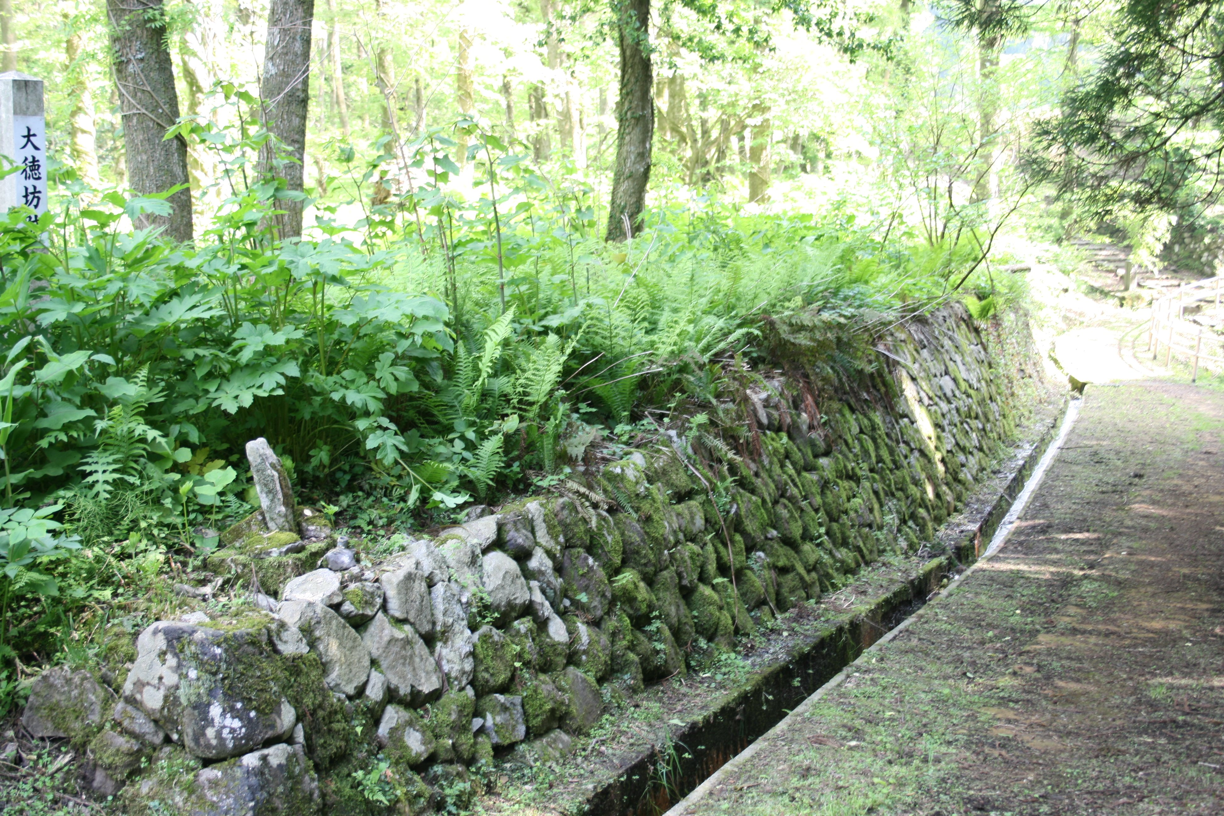 | 仏蔵坊跡と大宮坊の間にある石垣 |