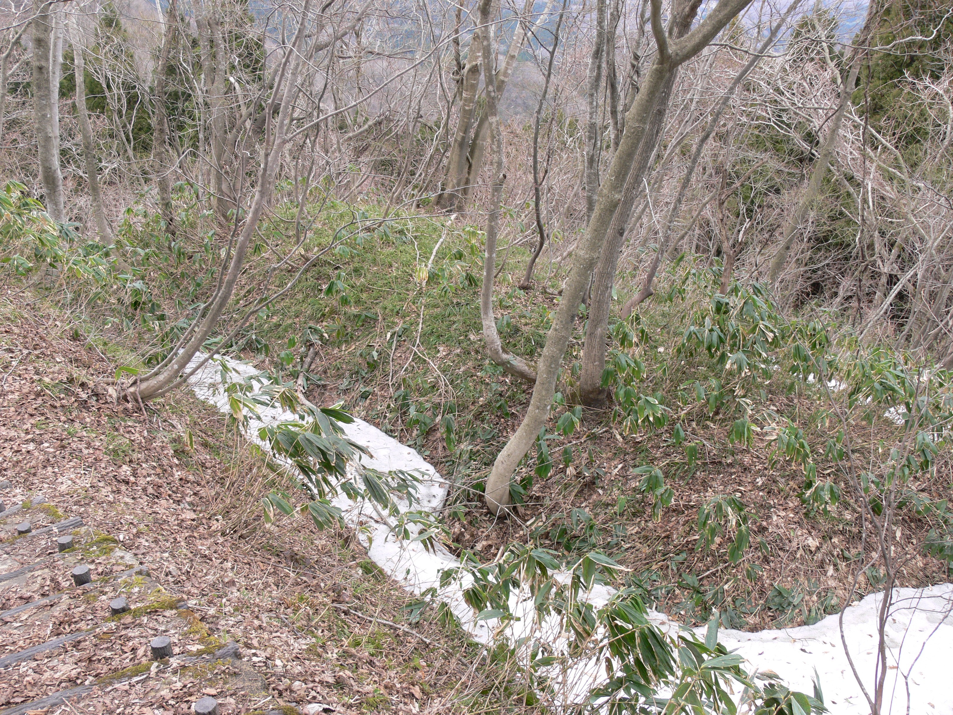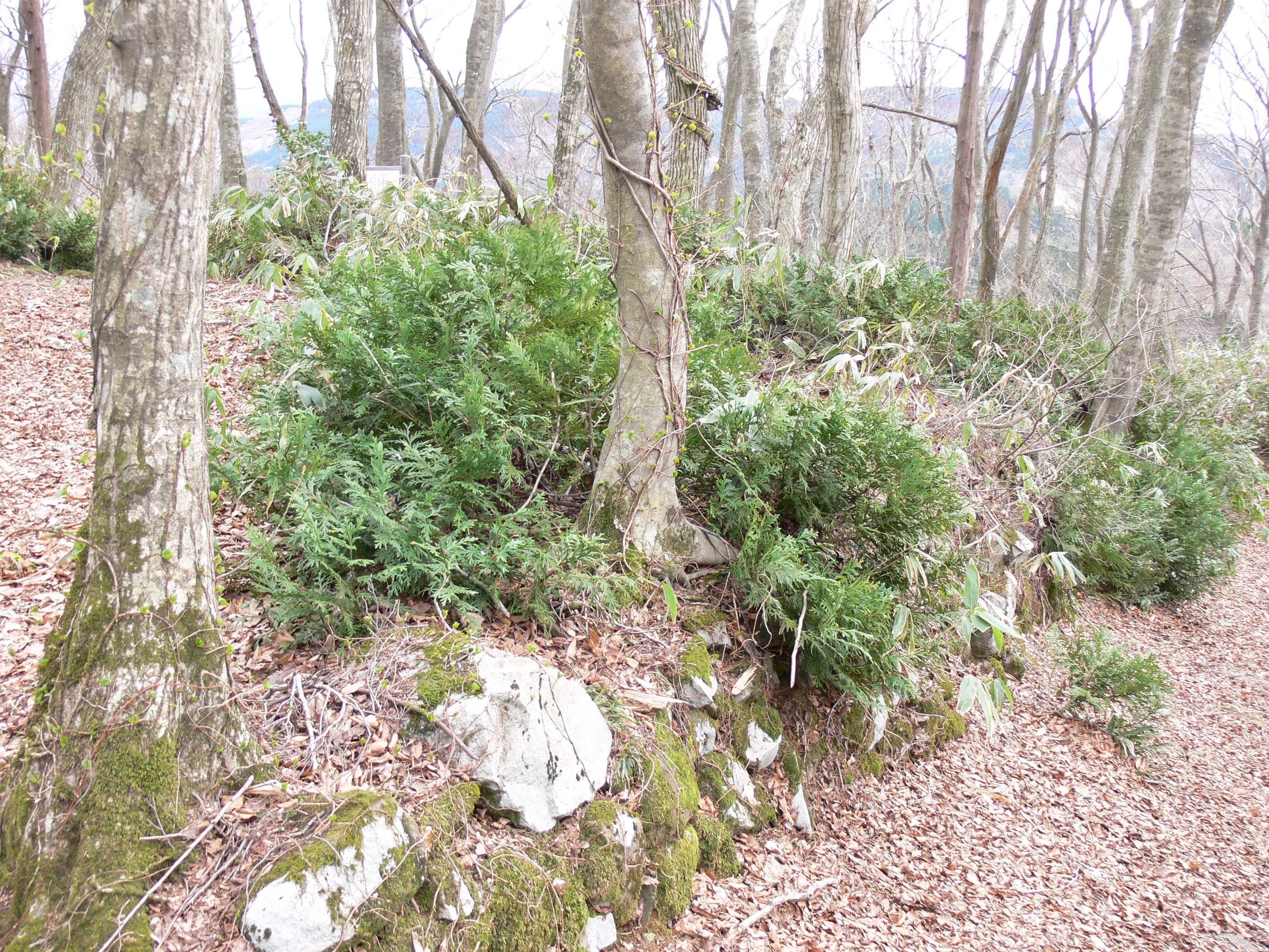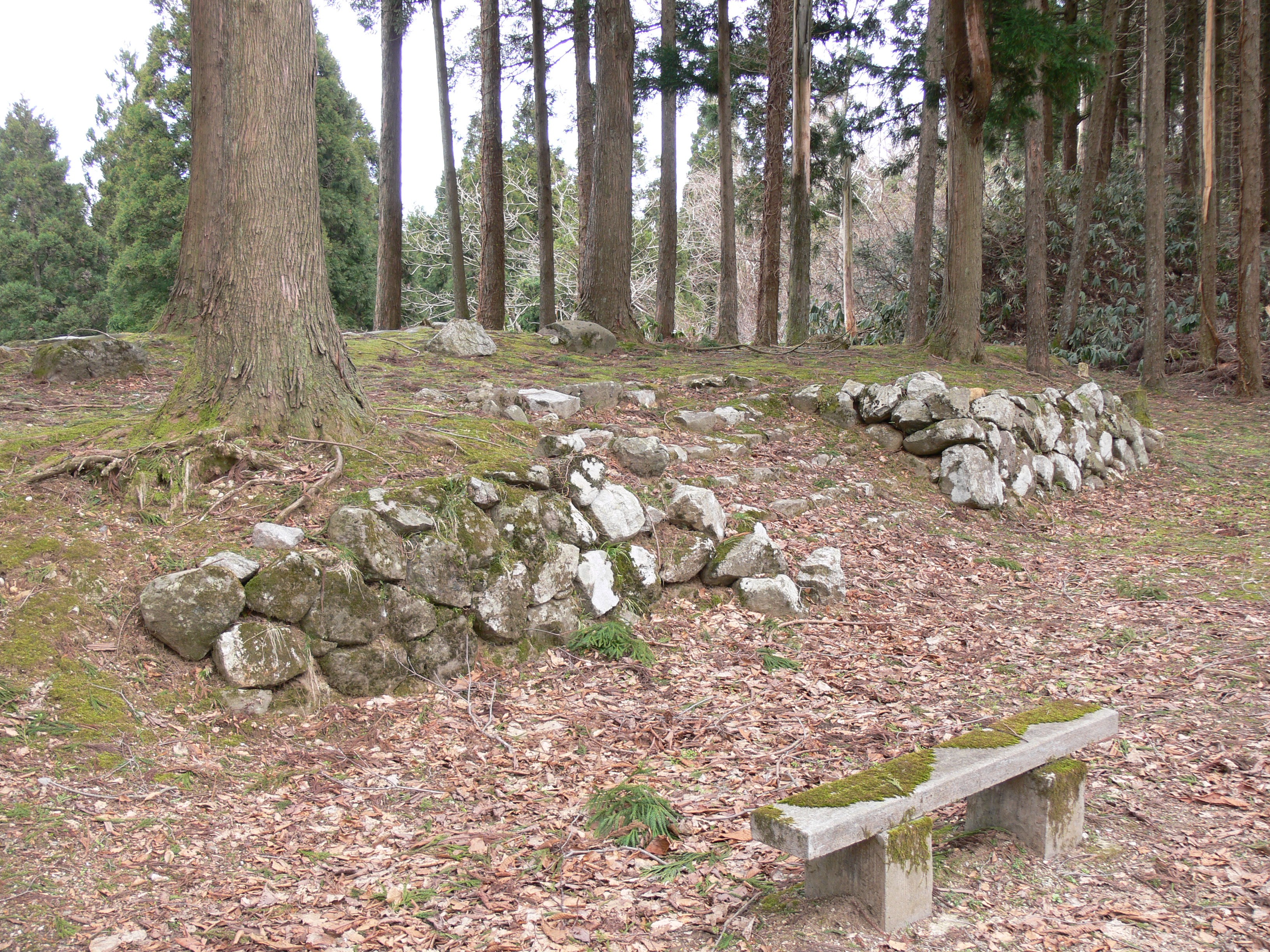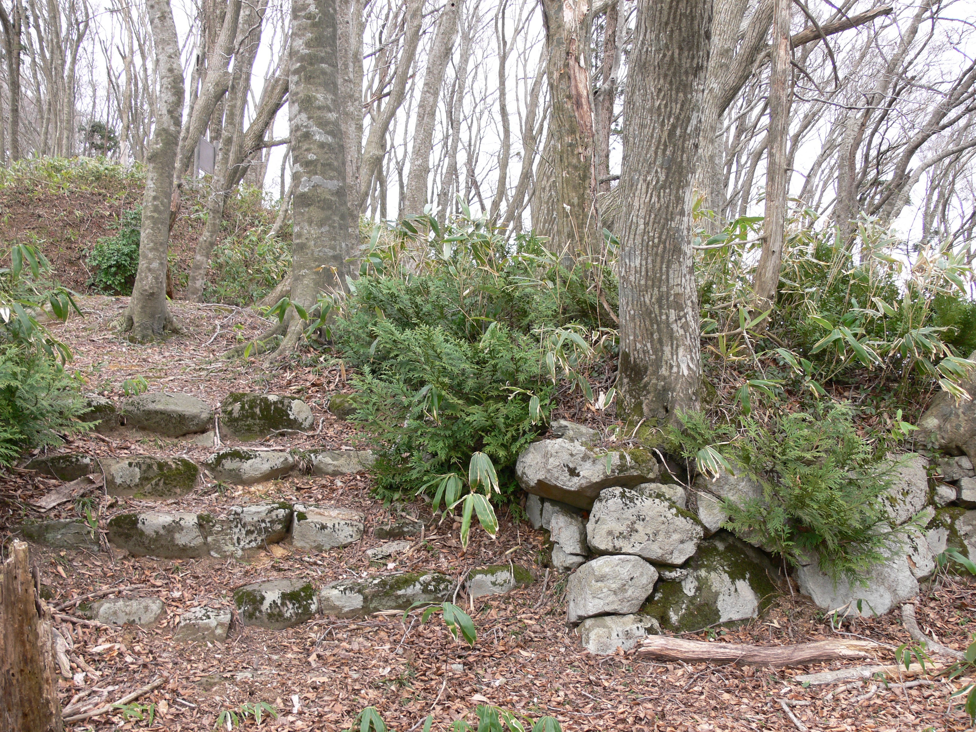 さて大宮坊裏手にある石動山城ですが、主郭はさほど広くはないのですが、その外周には空堀が巡らされているのが確認できました。さらに主郭の周囲にはいくつもの腰曲輪があります。
