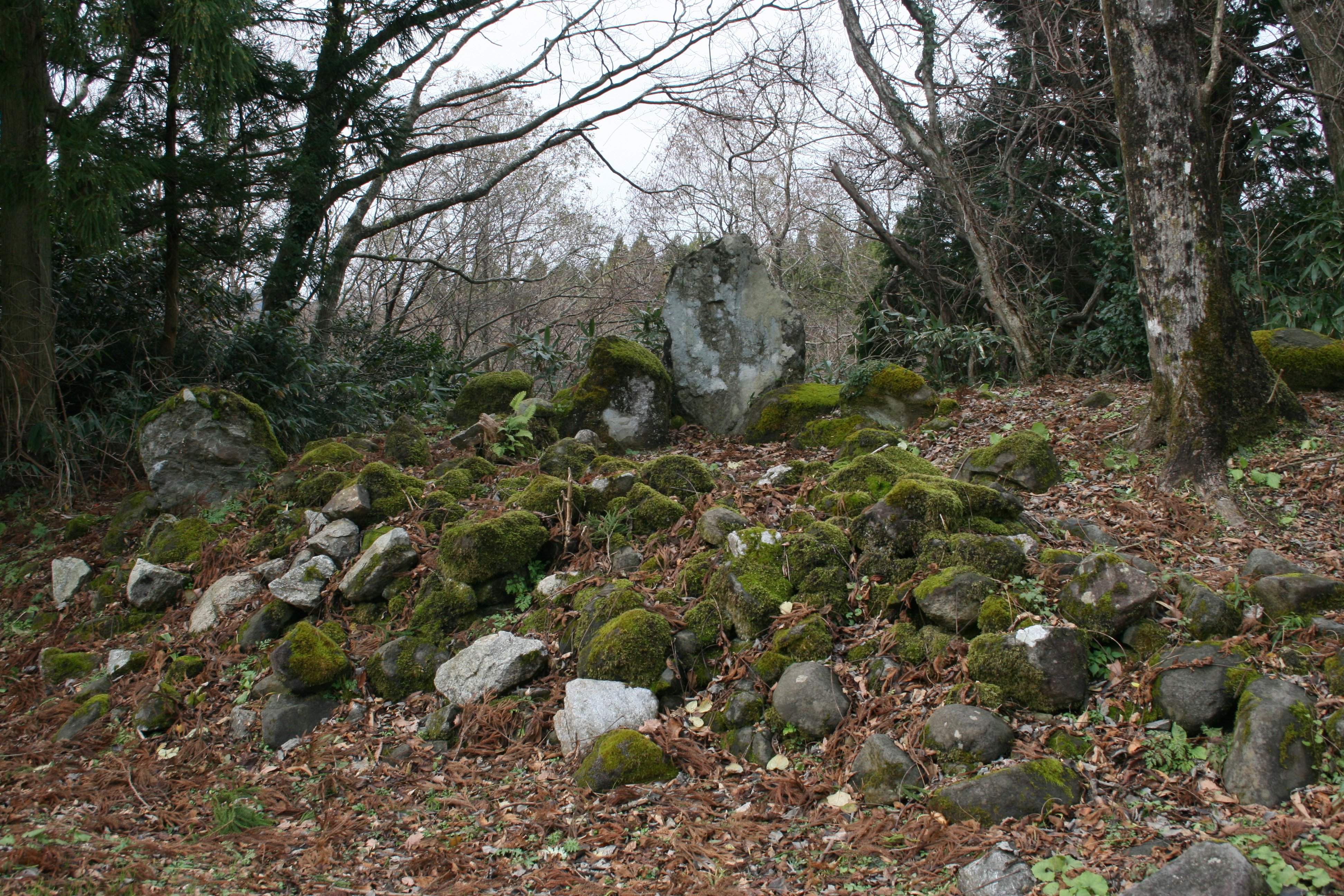 さて、史跡としての石動山ですが、これは極めて広大な領域に坊跡が点在し、遺構として石垣跡が多数残っています。これだけの範囲に遺構が現存している上に山側にも多数の遺構があるので、これをすべて攻略するのは体力的にも時間的にもかなりの困難さが予想されます。と言うわけで、極めて見所が多い史跡ですが、ここを訪れる際には充分体力を残した状態で時間的にも余裕を持ってこないと、とても全部は回りきれないと思います。筆者は、ここを訪れる前に手前にある荒山砦を攻略していたために、時間的にも体力的にも余裕がなかったので、すべてを回りきれませんでした。ただし、山側の遺構はほぼ回れたのですが、山麓側の広い範囲に残る坊跡まではすべては回りきれなかったのが実際です。ここを訪れる際には少なくとも半日は必要と考えてください。