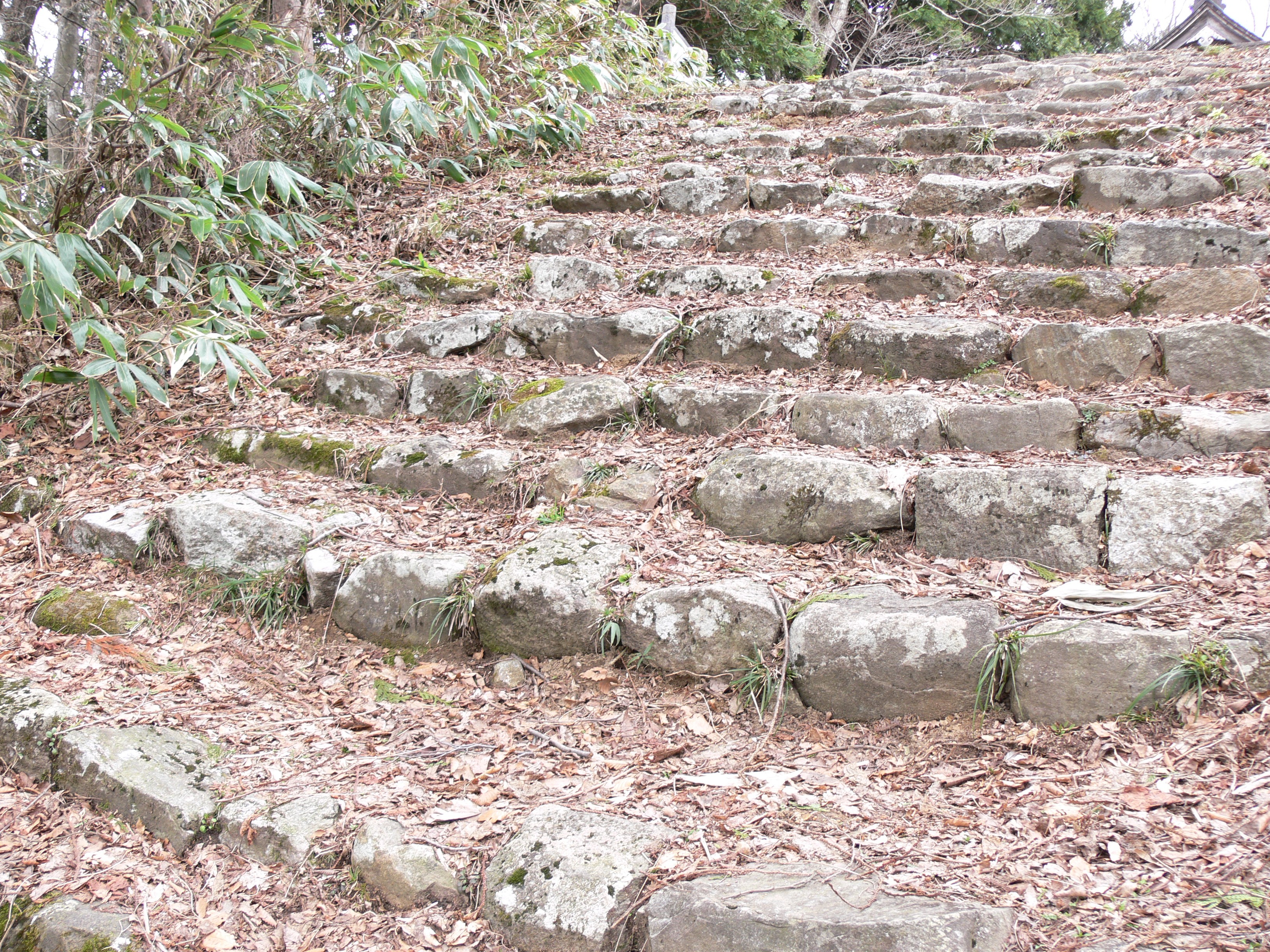 南北朝の時代にも越中国司・中院定清がここに立て籠もったというのも、ここが既に城郭としての機能を持っていたからと考えられます。現在跡を辿っても、七口といわれる、尾根筋を辿る各登拝口の要所要所には、空堀や土塁などの防御施設が築かれているのがわかります。また参拝道も曲がりくねり、敵の侵入を防ぐ造りになっています。