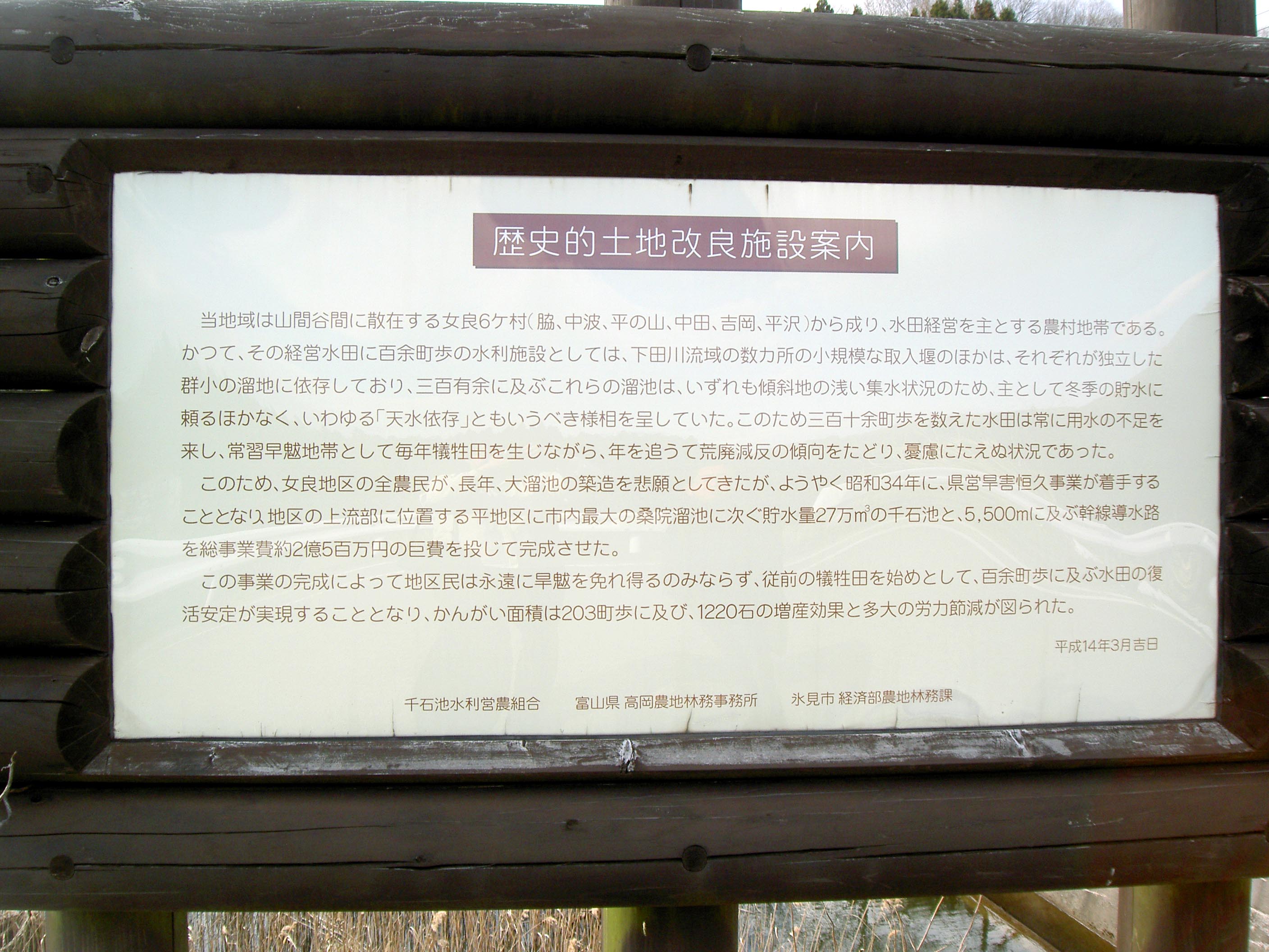 氷見市内では桑ノ院ため池に次ぐ規模のものです。
