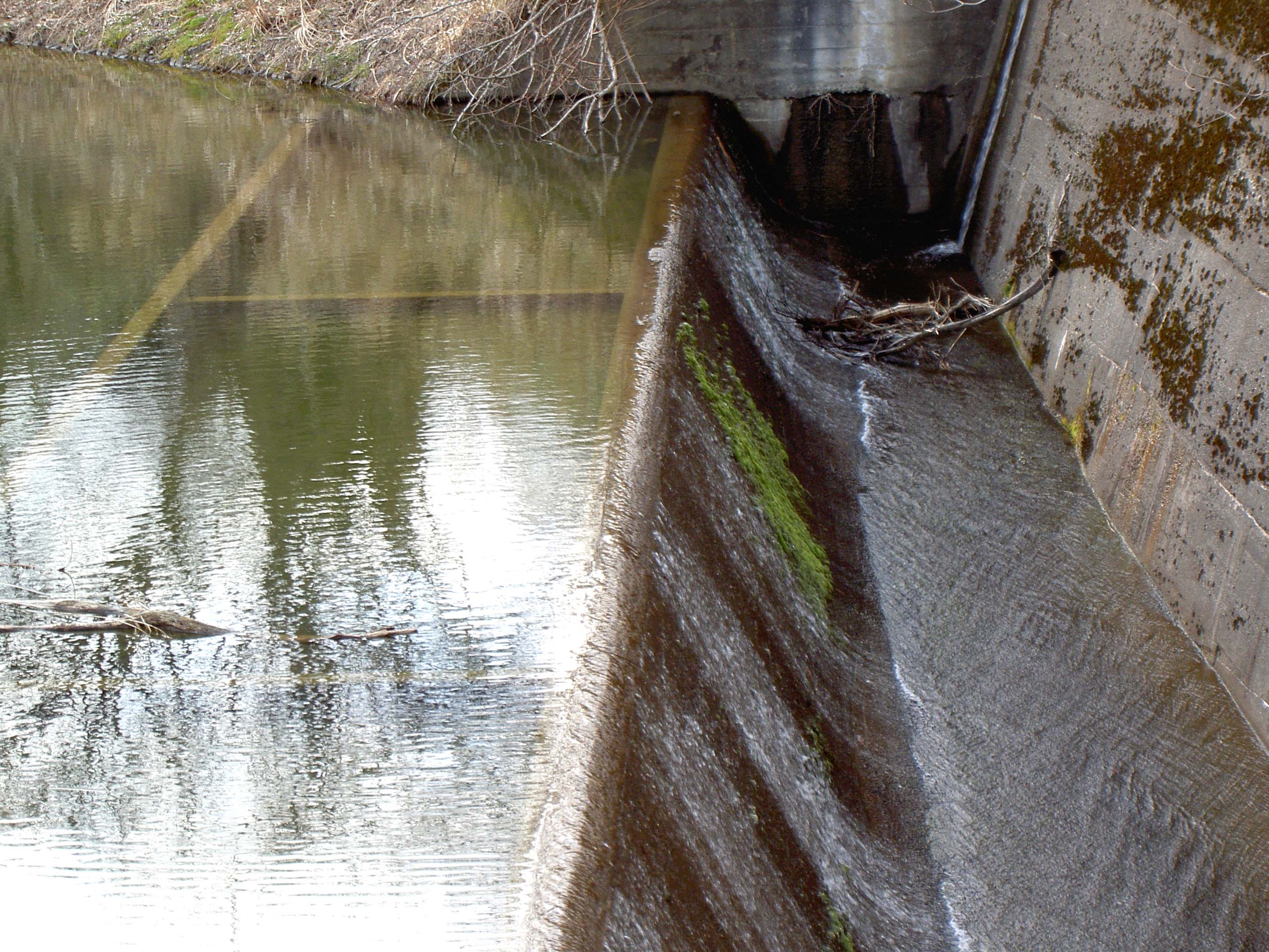 ここを訪れたときは、貯水池の水が満水で洪水吐より水があふれ出ている状態でした。