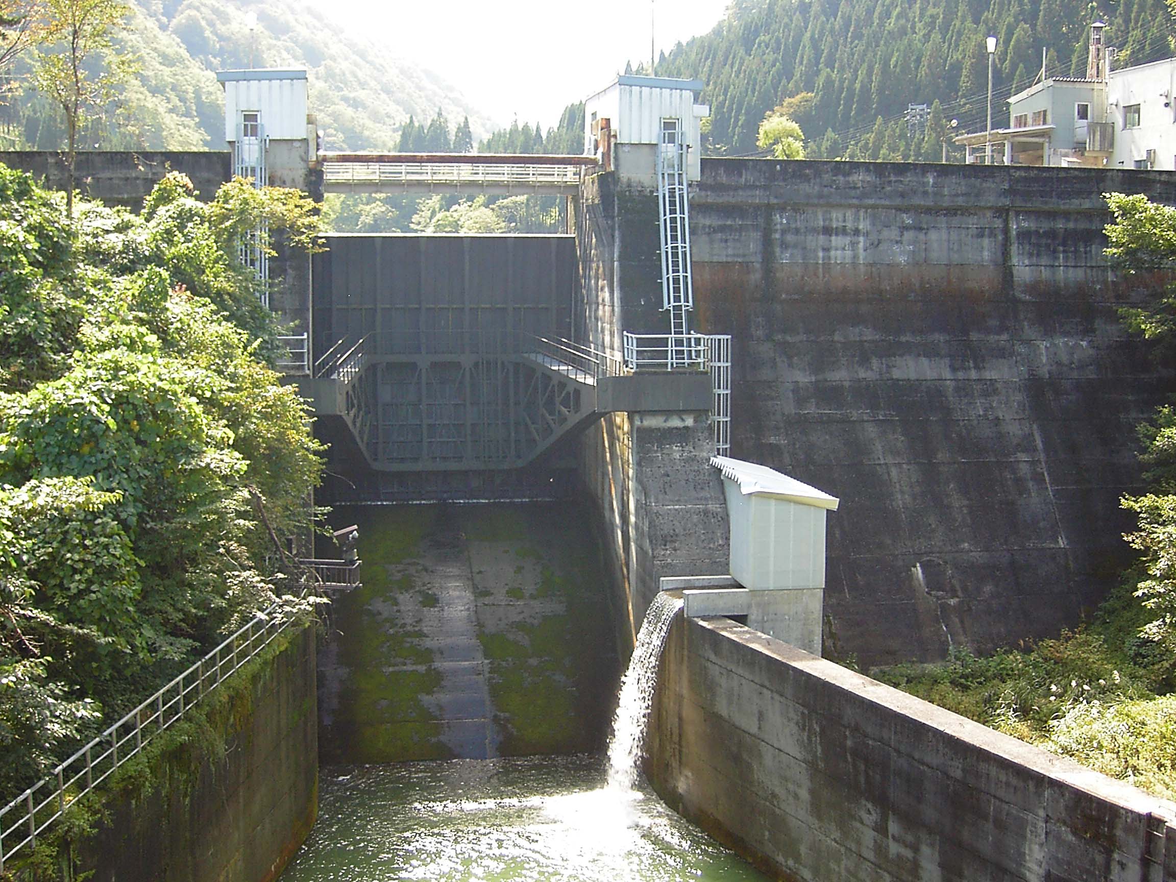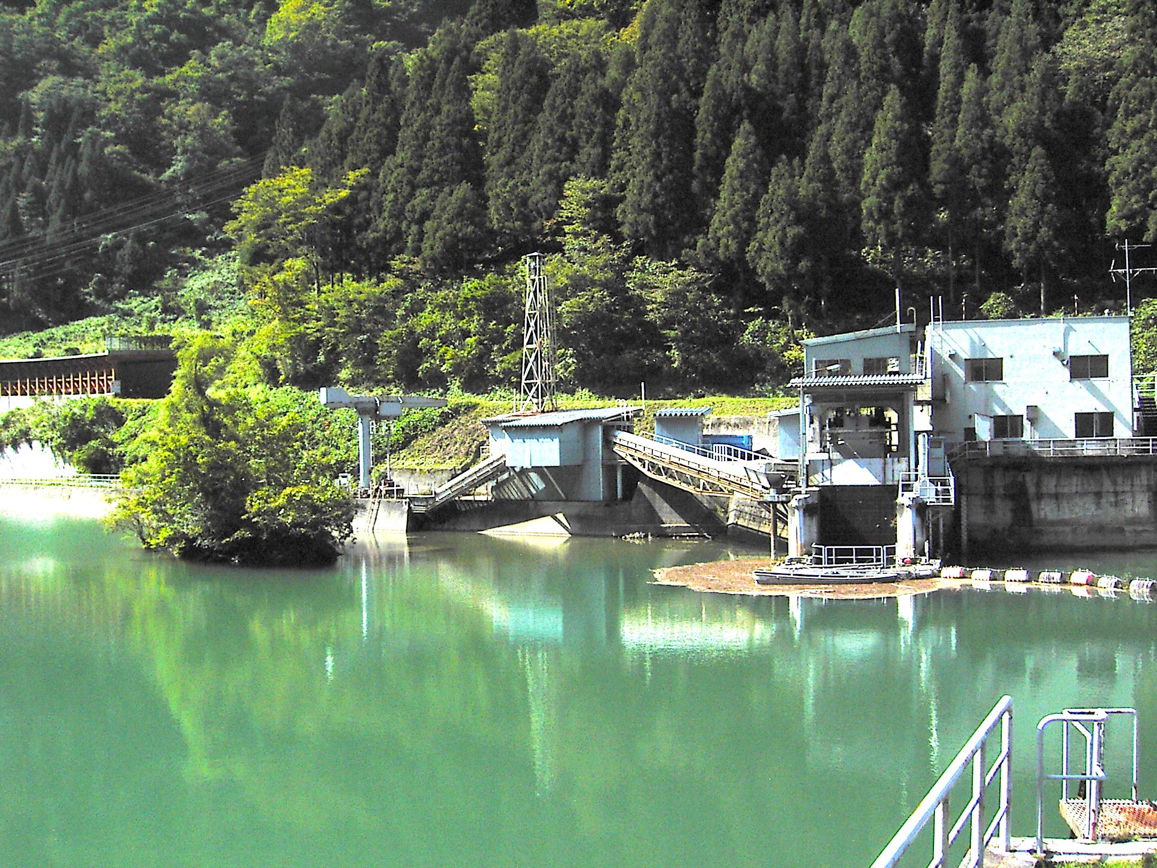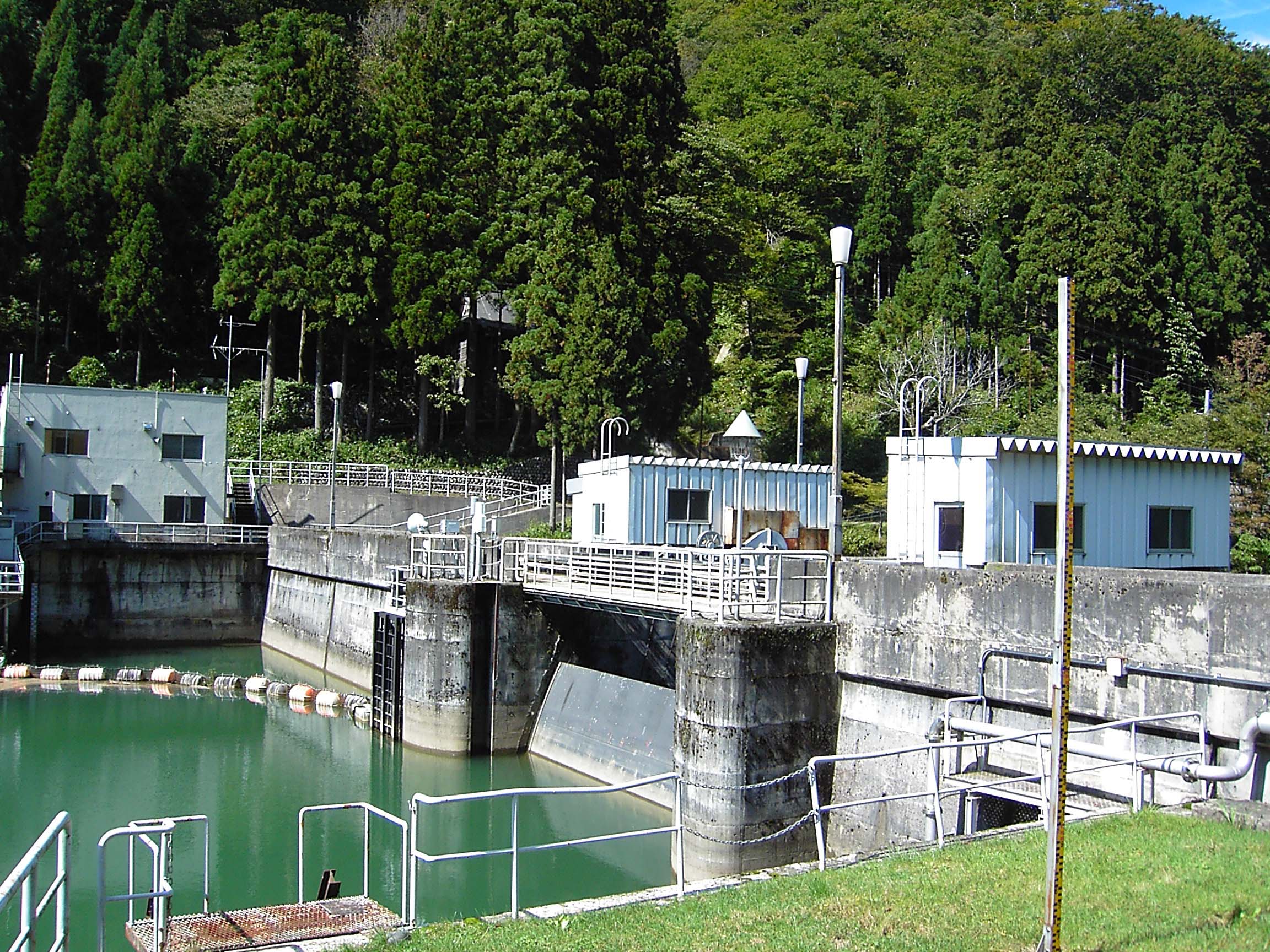 千束ダムは、利賀川上流にある小規模な発電専用ダムです。ここから利賀川第二発電所に送水しています。