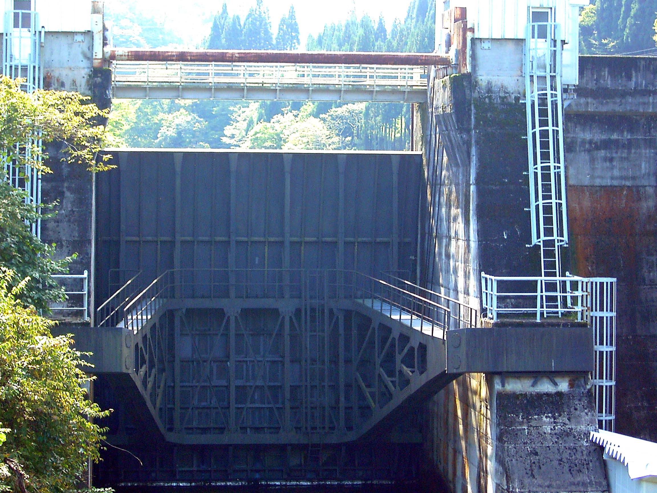 ゲートは、ラジアルゲート1門という極めて控えめな陣容ですが、ゲート自体はダムに比して大きいものです。