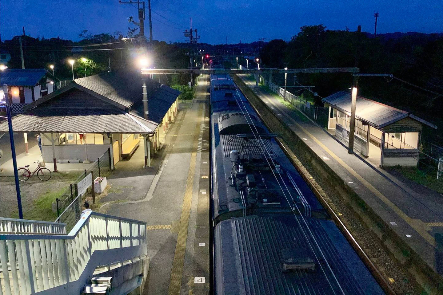 互いのホームは跨線橋で連絡している。木造駅舎を有する。