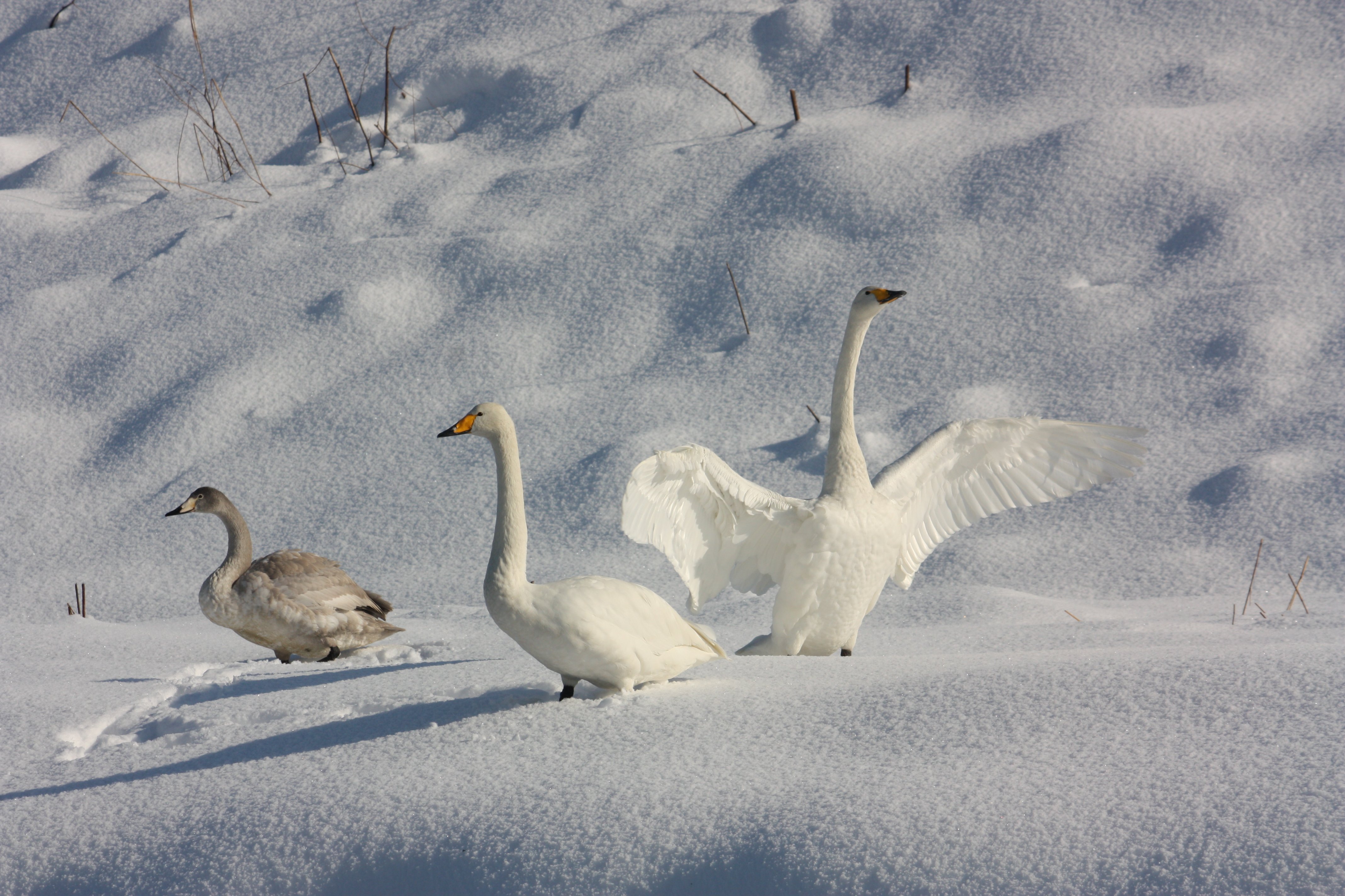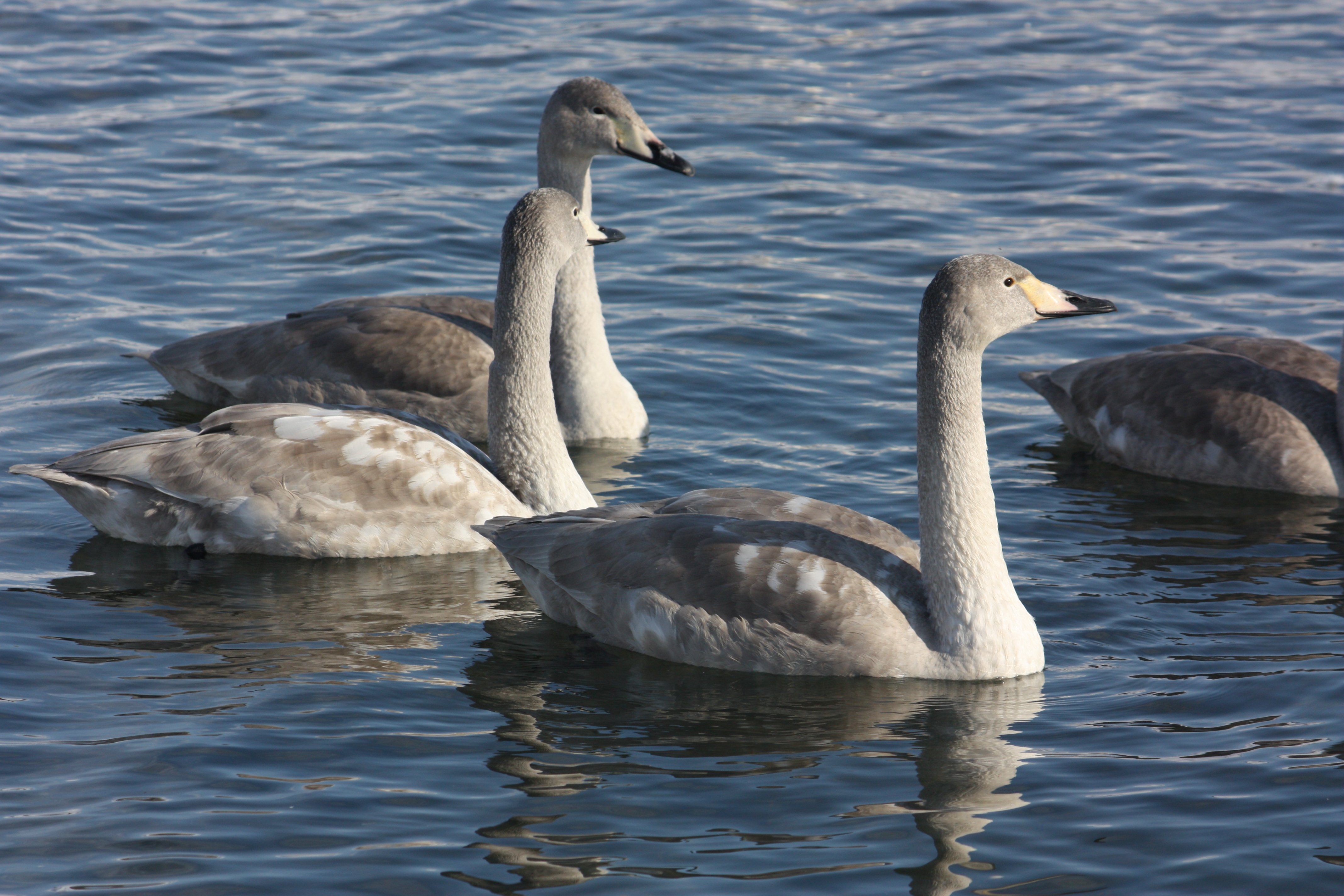 飛来しているのはオオハクチョウのようですが、コハクチョウやコブハクチョウが混じっているのかどうかは、未確認です。