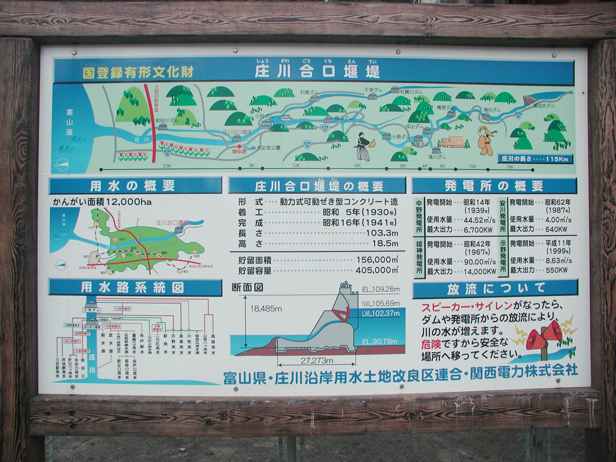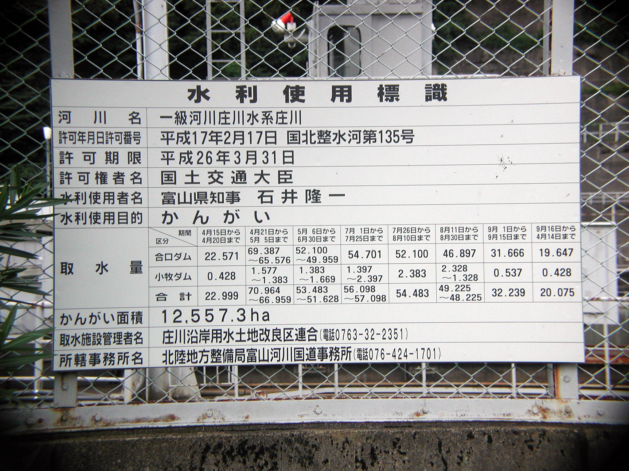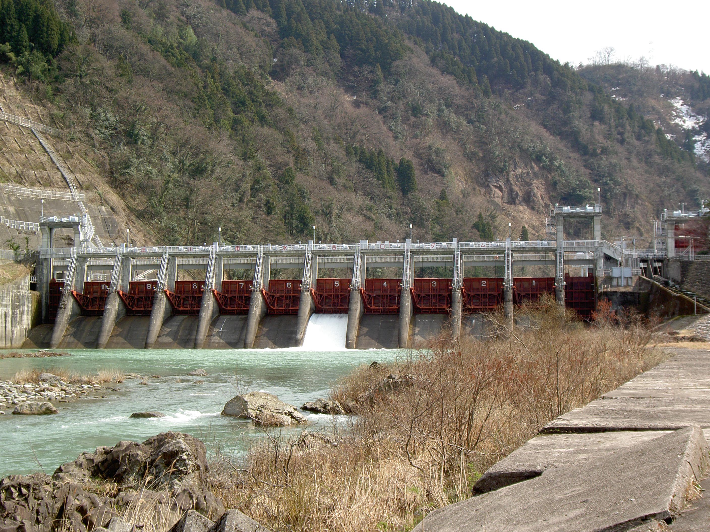 庄川合口ダムは庄川流域の発電ダム群では最も下流に位置しています。