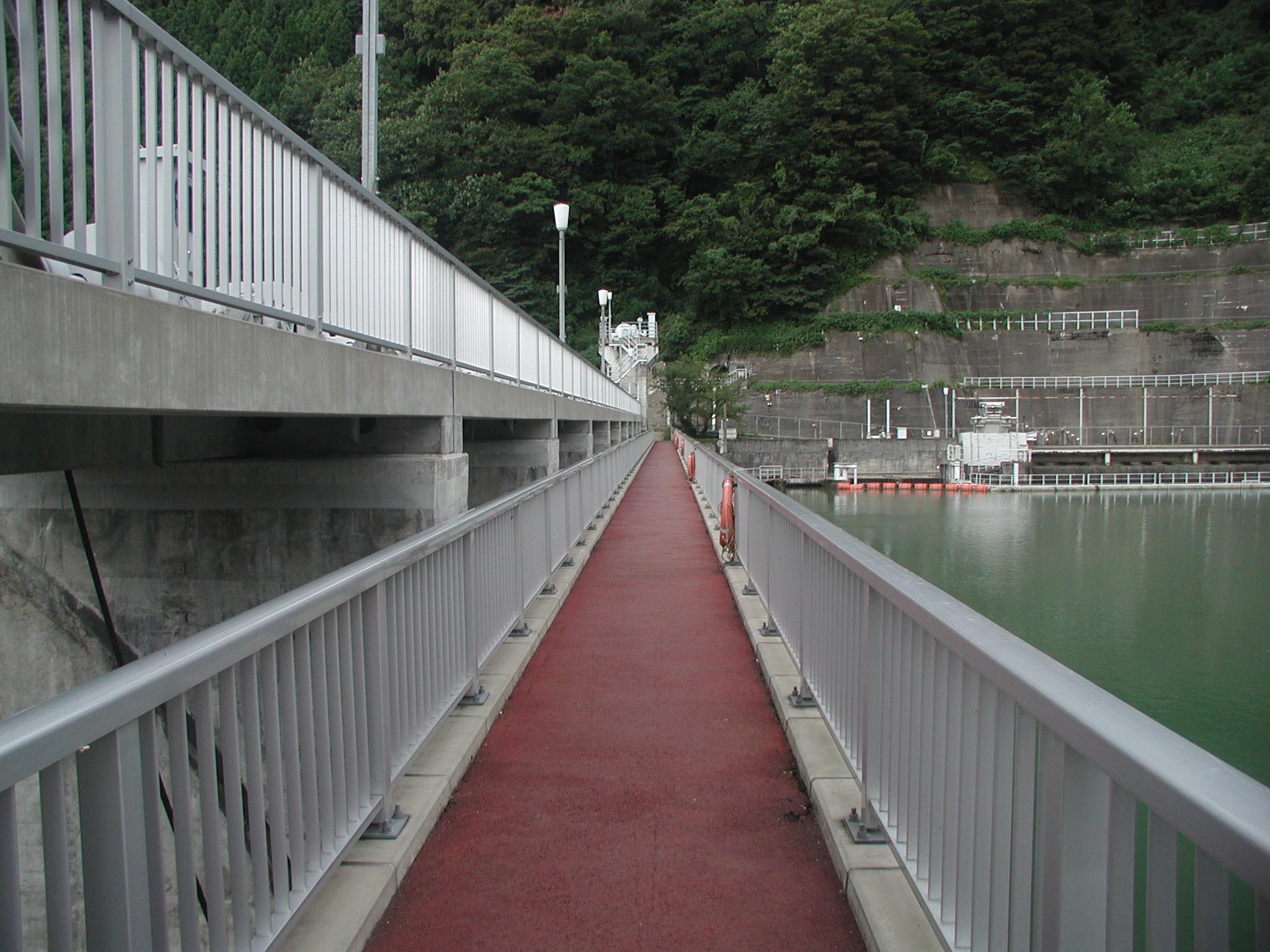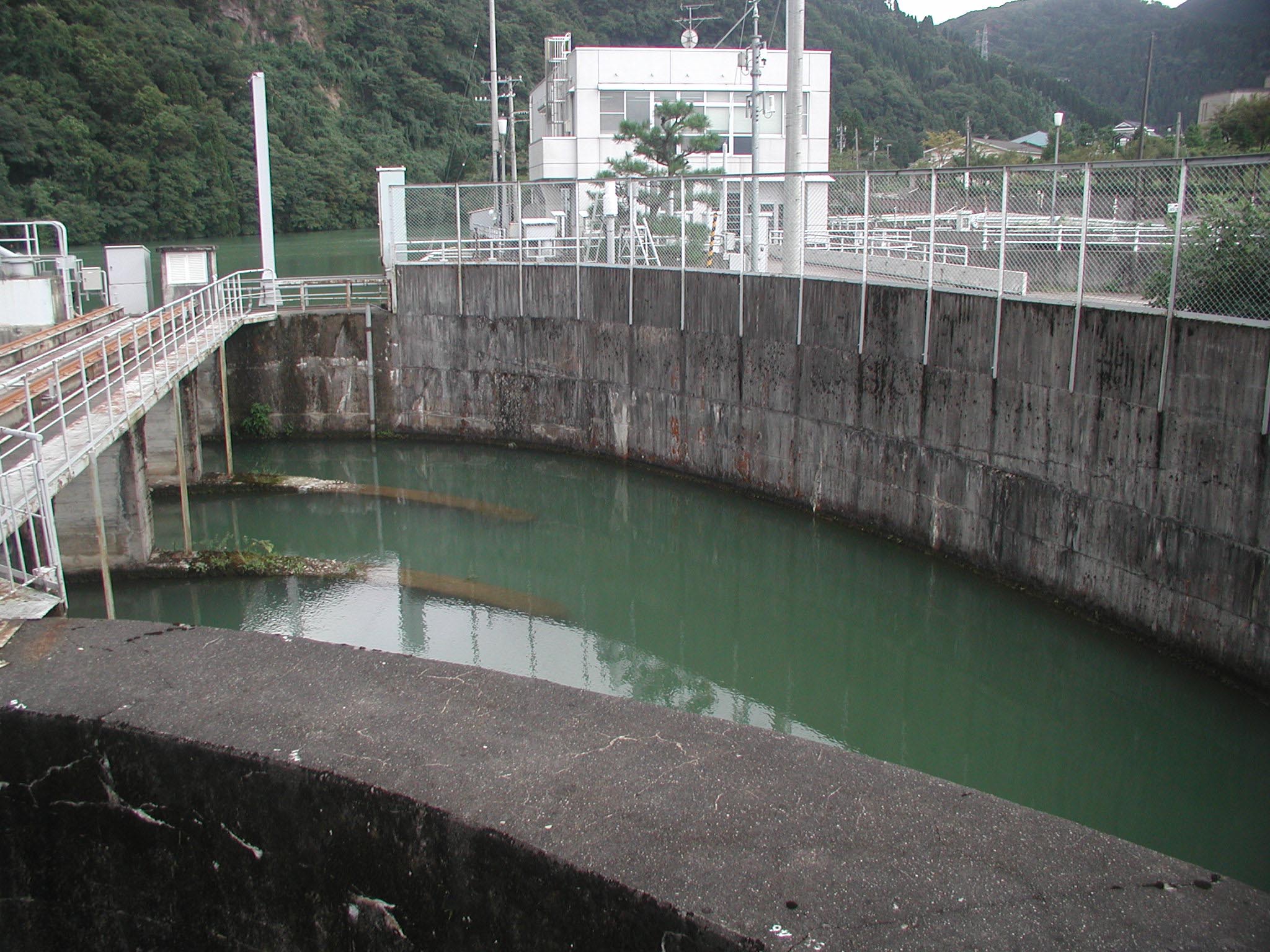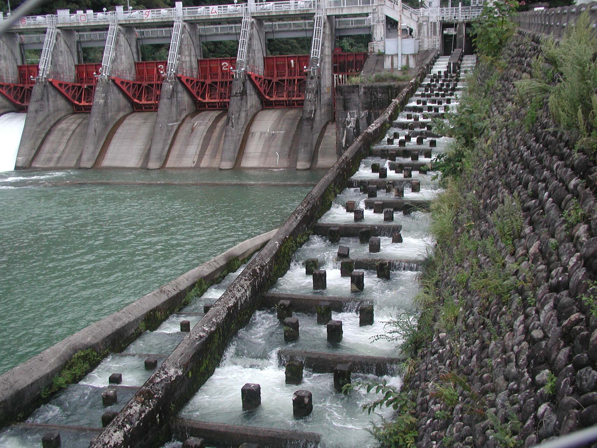 このダムの特徴は、減勢工がないことです。だからダムみたいに見えないのですね。 |