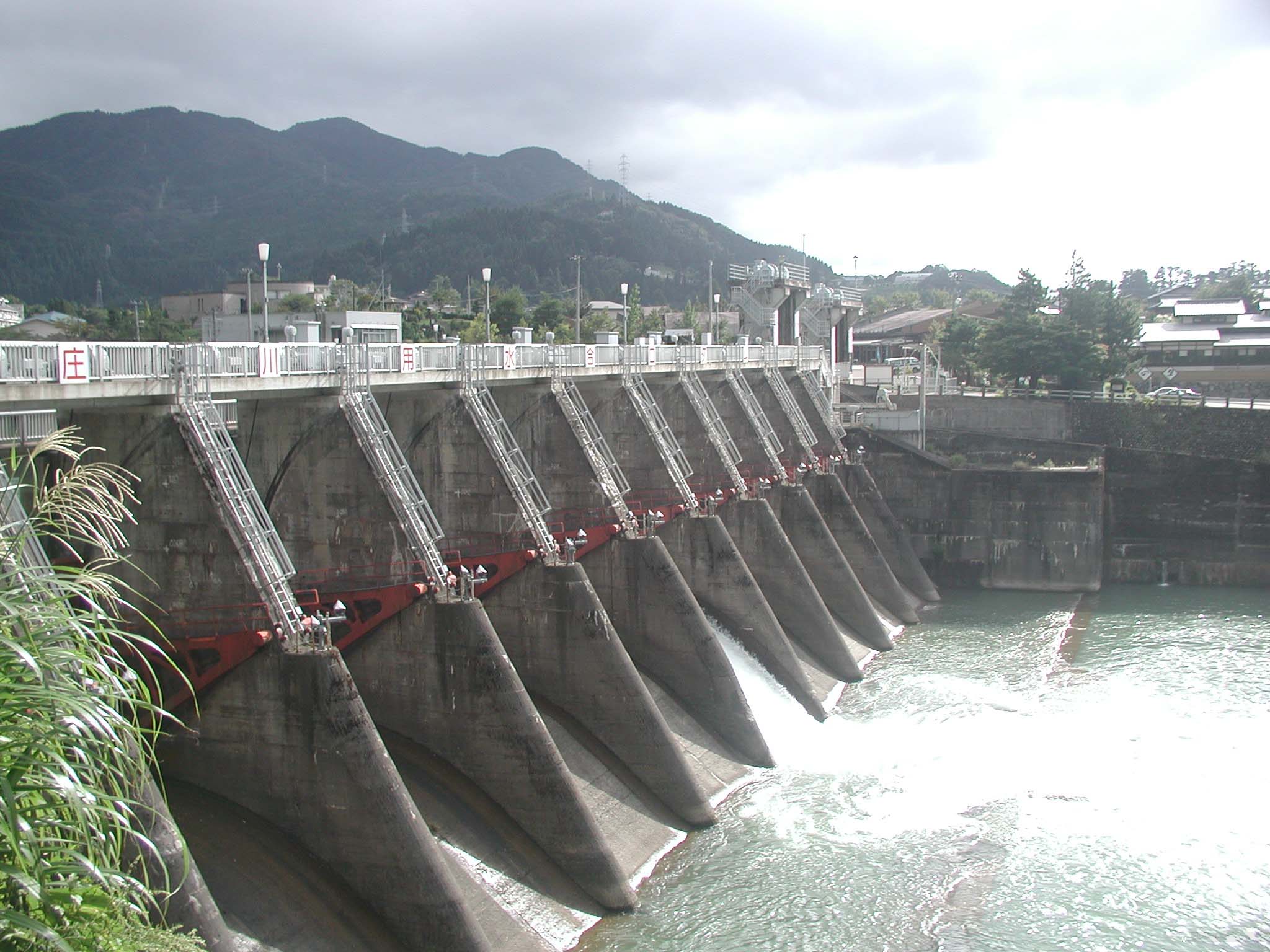 ダムとしては小規模なものですが、その10門のラジアルゲートは巨大なもので小さな堤体にはそぐわないほどです。