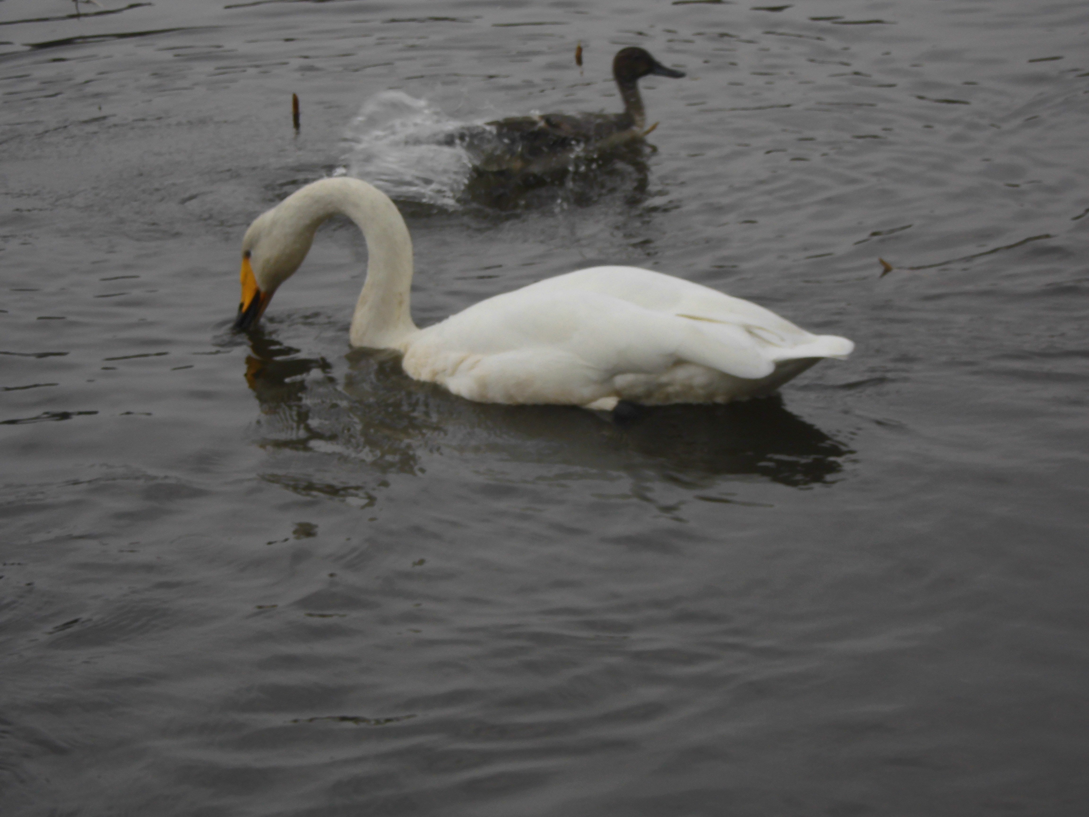平成25年11月3日の朝にこの秋初めてハクチョウが飛来しています。写真は飛来した直後のものです。