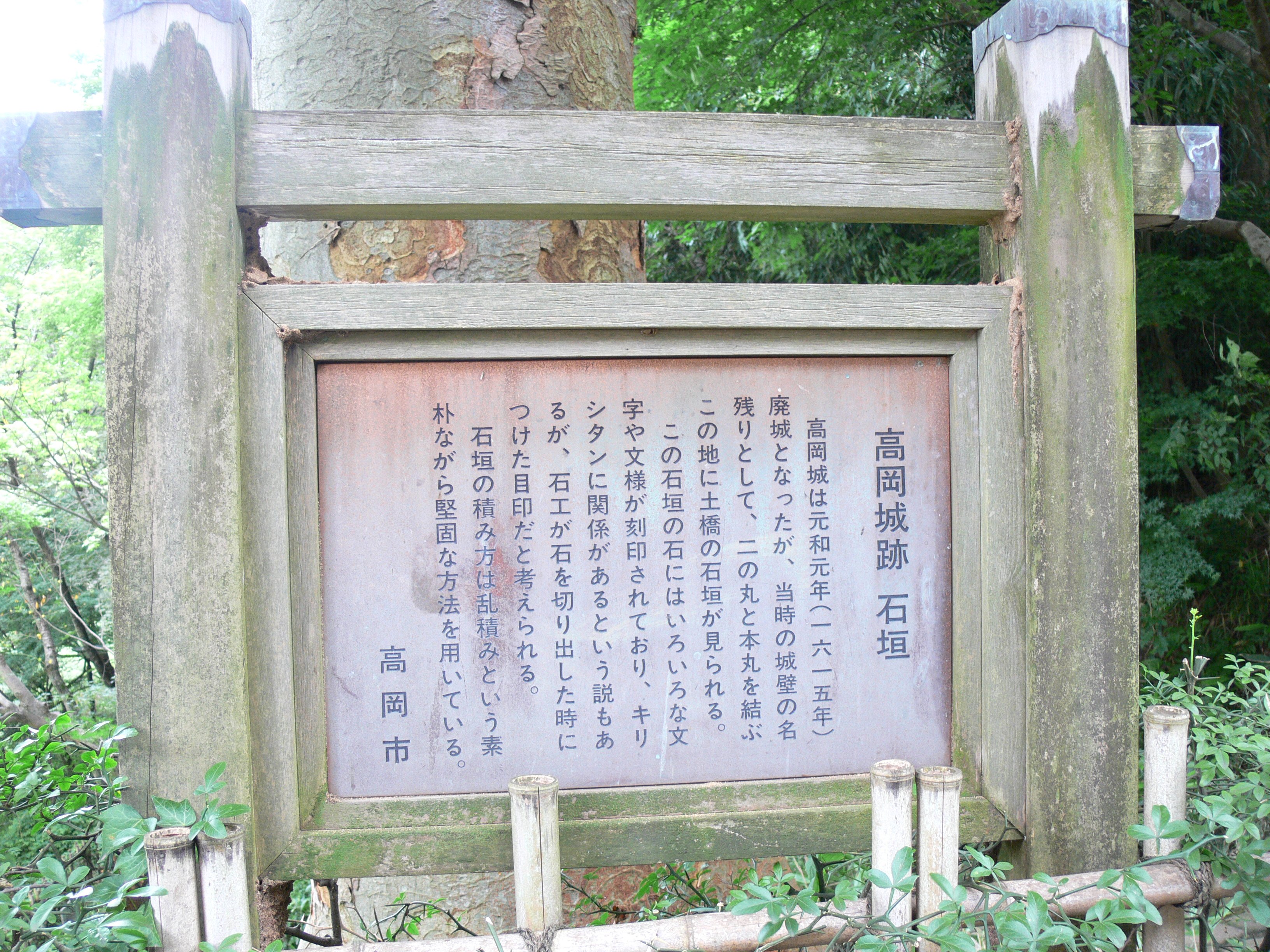 高岡城跡石垣説明板 |