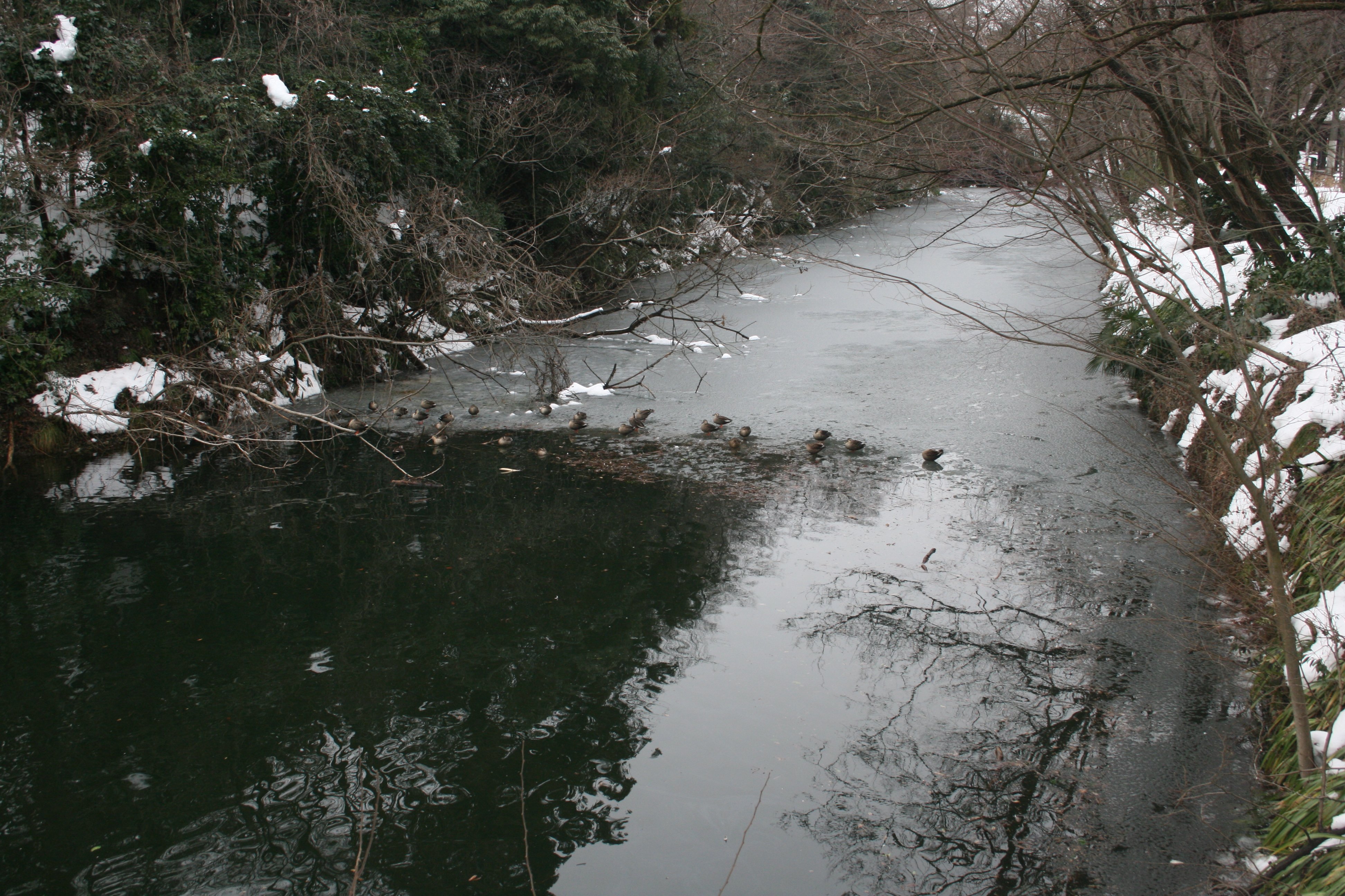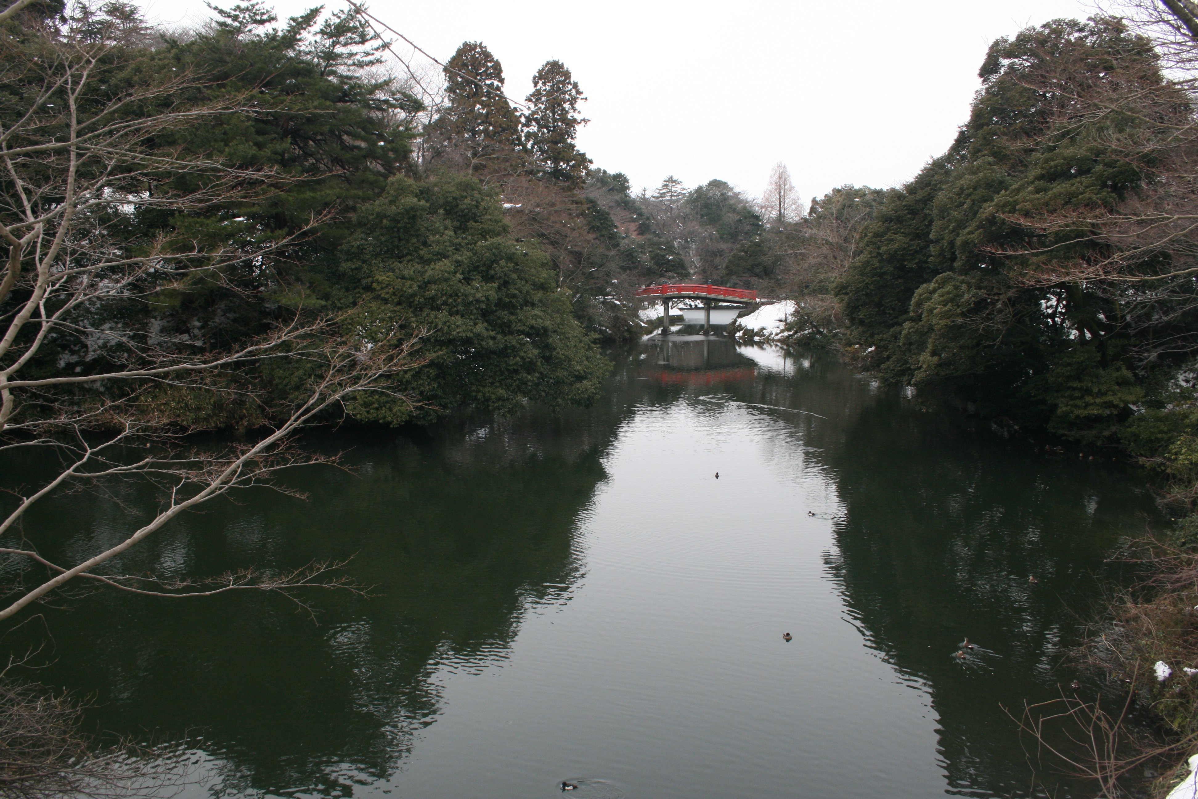 桝形濠にカモが泳いでいます |