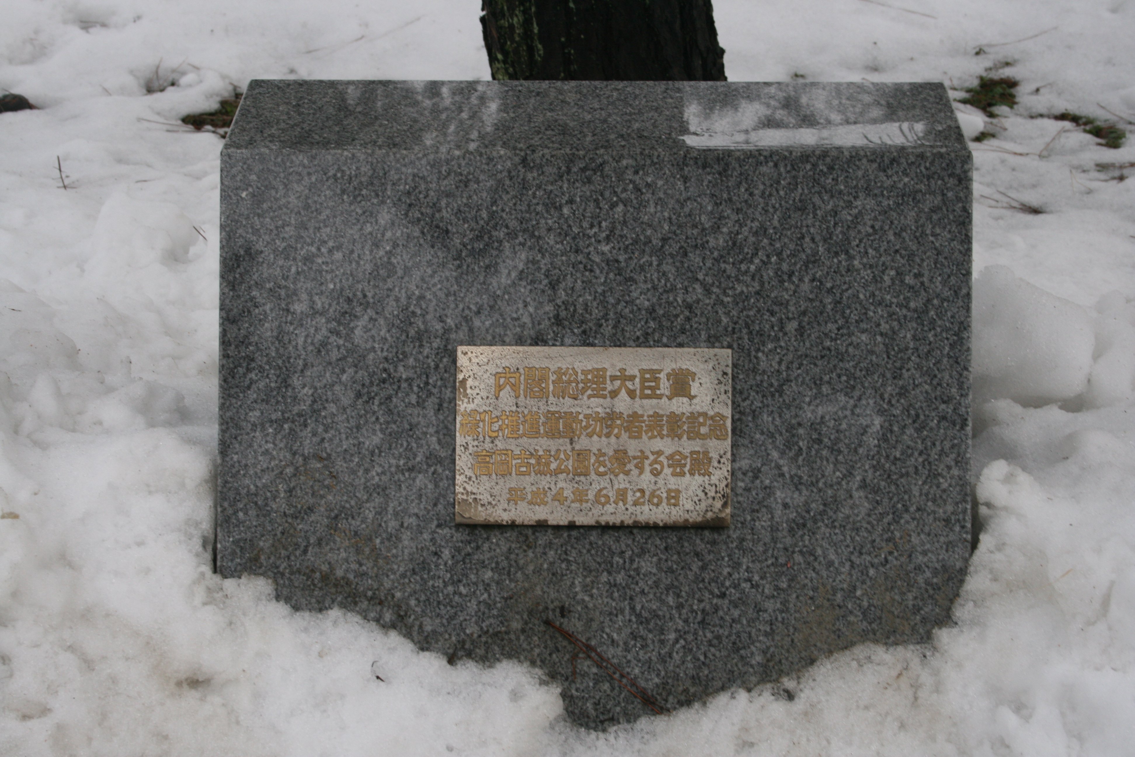 内閣総理大臣賞受賞を示す石碑 |