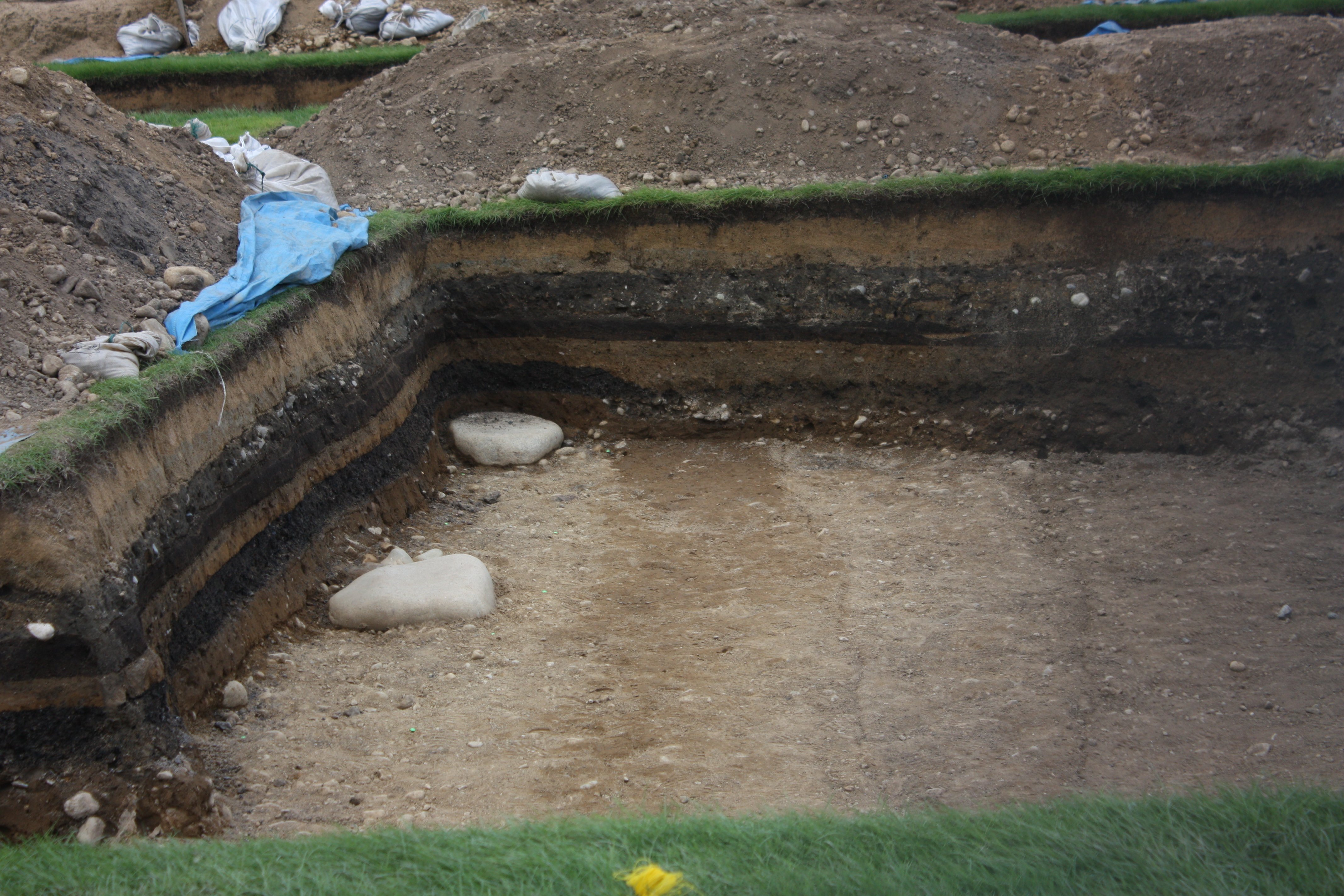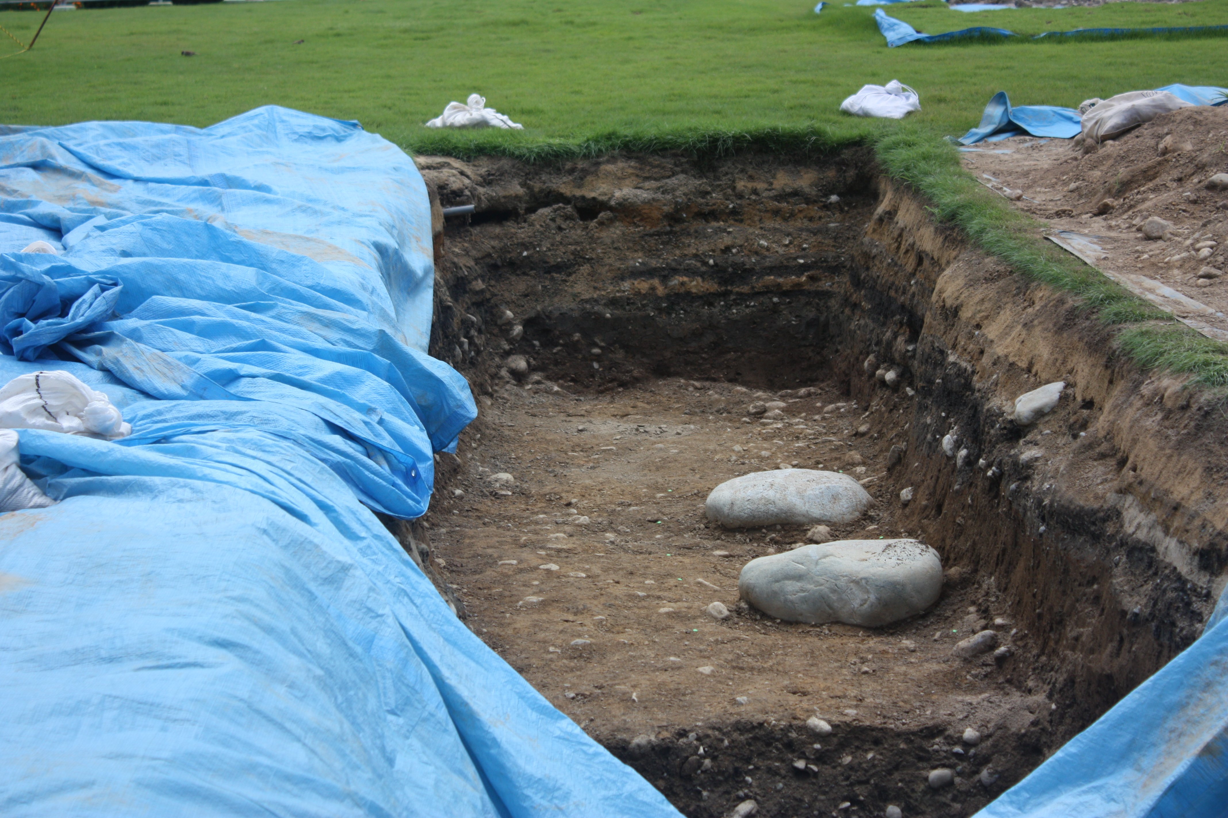 本丸広場では、既に本丸御殿の遺構とみられる敷石が発掘されています。本丸御殿の存在は、これまで発見されている資料からも推定されてはいたのですが、実際にその遺構が発見されたのはこれが初めてでその規模が明らかにされることが期待できます。