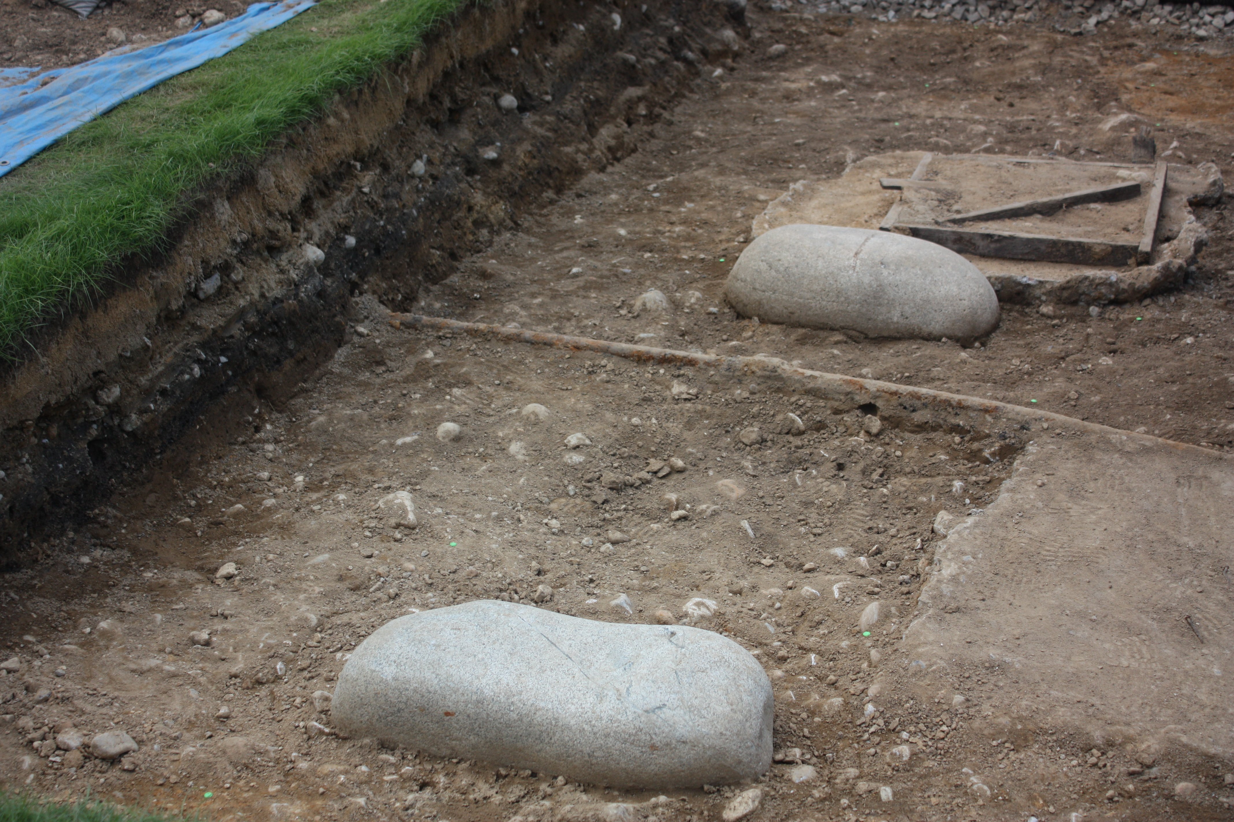 | 本丸広場で発掘された礎石 |