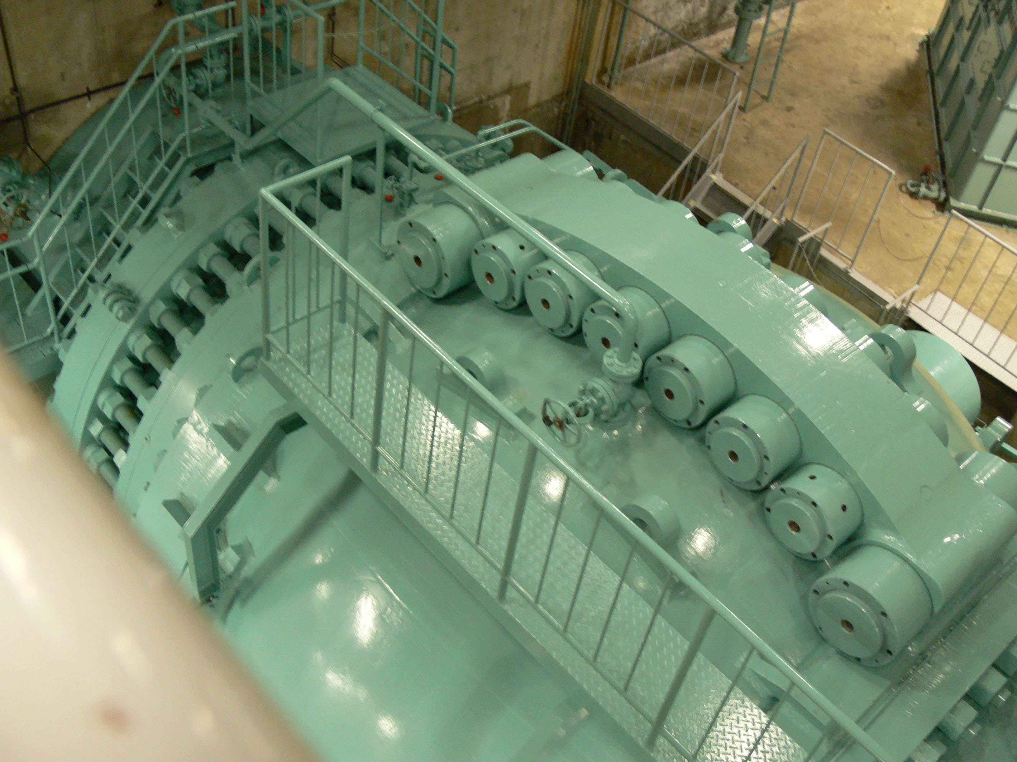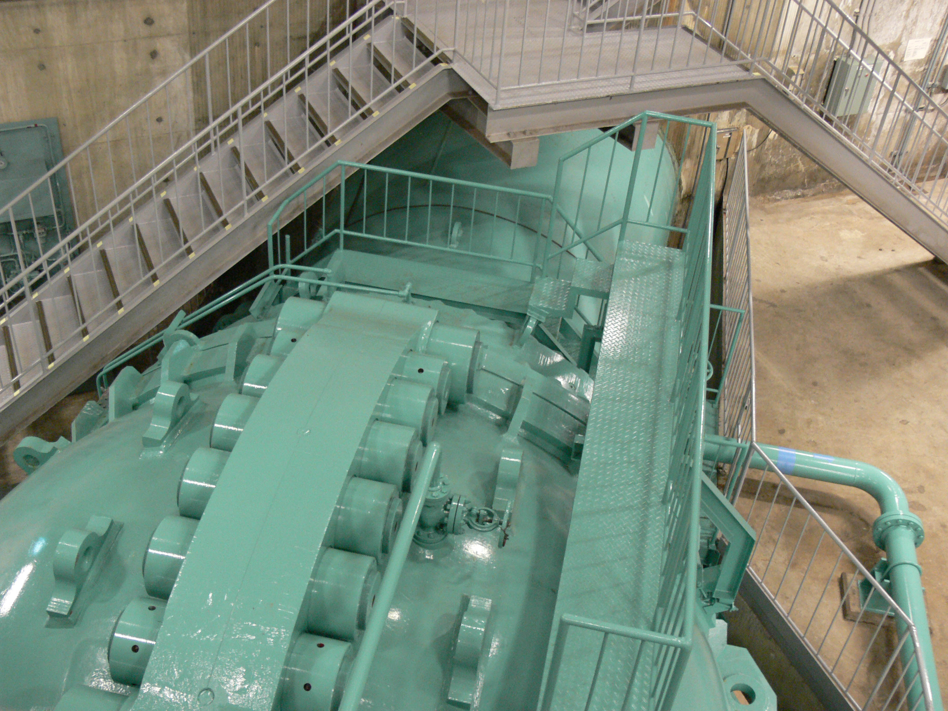 新高瀬川発電所は、立軸単輪単流渦巻フランシスポンプ水車を4基装備して、最大出力は、1,280,000Kwとかなりのものです。