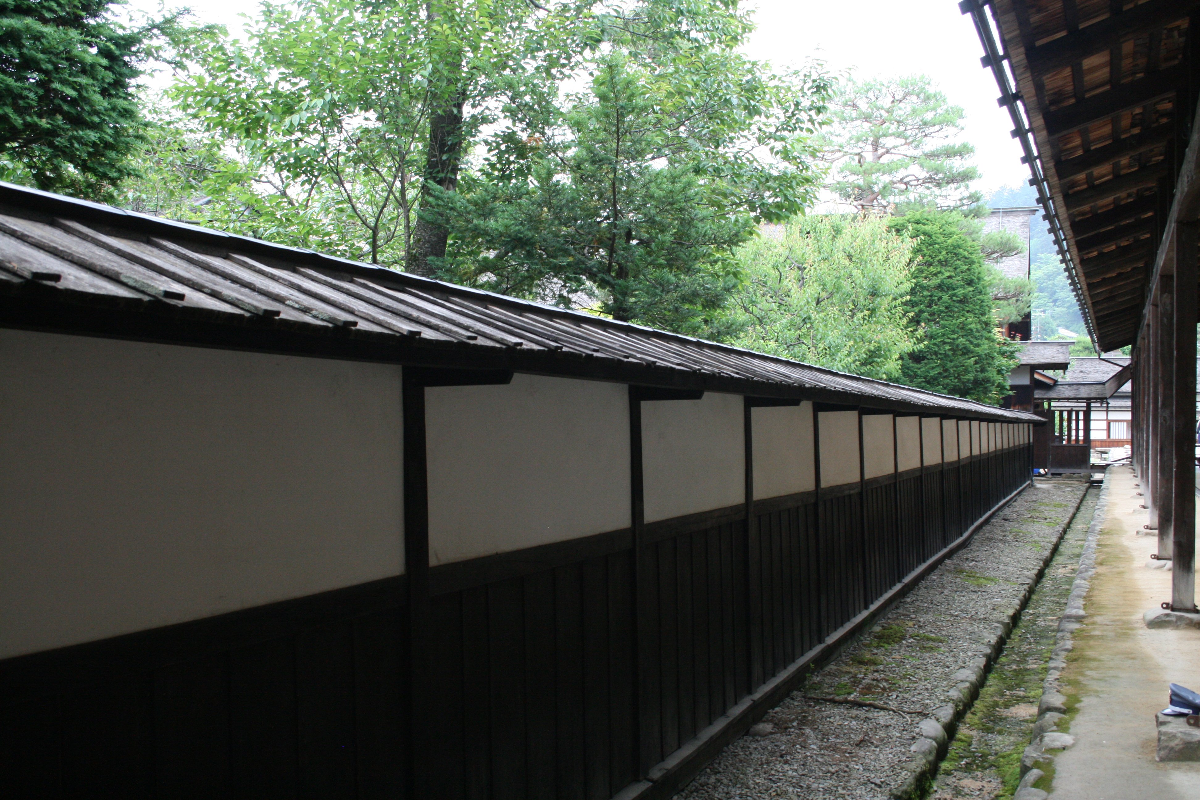 建物の屋根は熨斗葺(のしぶき)、柿葺(こけらぶき)、石置長榑葺(いしおきながくれぶき)など、いずれも板で葺かれています。これは飛騨が雪国であるため、当時の瓦では雪ですぐに損耗してしまうのことと、この地が木材の生産地であり、木材であれば入手が容易であったためとされています。