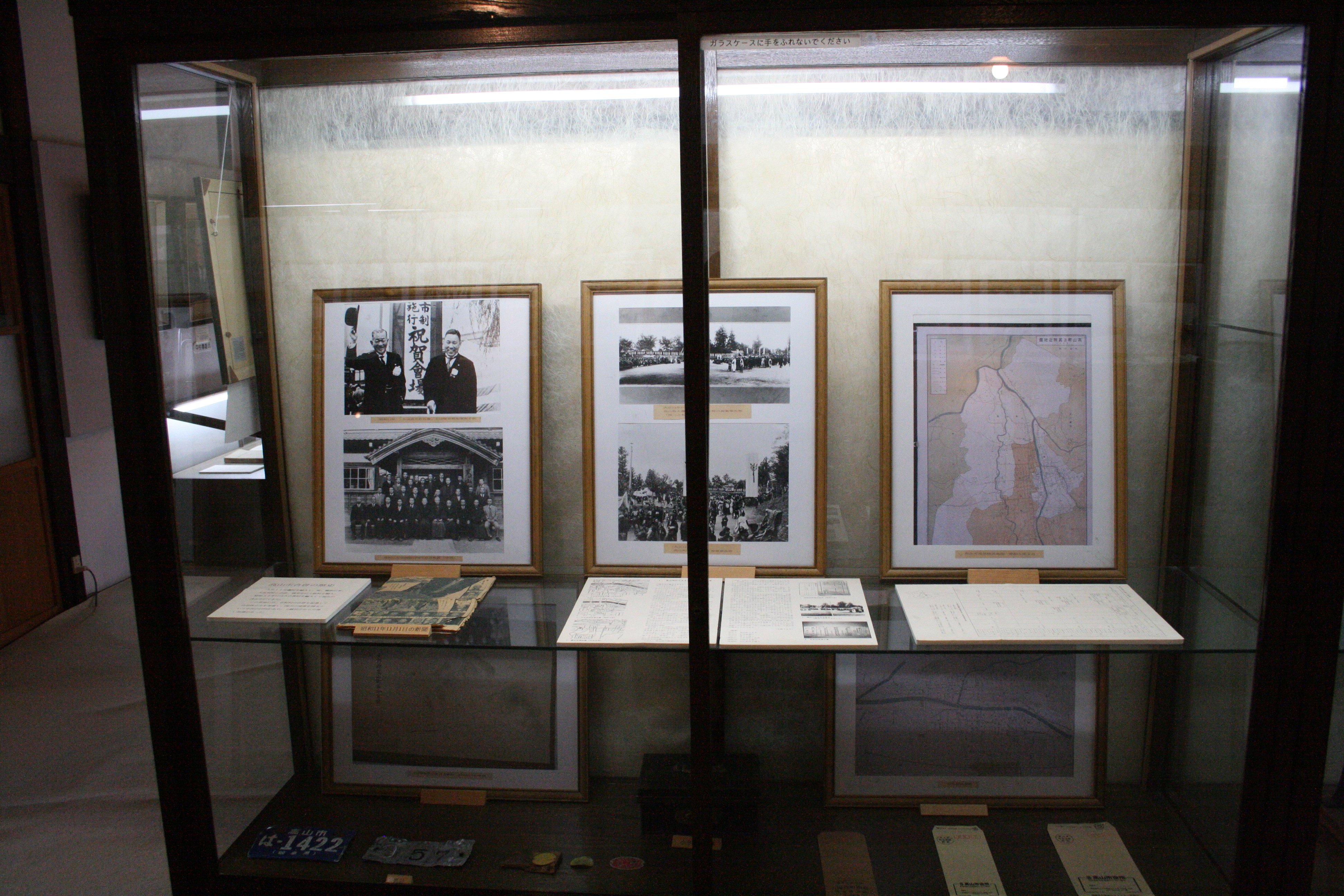 市政記念館では、高山市の前身である高山町、旧高山市を含む現在の高山市までの行政資料を所蔵し、市政の移り変わりをパネルや写真などにより紹介しています。