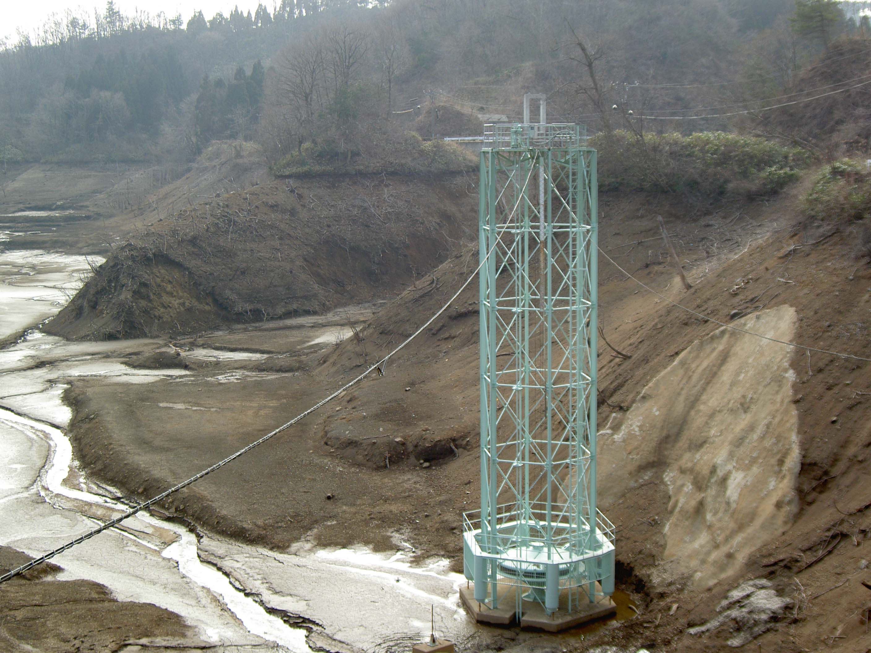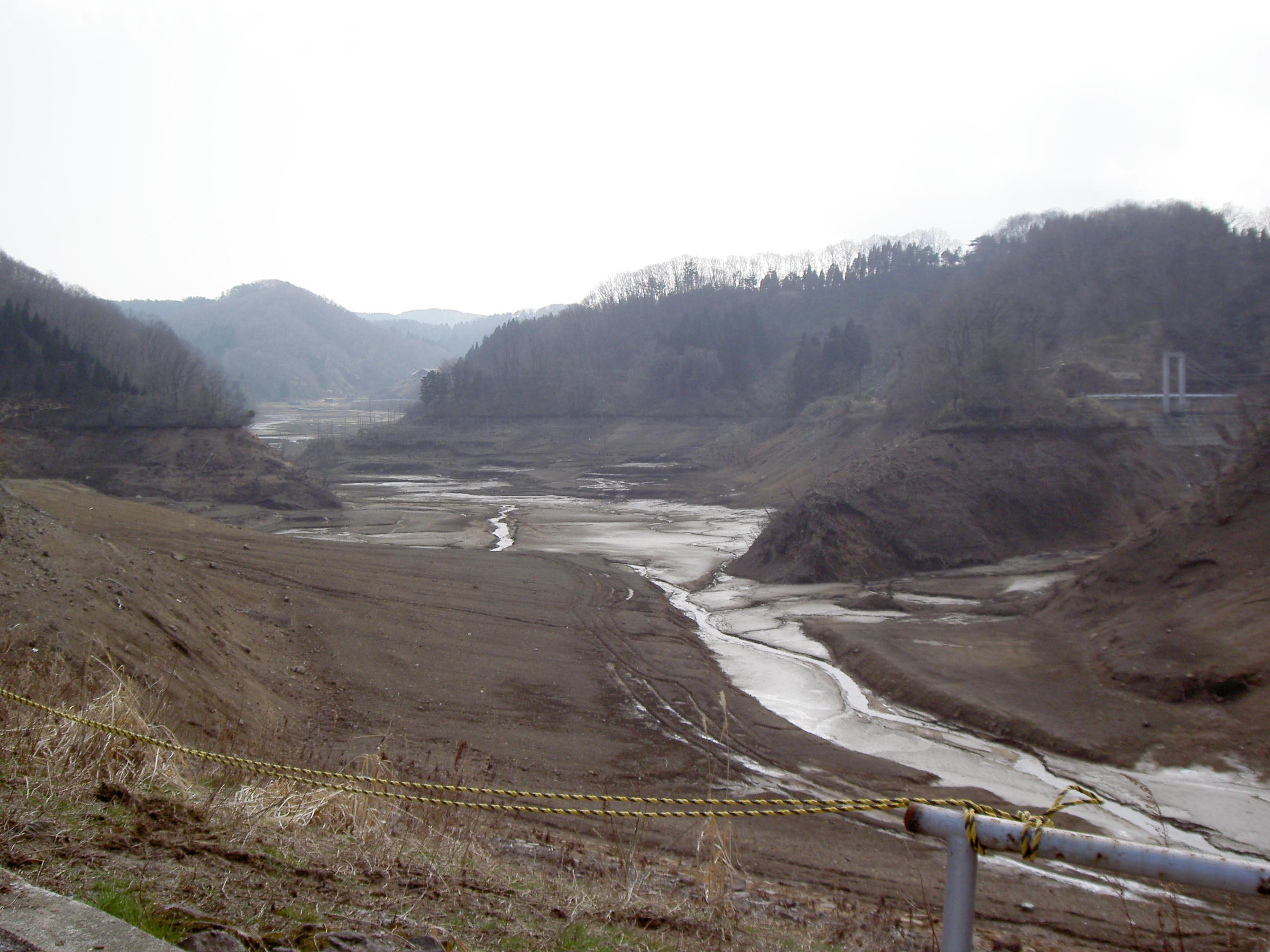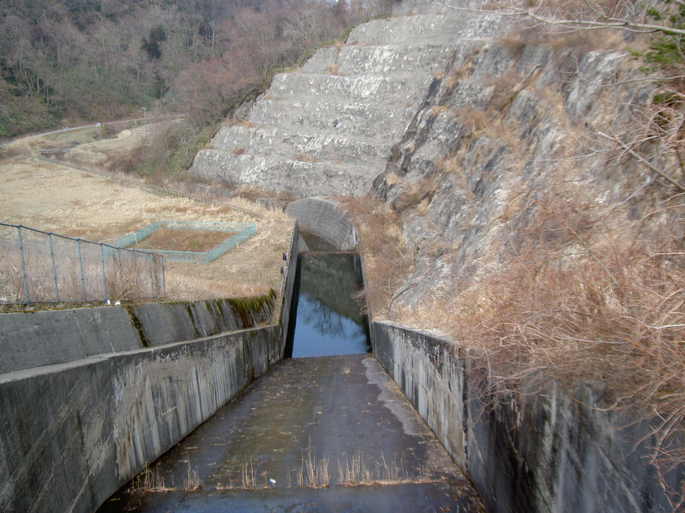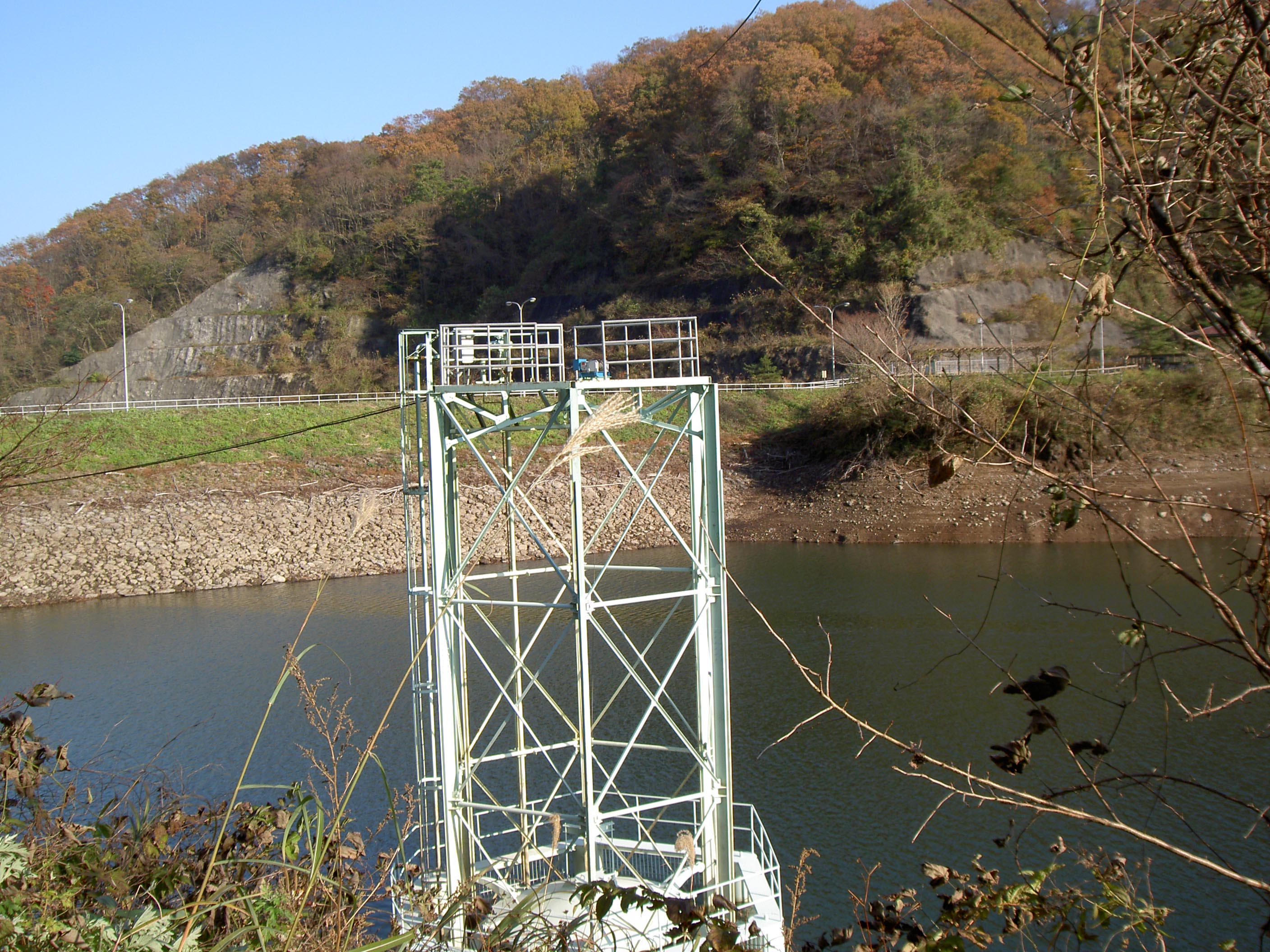 しかしここを訪れたときは、ダム湖に水がなくどうしてかと思ったら、取水塔の塗装工事中とのことでした。