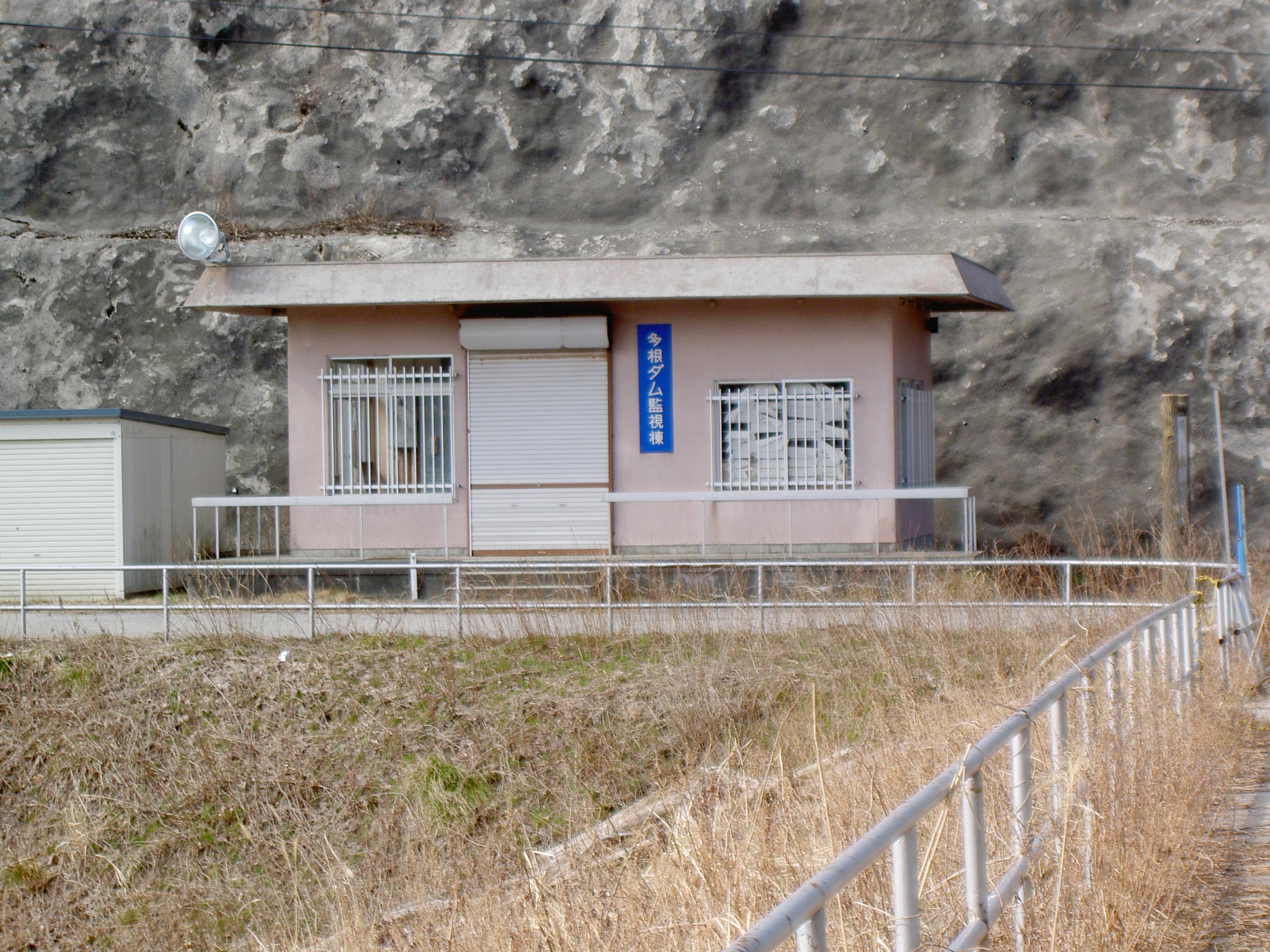 ダム湖には水がありません 多根ダム監視棟は無人です
