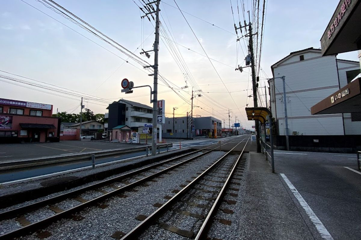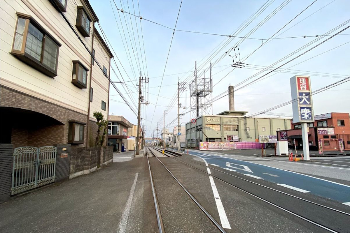 後免西町停留場は後免線の専用軌道区間にあり、軌道は道路から独立しています。