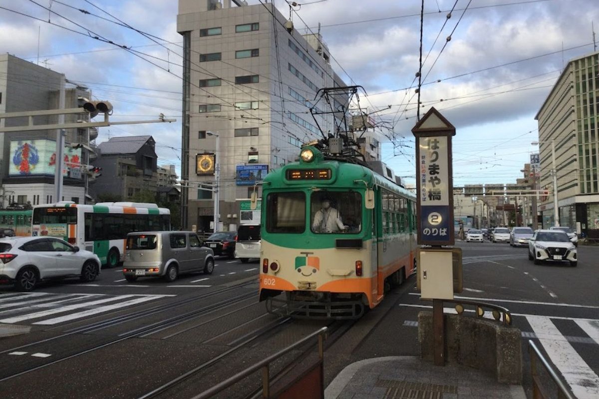 後免線、伊野線、桟橋線の3路線が乗り入れ、東西の路線(後免線・伊野線)と南北の路線(桟橋線)がはりまや交差点上で平面交差する要衝です。
