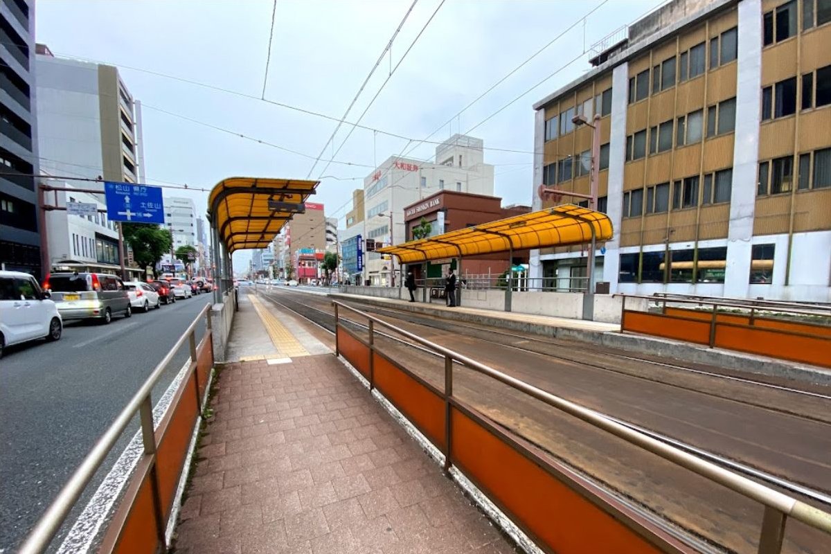 伊野線の軌道は国道32号線上を走っていて、当停留場からグランド通停留場までは「本町」といい、高知市の中心街といえます。