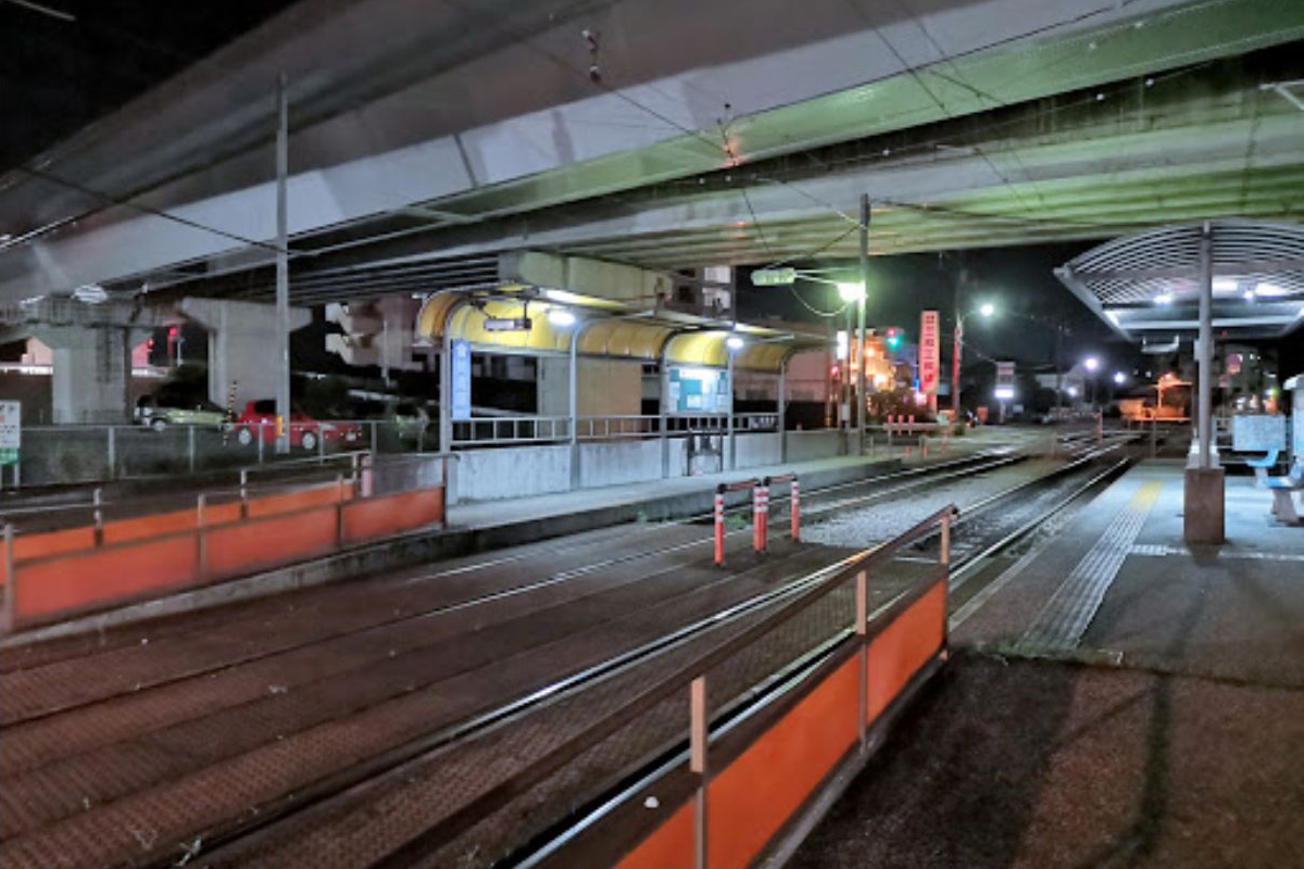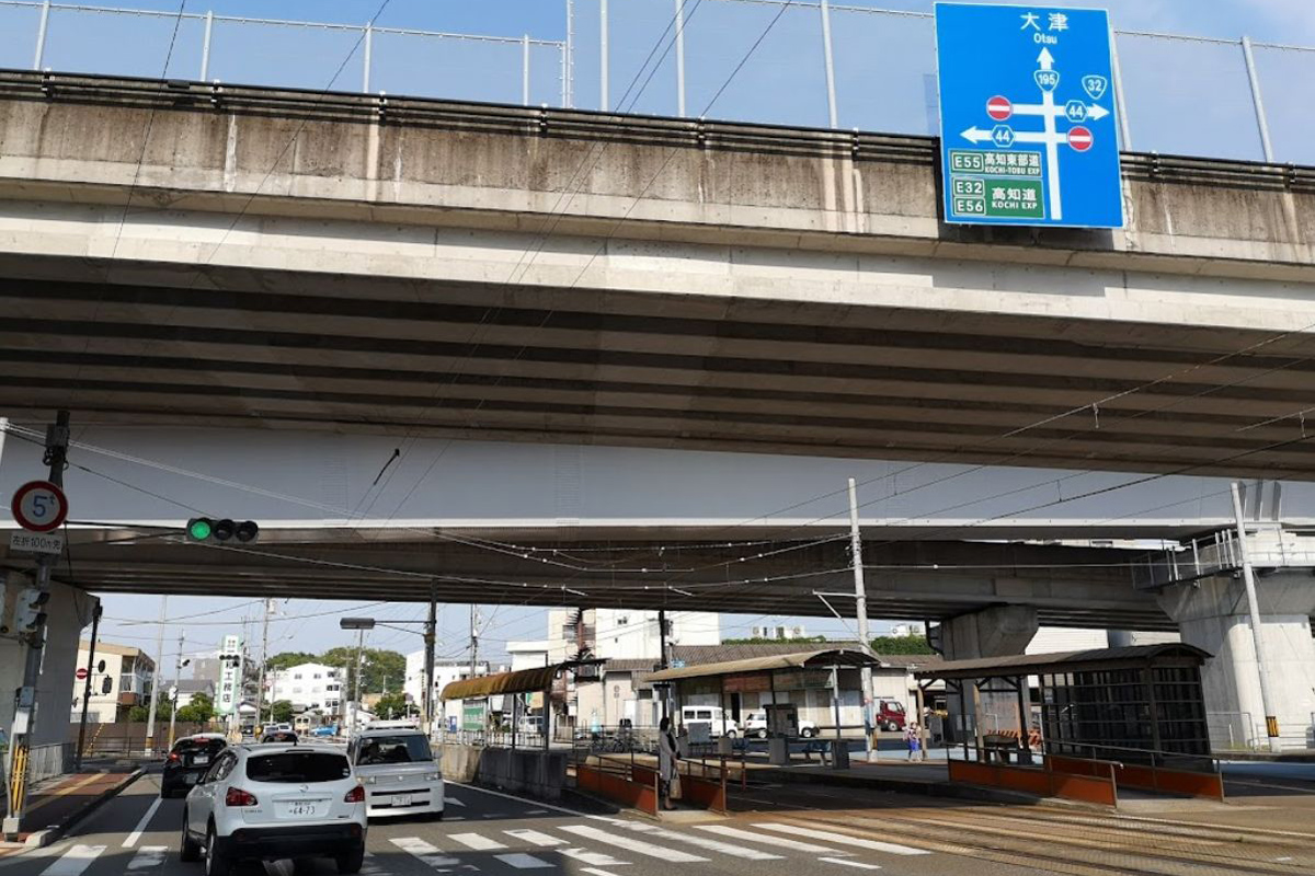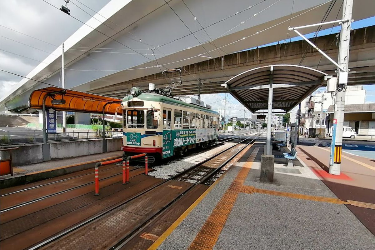 当停留場は、高架となっている高知県道44号高知北環状線と国道195号が交差している地点に位置します。高知県立美術館は停留場の北、徒歩5分ほどの距離にあります。