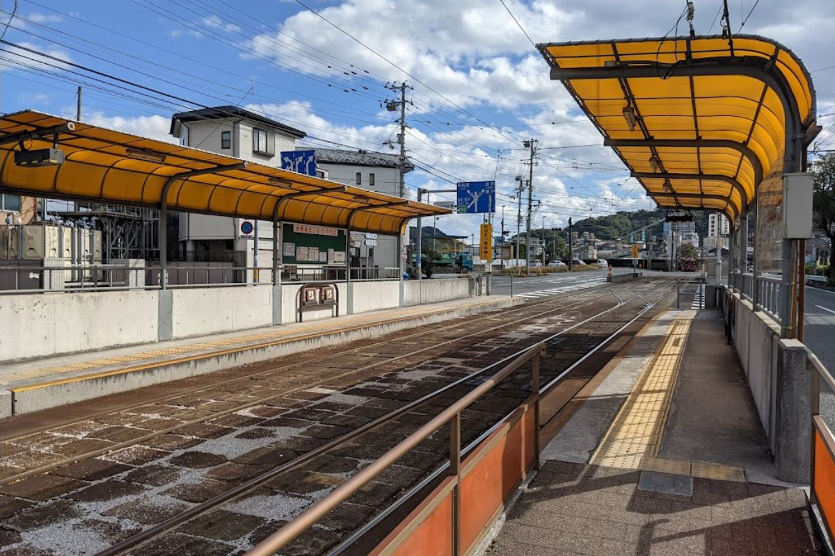軌道の東側にあるのが桟橋方面行き、西にあるのが高知駅方面行きのホーム。市道の延伸により、停留場は2009年に約50メートル北(高知駅寄り)へ移設されています。