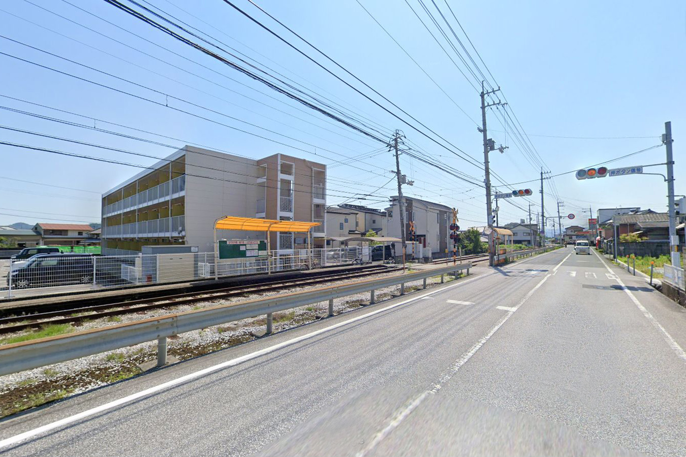 篠原停留場は後免線の専用軌道区間にあり、軌道は道路から独立しています。