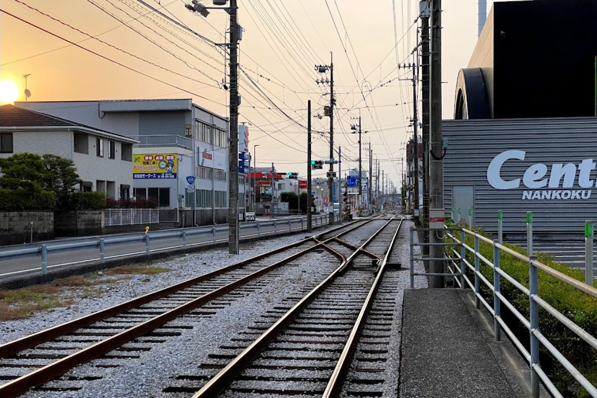北を並走する国道195号に右折レーンを設けるため、1994年には軌道が上下線とも南に2メートル移設されています。