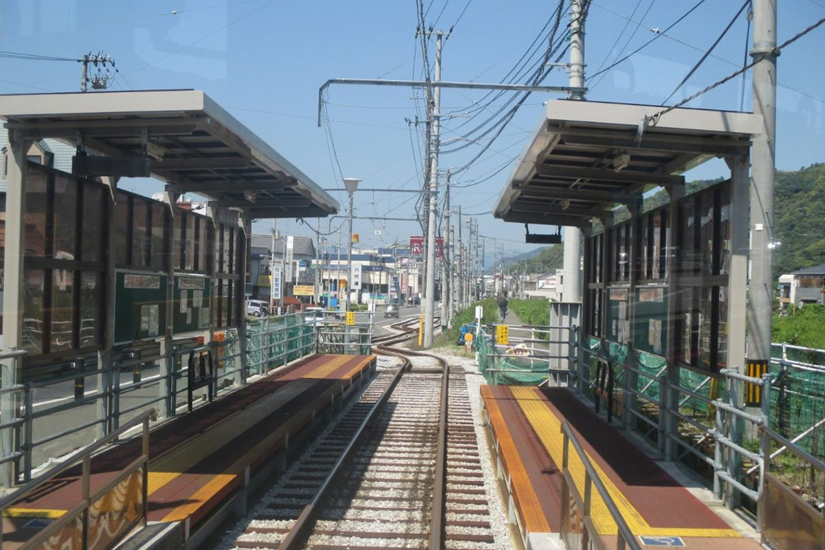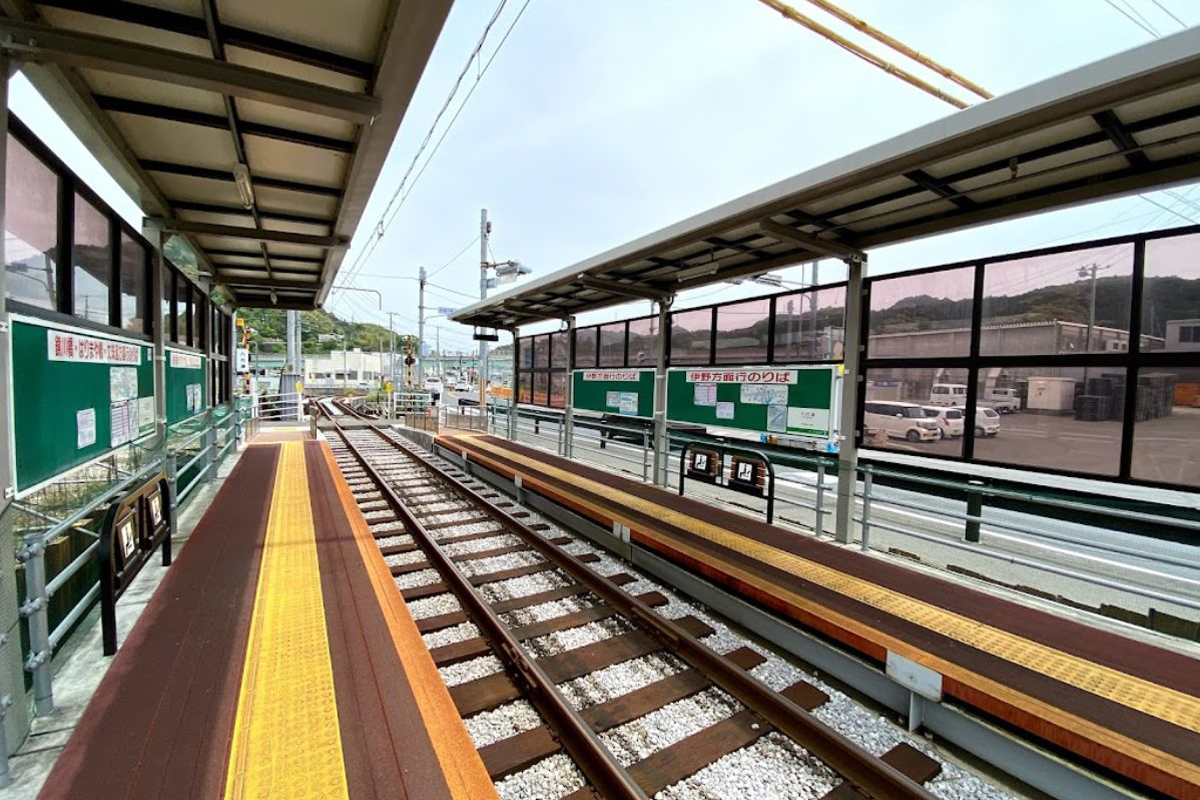乗り場は2面あり、東西方向に伸びる単線の軌道を挟み込むように向かい合って配置される相対式ホームとなっています。軌道の北にあるのがはりまや橋方面行きのホーム、南にあるのが伊野方面行きのホームです。