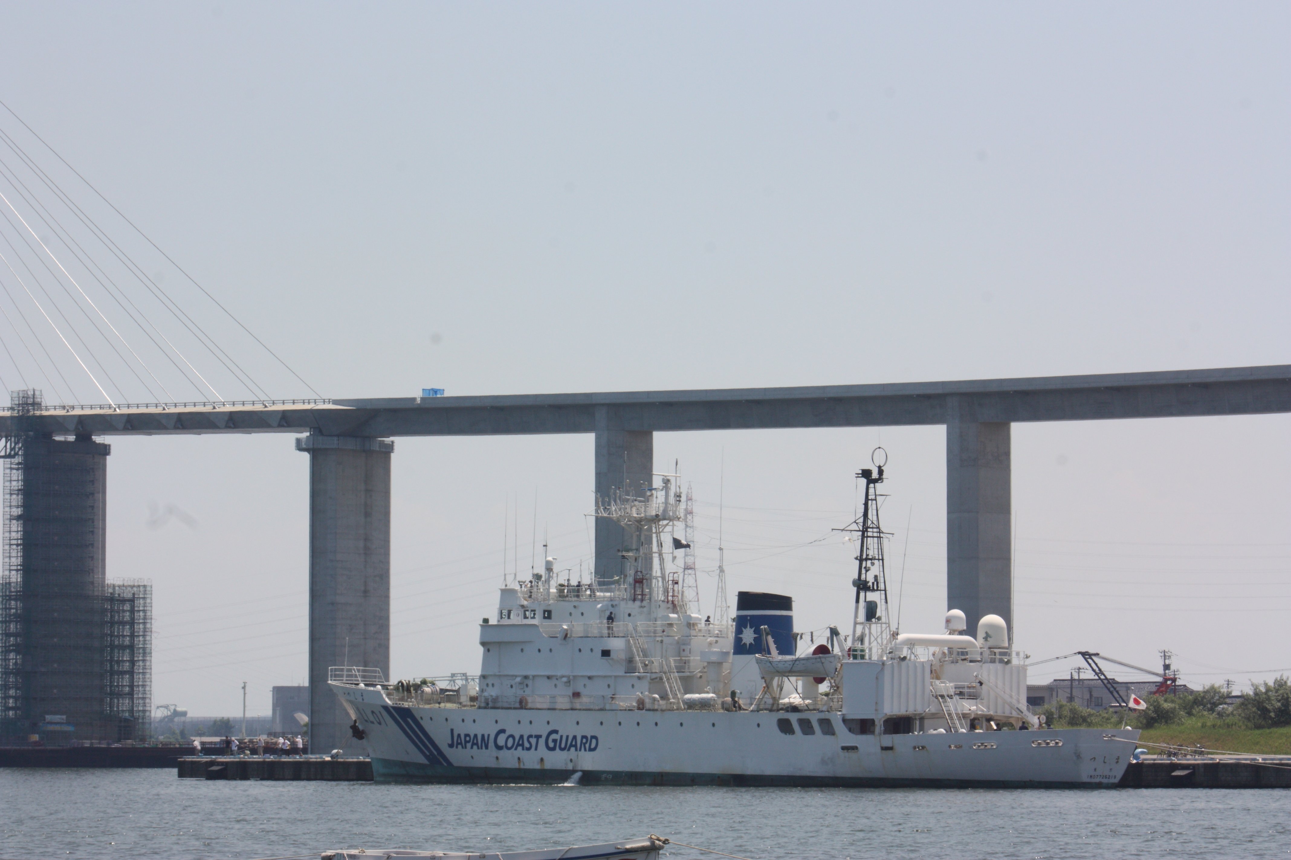 平成23年7月17日、18日の両日に富山新港に航路標識測定船「つしま」と国土交通省北陸地方整備局新潟港湾・空港整備事務所に所属する大型浚渫兼油回収船「白山」が来港しています。