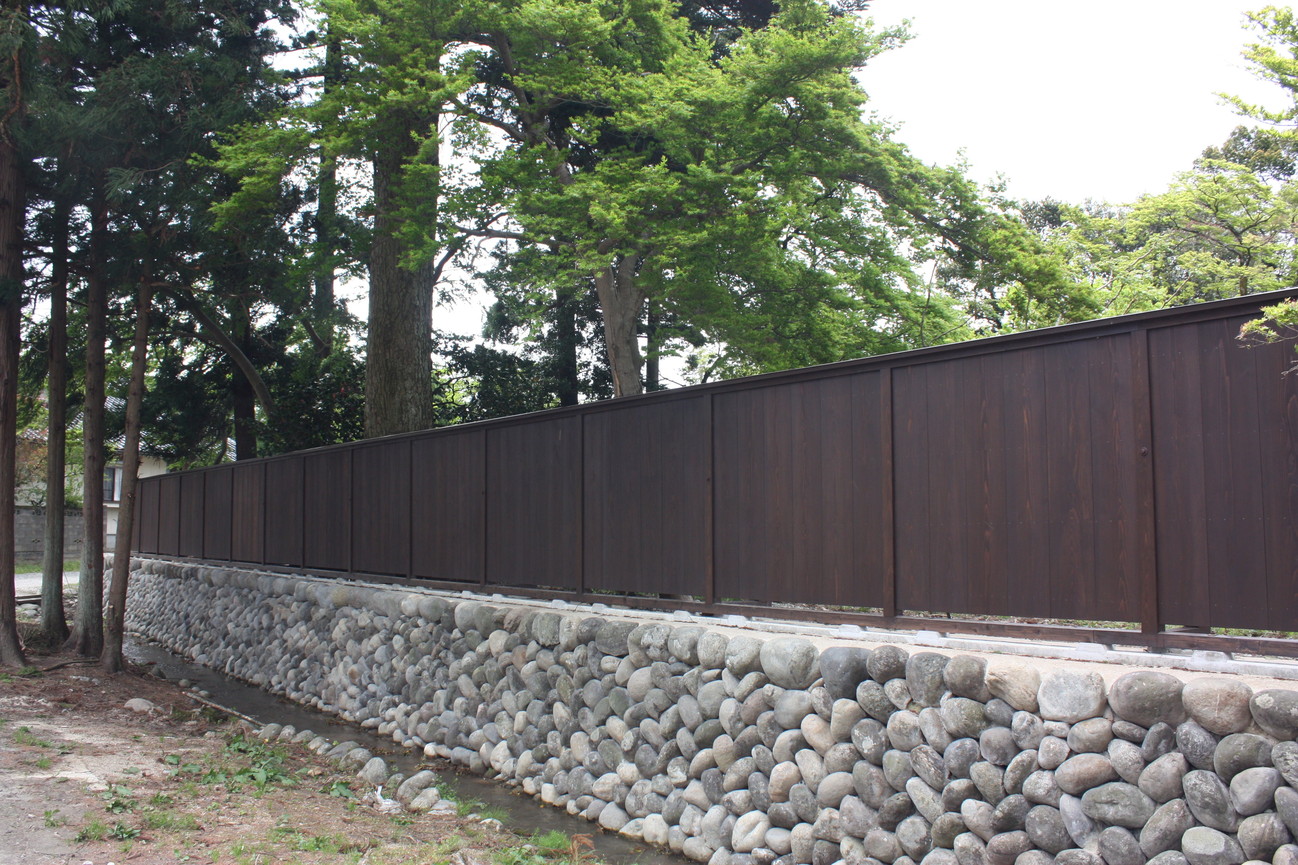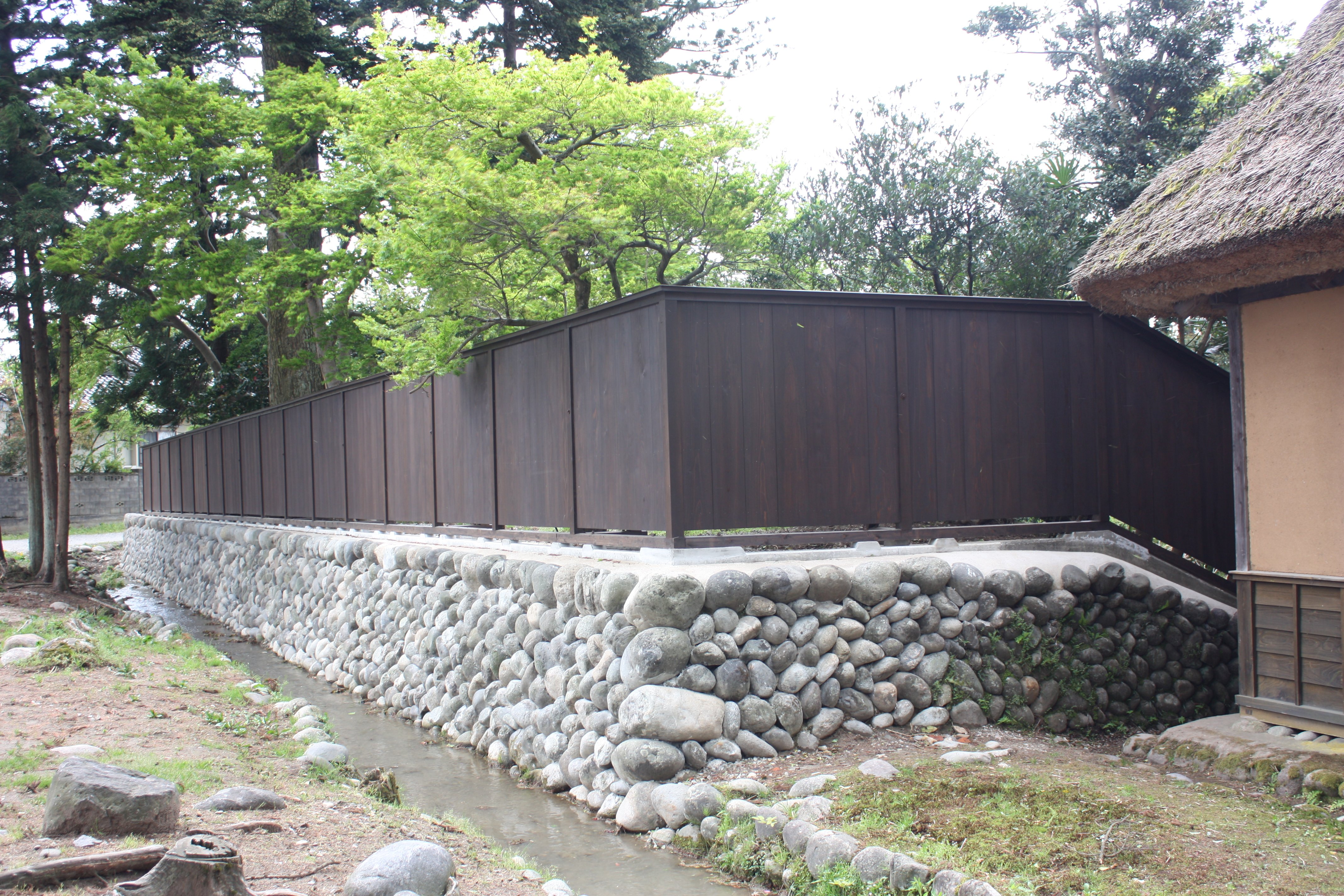 敷地の周囲は堀と木板塀が廻り、主屋の左手には庭園が配されました。