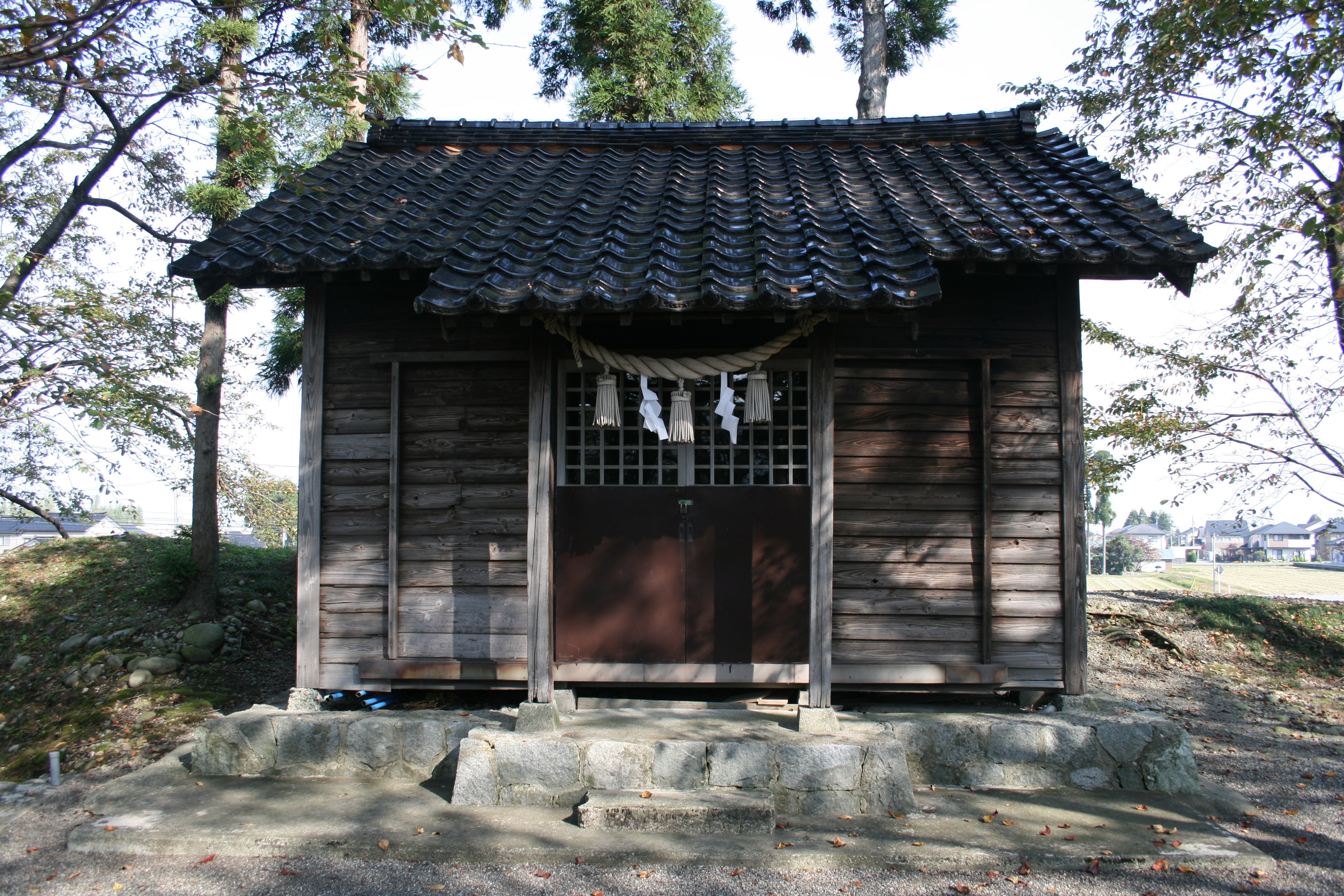 | 若栗城北側の土塁の上には八幡社社殿があります |