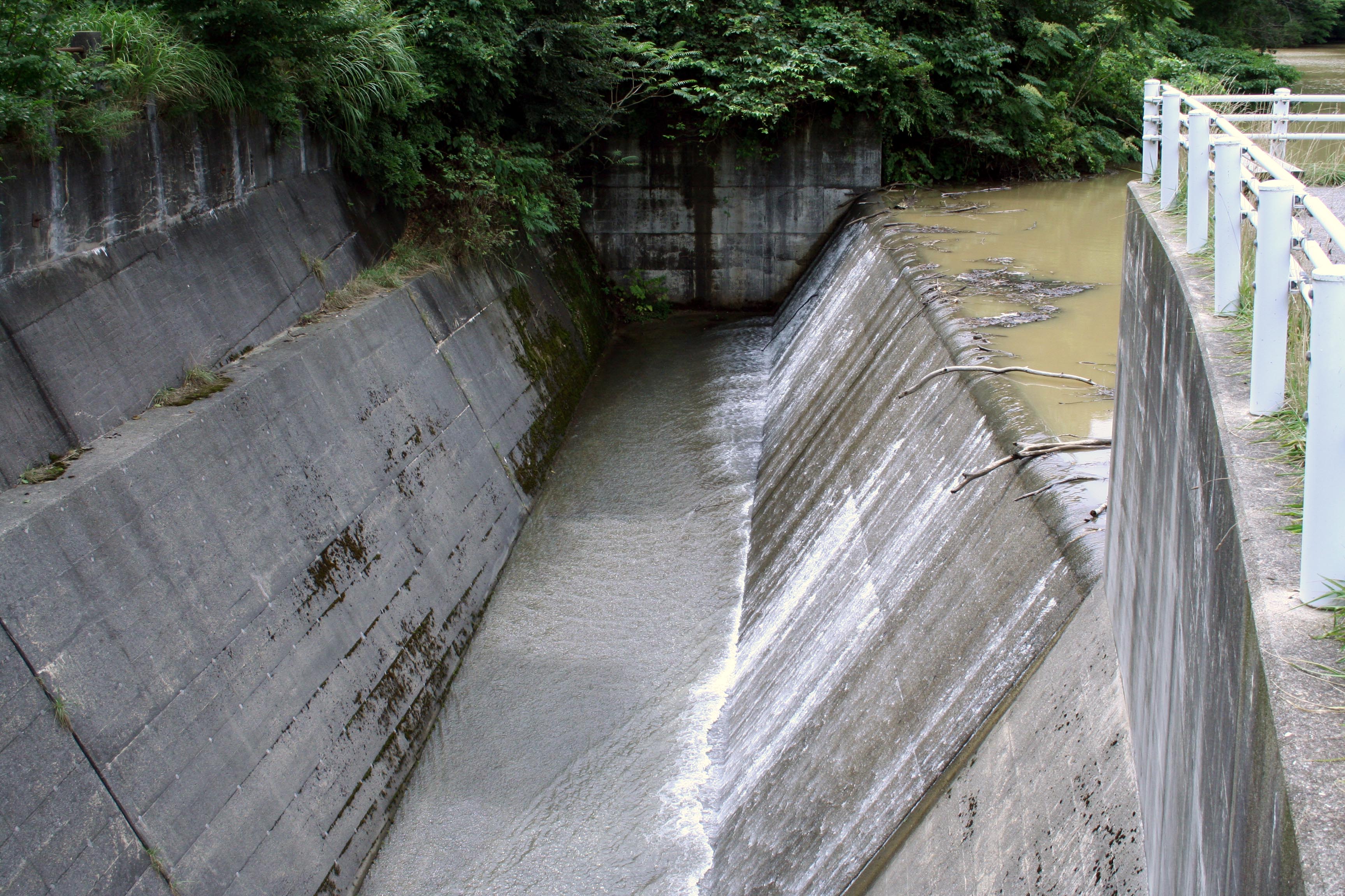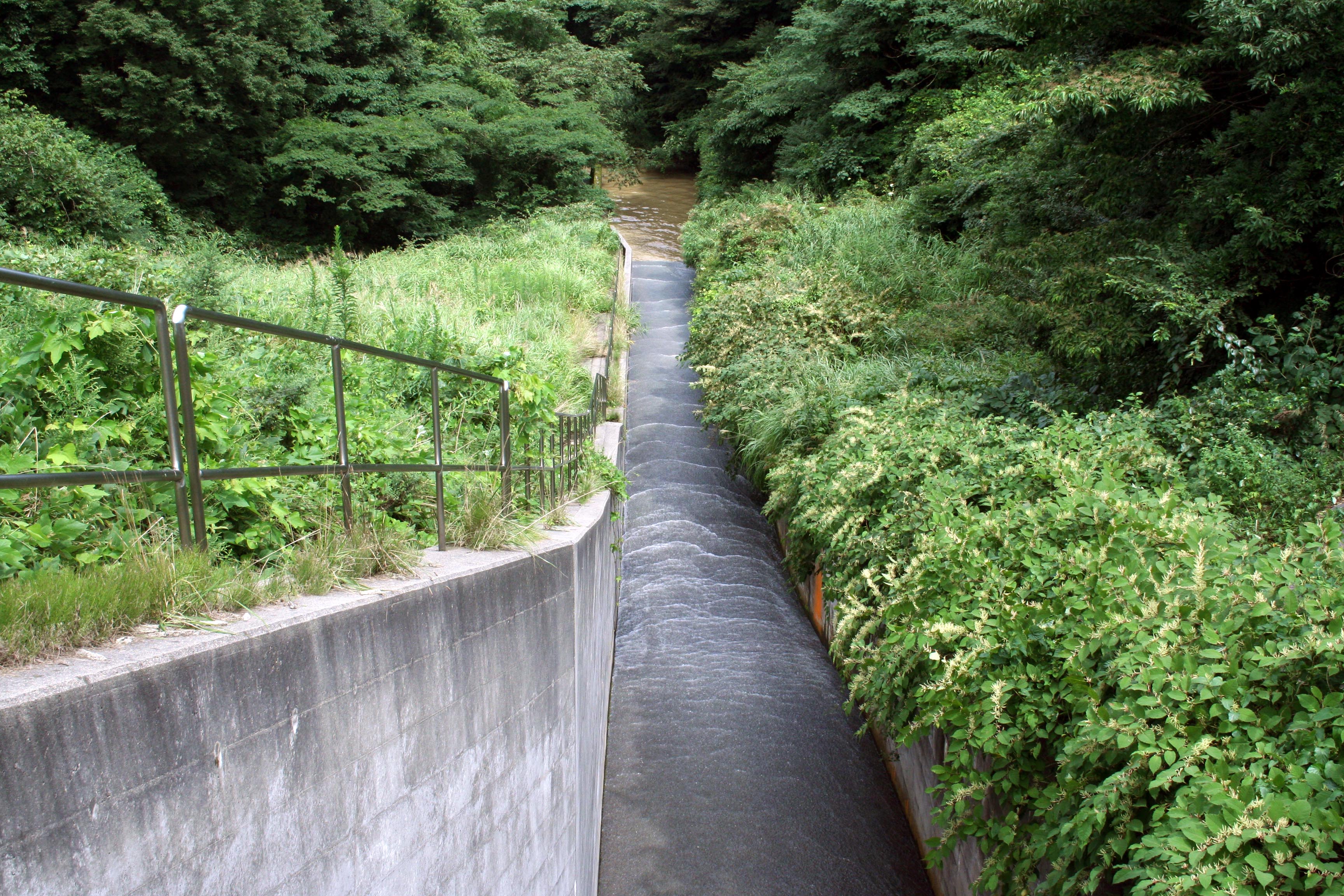 このダムにはゲートはなく自然越流式洪水吐があるだけでしたが、ちょうどここを訪れたときは水があふれ出ていました。