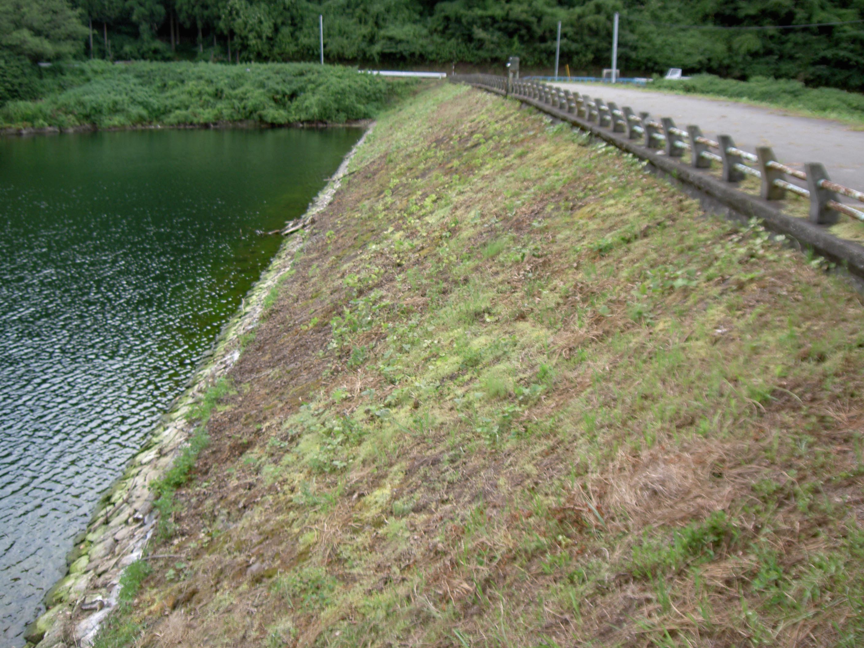 ここも堤体には草が生い茂っていて一見アースダムかと思いますが、よく見るとやはりロックフィルダムでした。