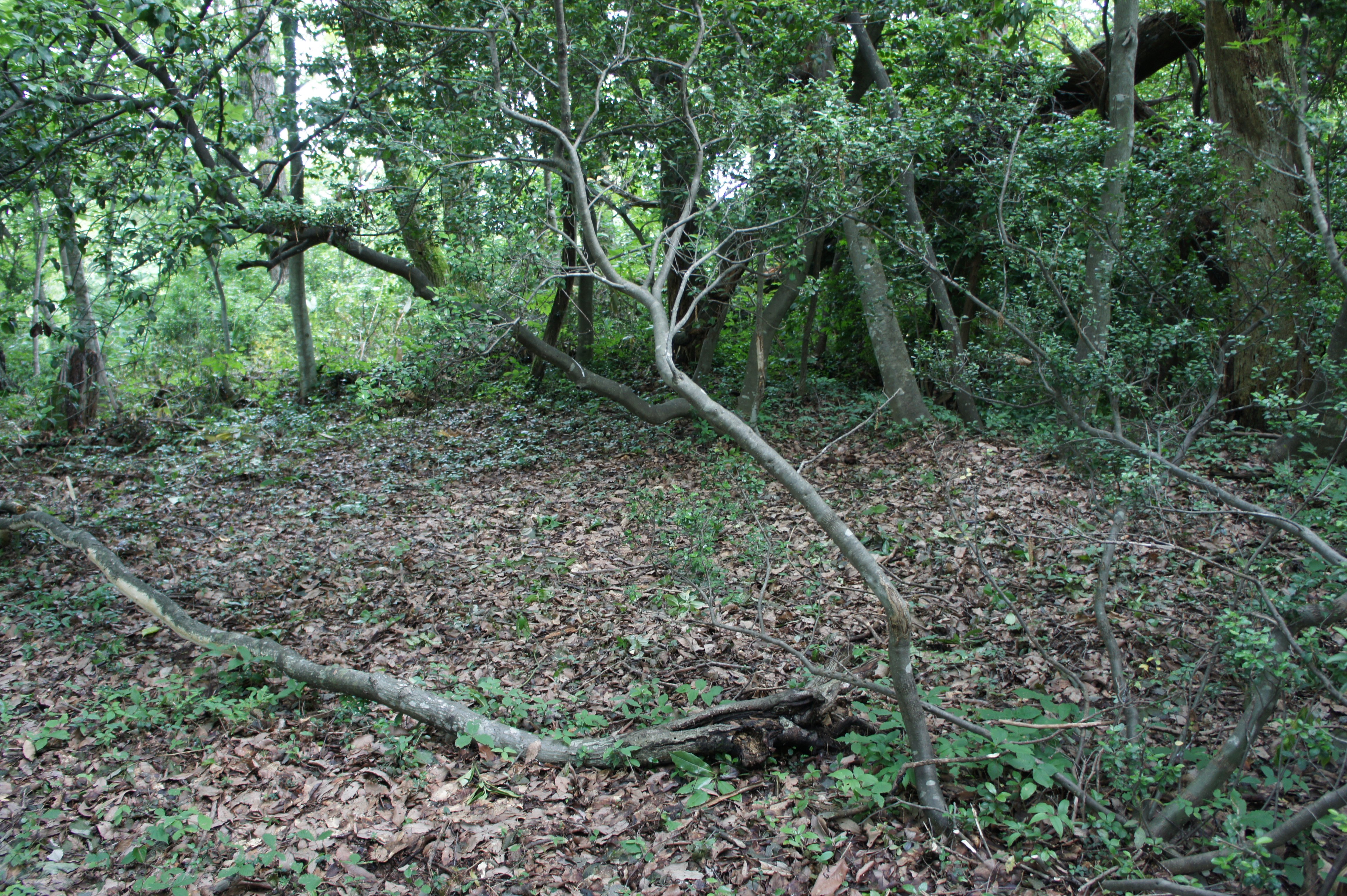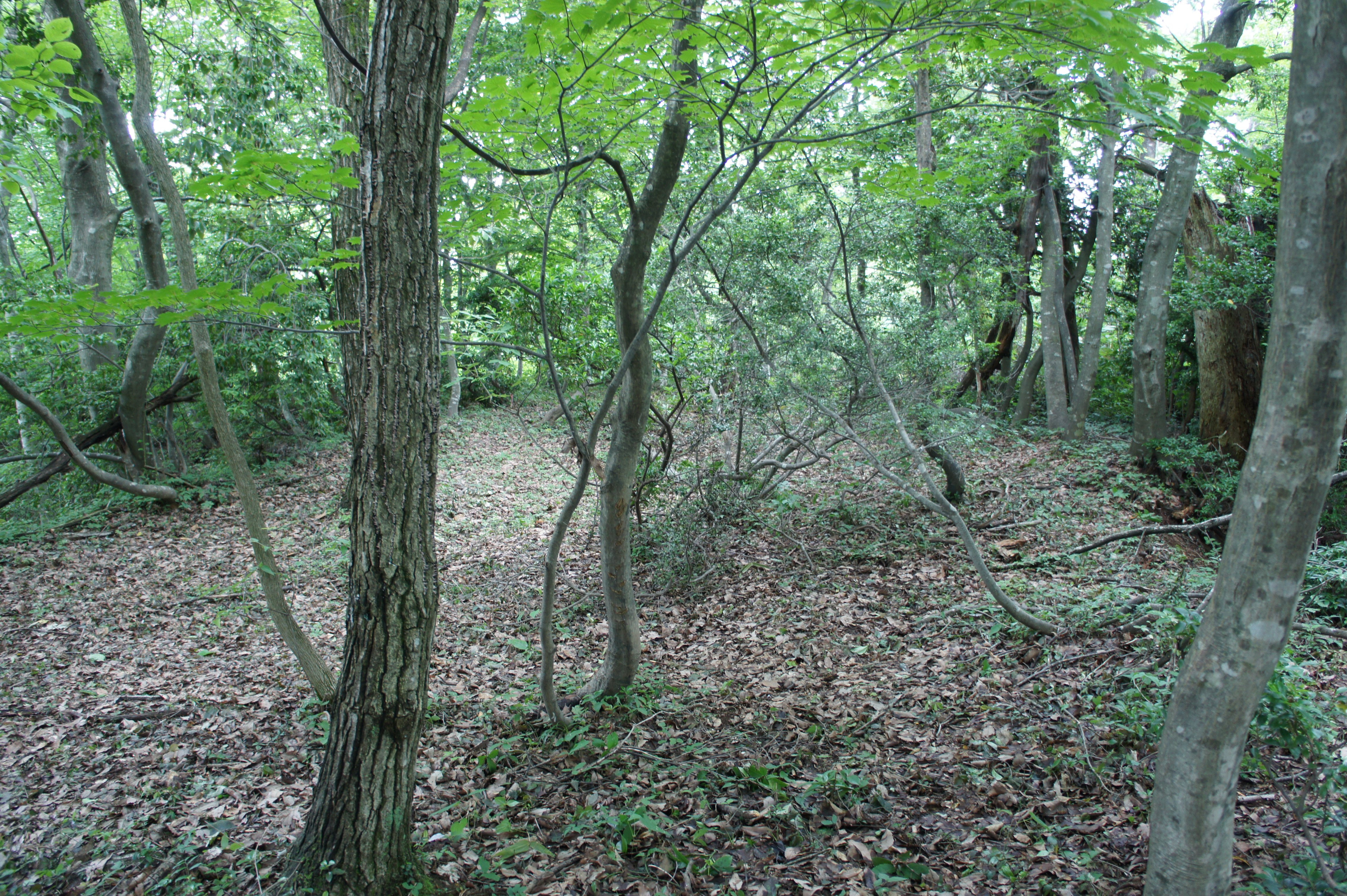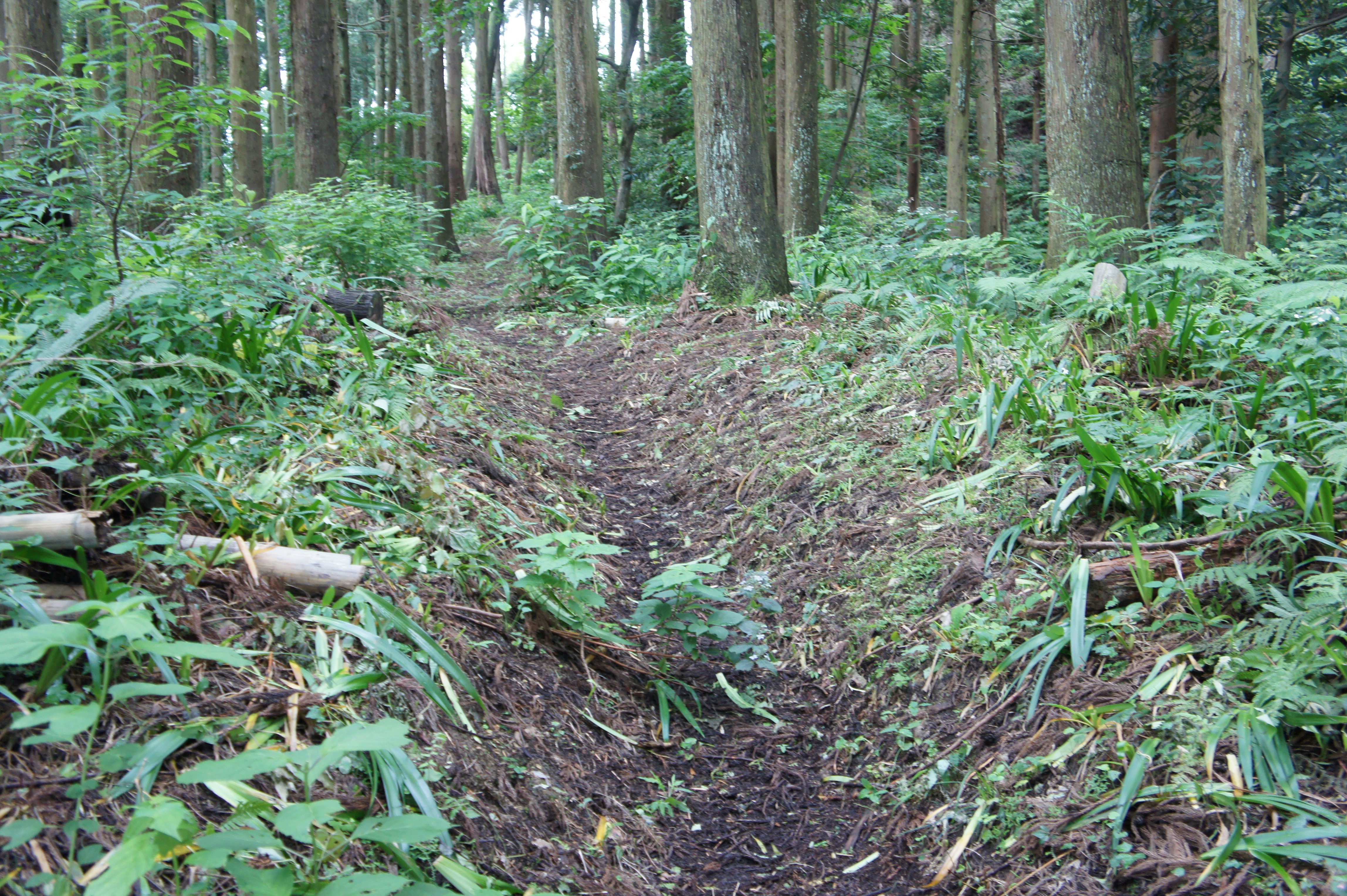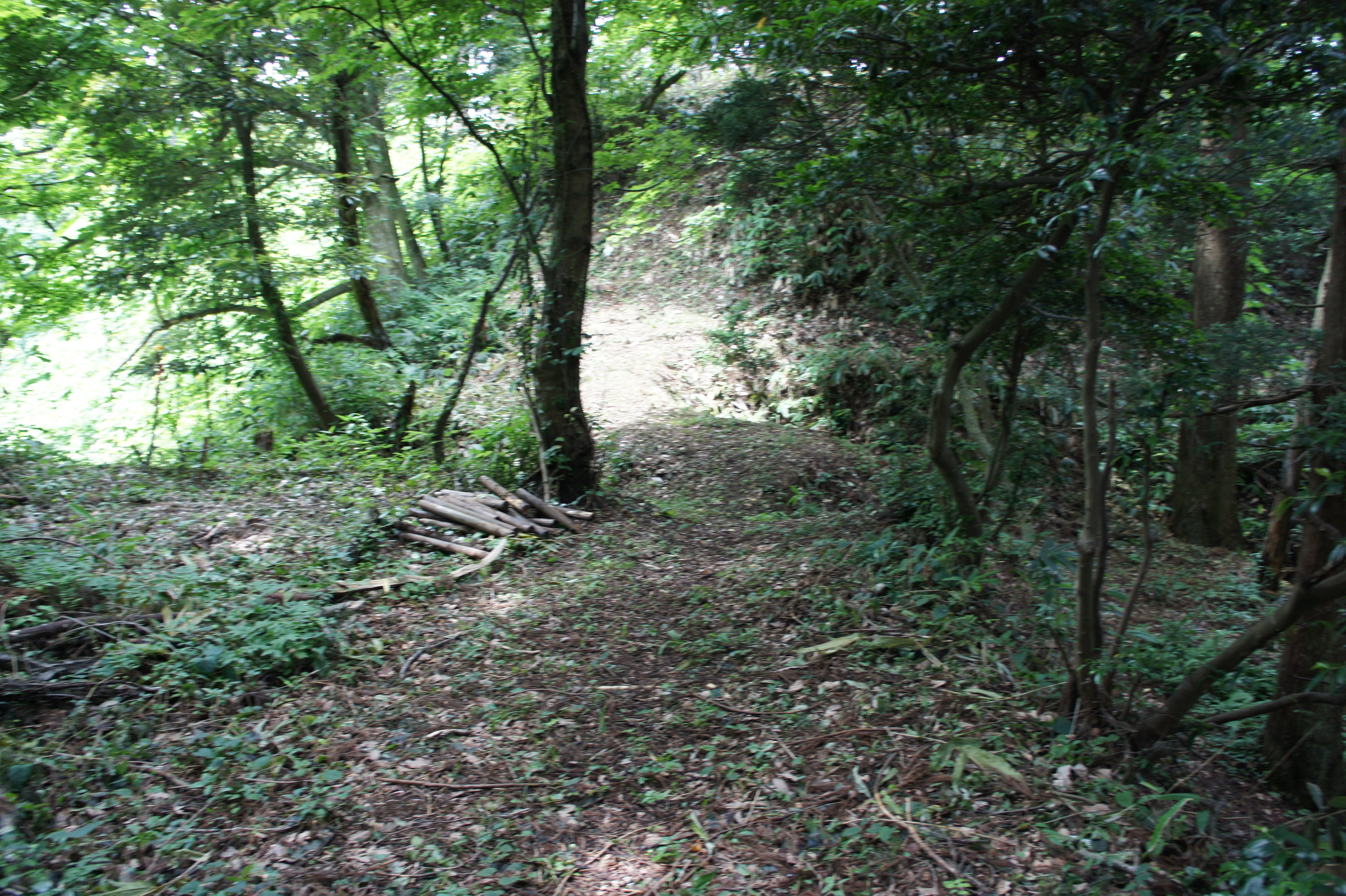 主郭手前の堀切と古池跡はこの城随一の遺構ですが、実はここからすぐに主郭に入るのではなく、右へ迂回して段郭側から主郭に入るのが大手なのですが、そこまでの整備はまだ進んでいないのが残念です。