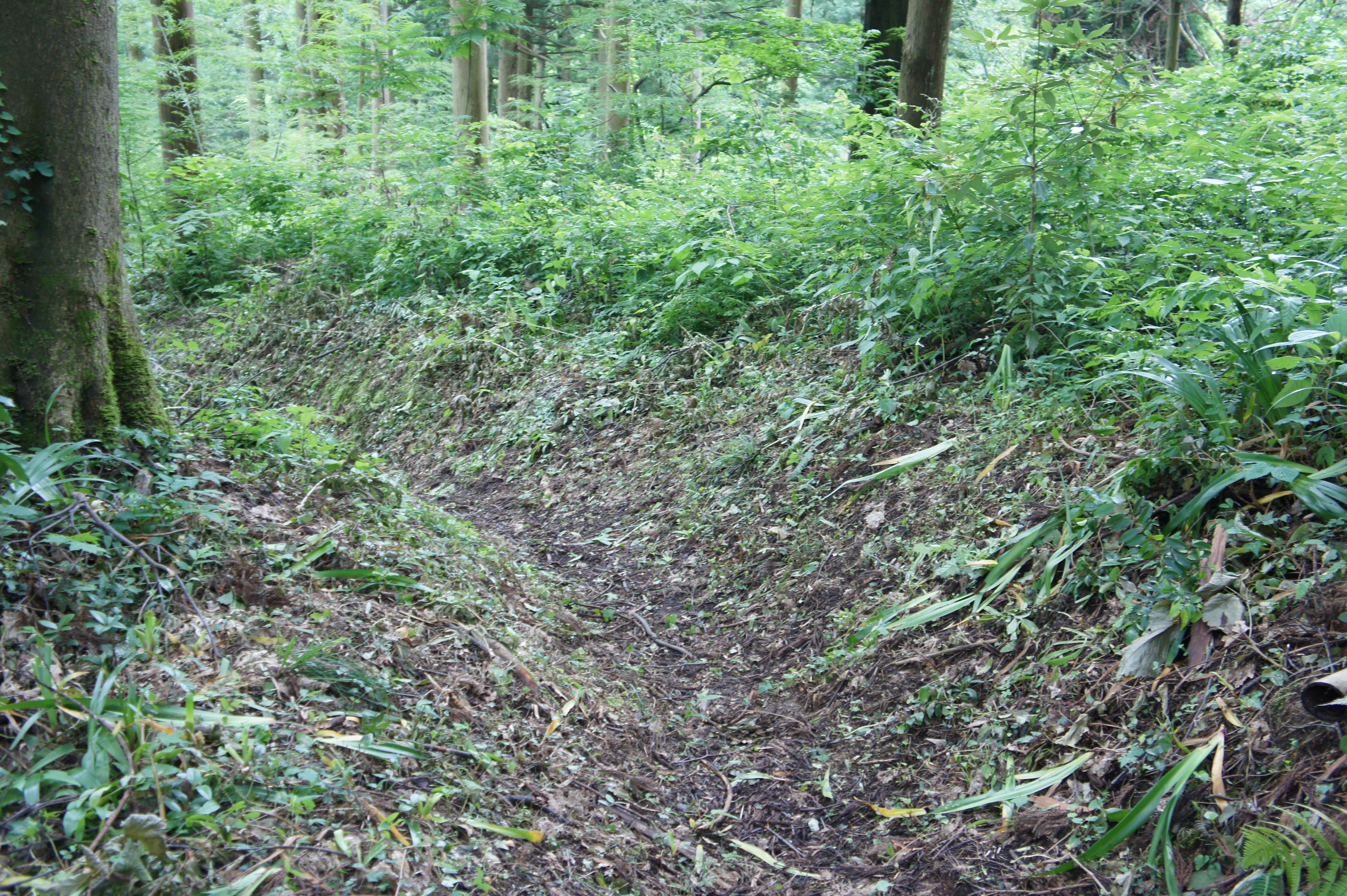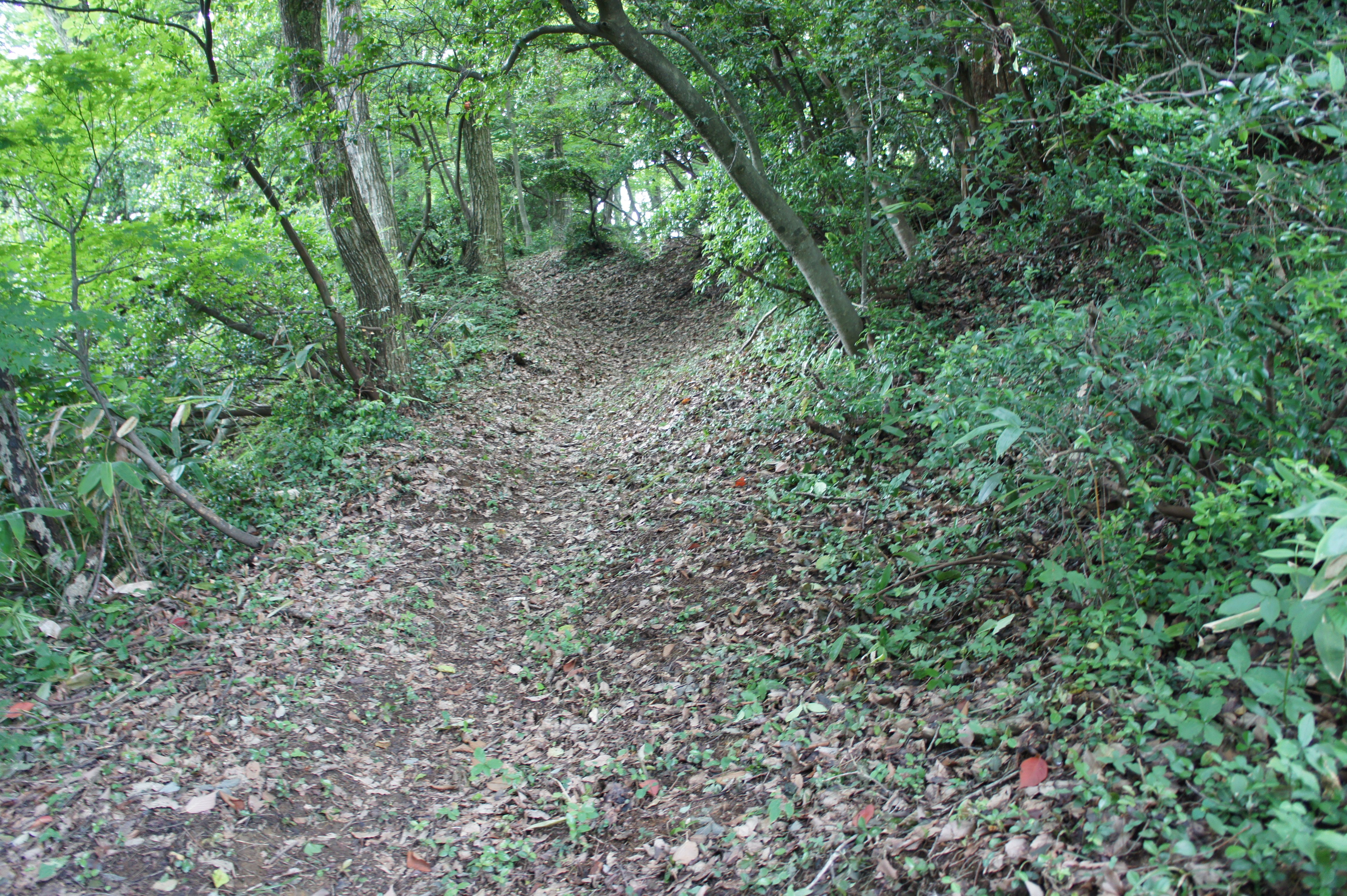 城の遺構としては、堀切、竪堀、土塁、古池跡、切岸と揃っています。特徴的なのは尾根道を通路として計画的に郭を配置していて、絶えず横矢が掛かるようにしてあることで、防備はかなり固いと評価できます。
