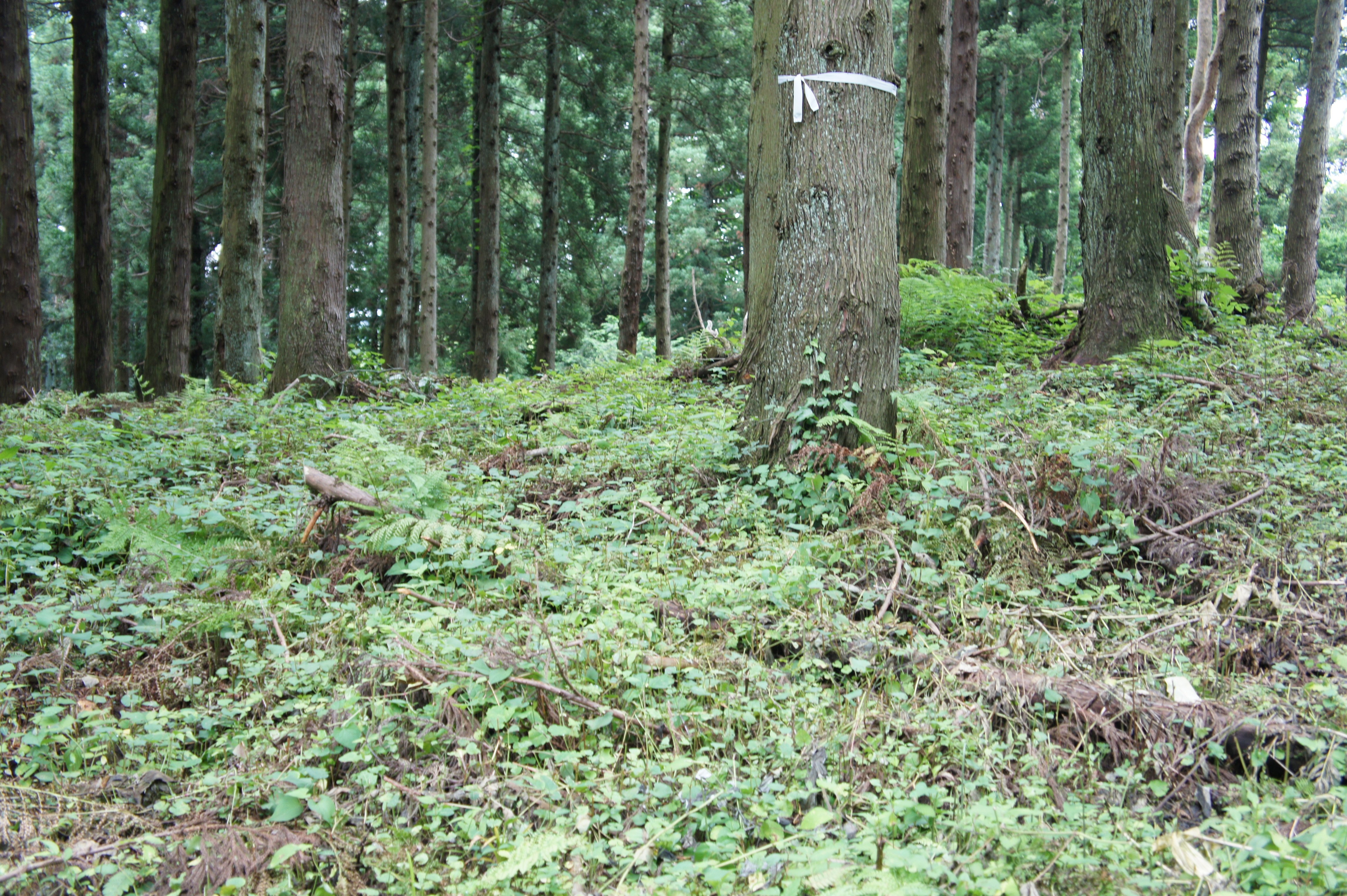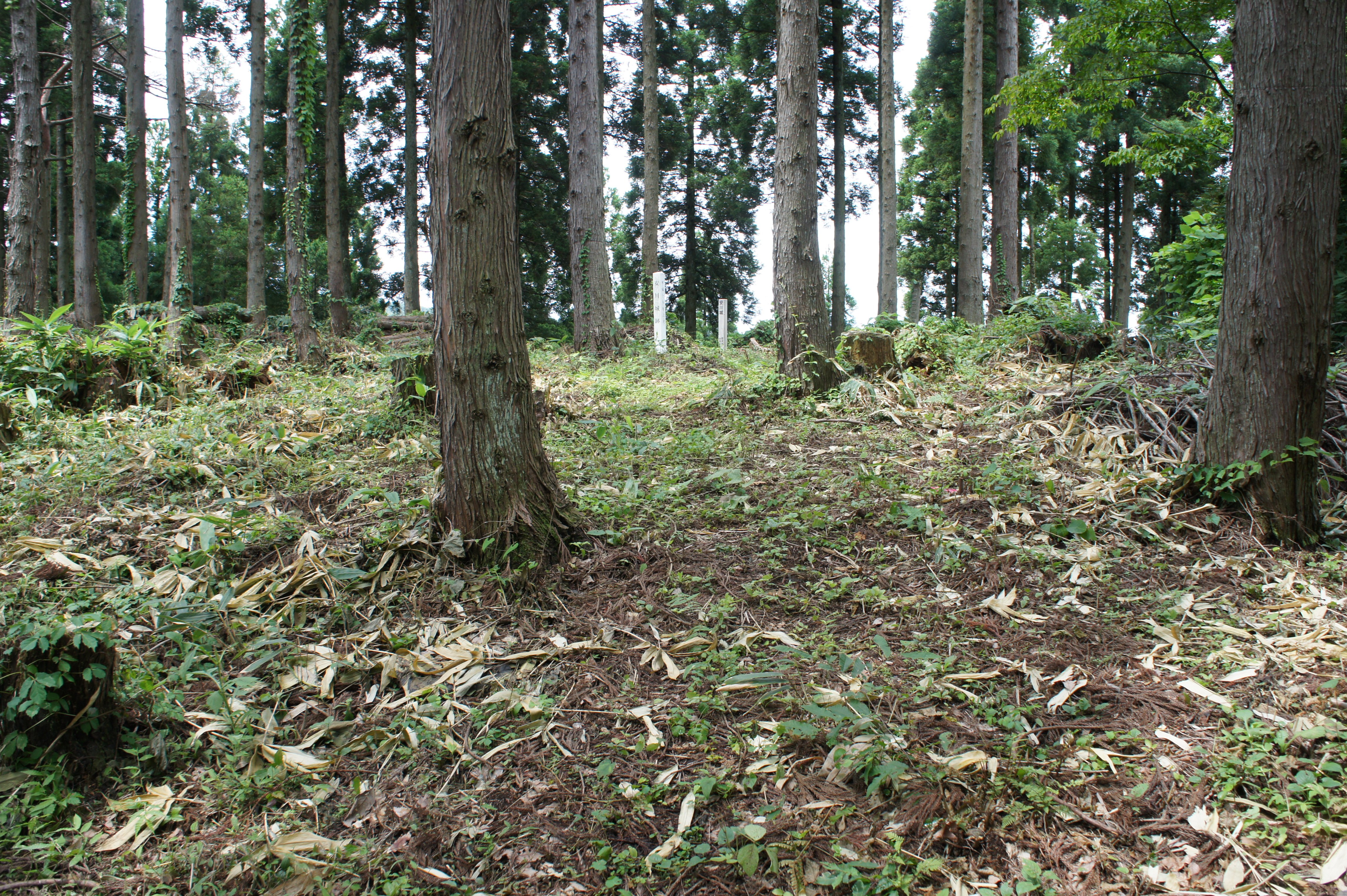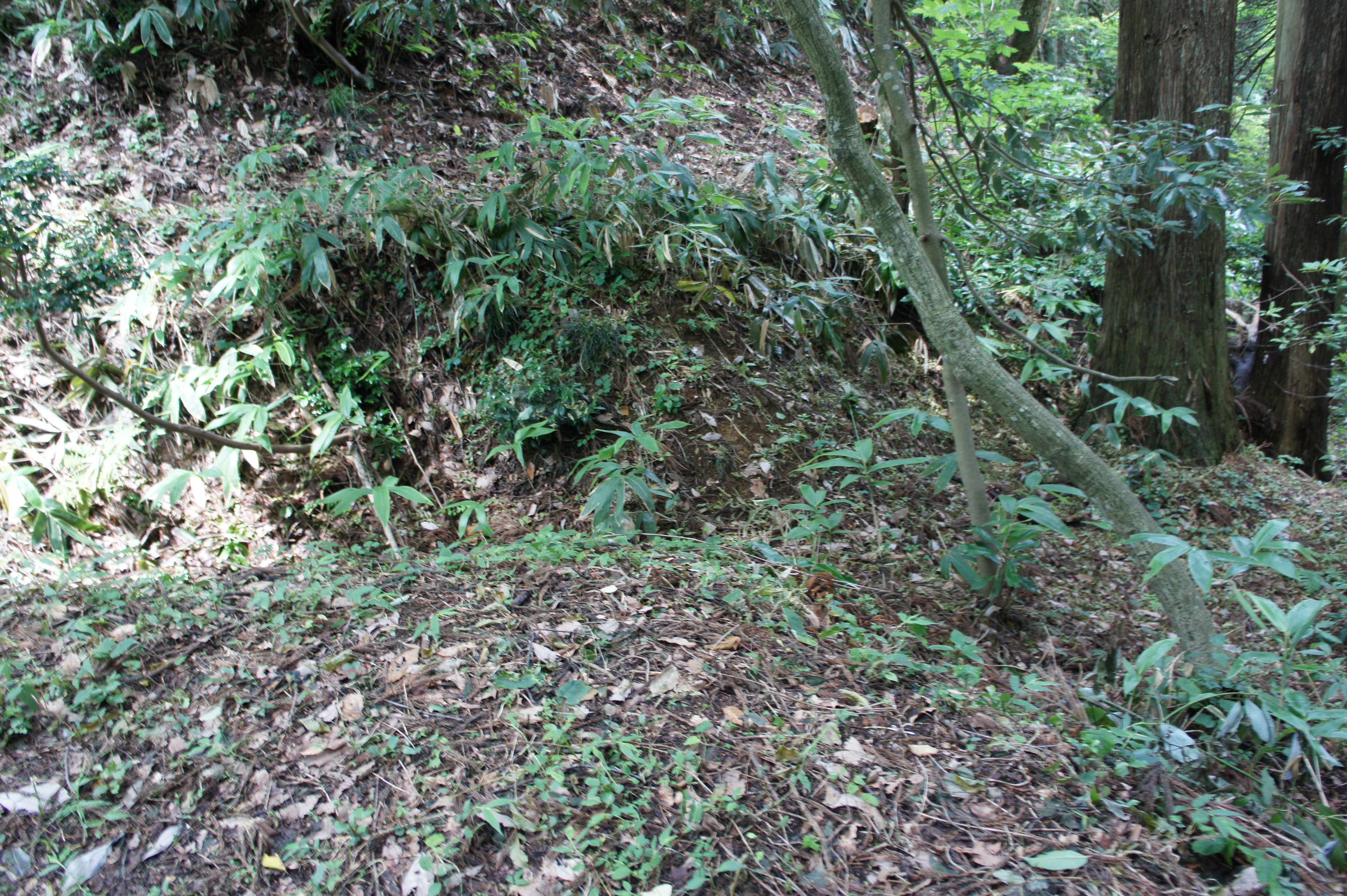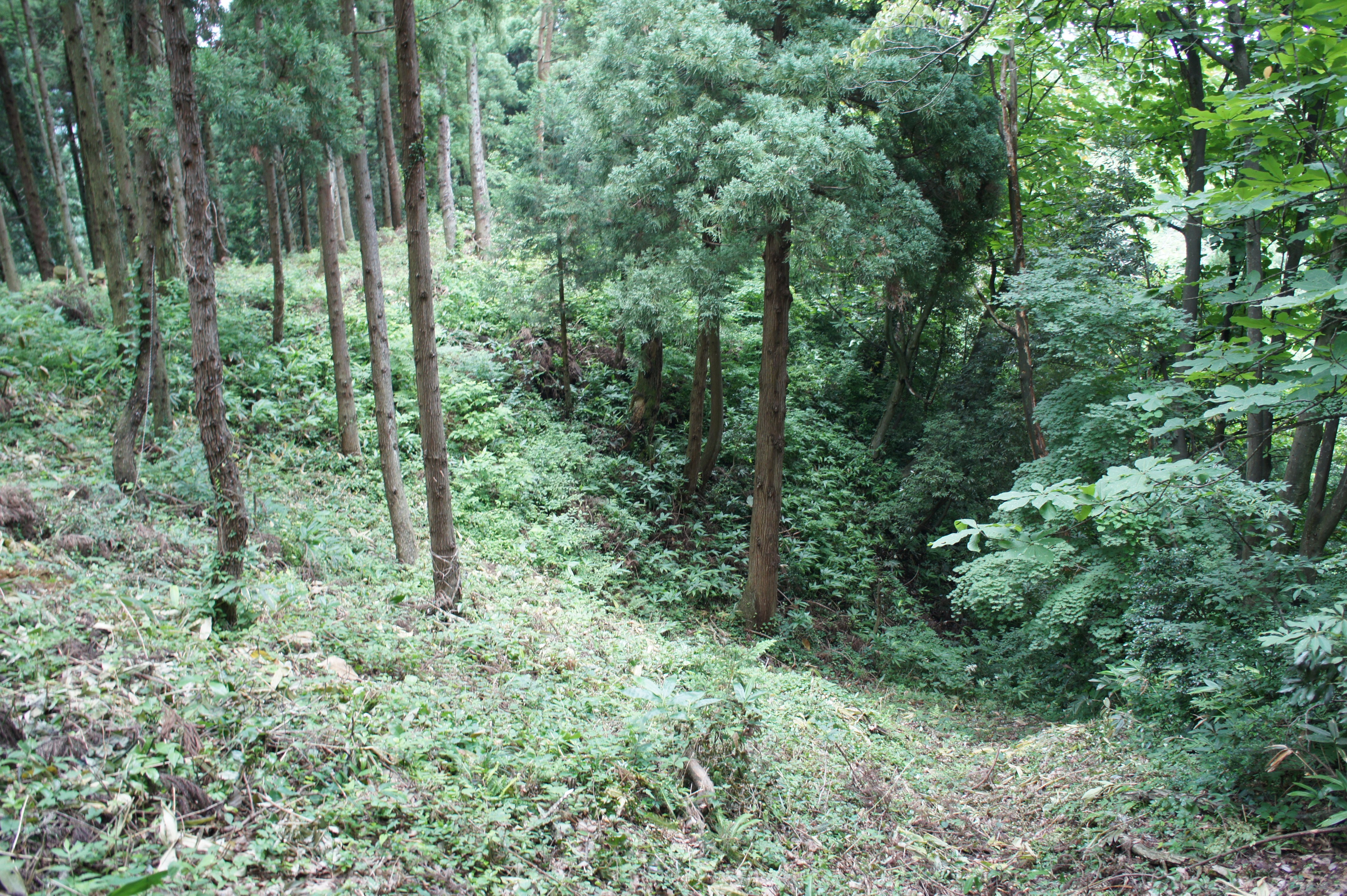 塩谷集落の南の丘陵に築かれ、尾根筋に曲輪が配され、堀切や竪堀を備えた山城です。