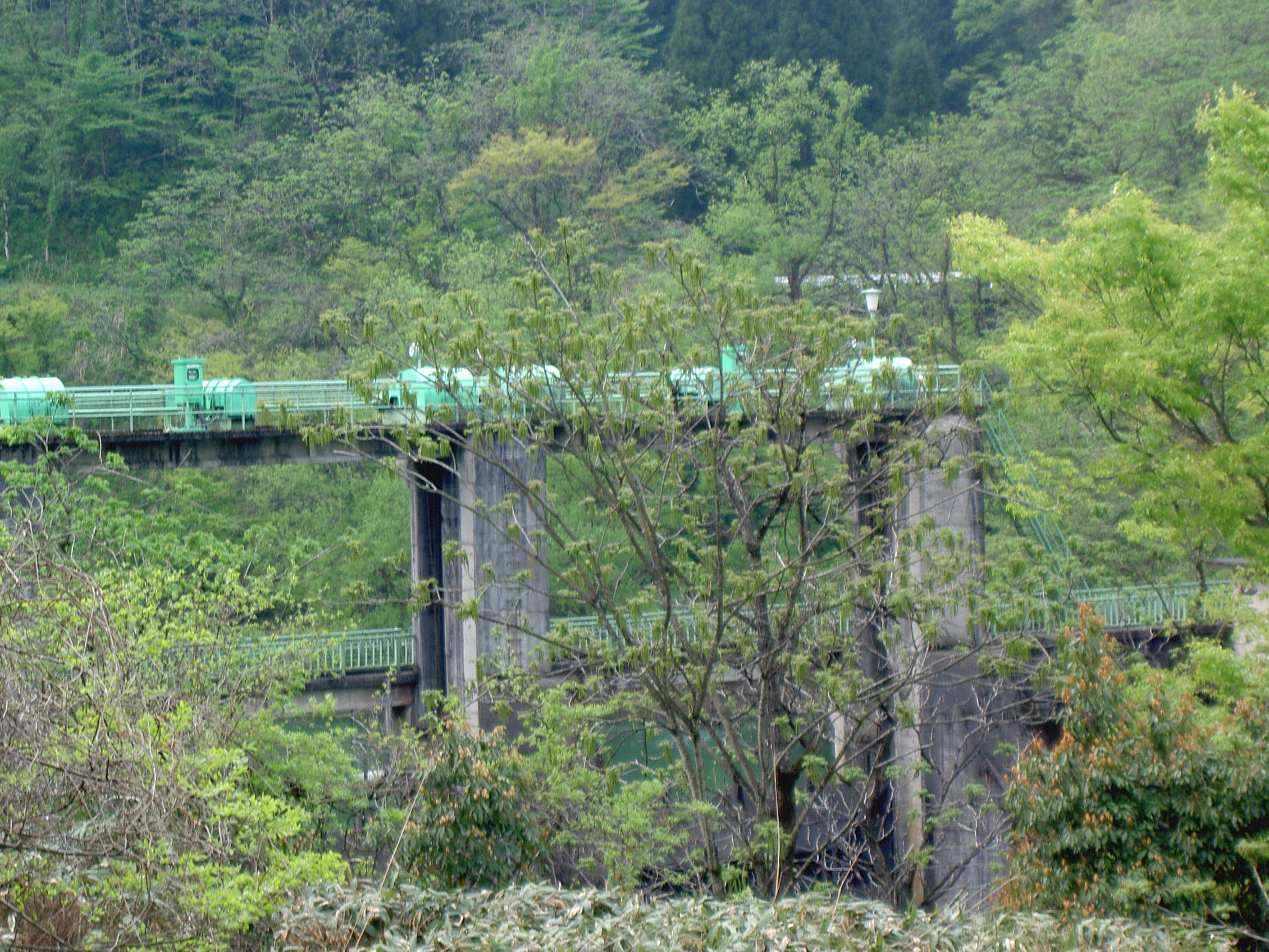 八尾ダムは天端上どころかサイト自体に立ち入り禁止なのでつまらない上に両岸から写真を撮ろうとしても木に邪魔されてなかなかいいポイントがないのが現状です。
