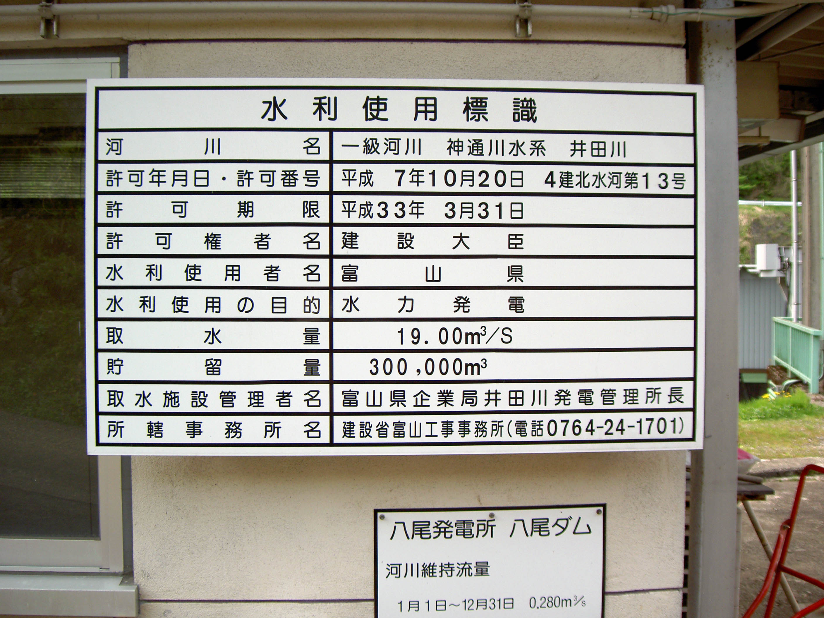八尾発電所は、最大出力7600kwと小規模ですが、高低差が小さいから仕方ないですね。