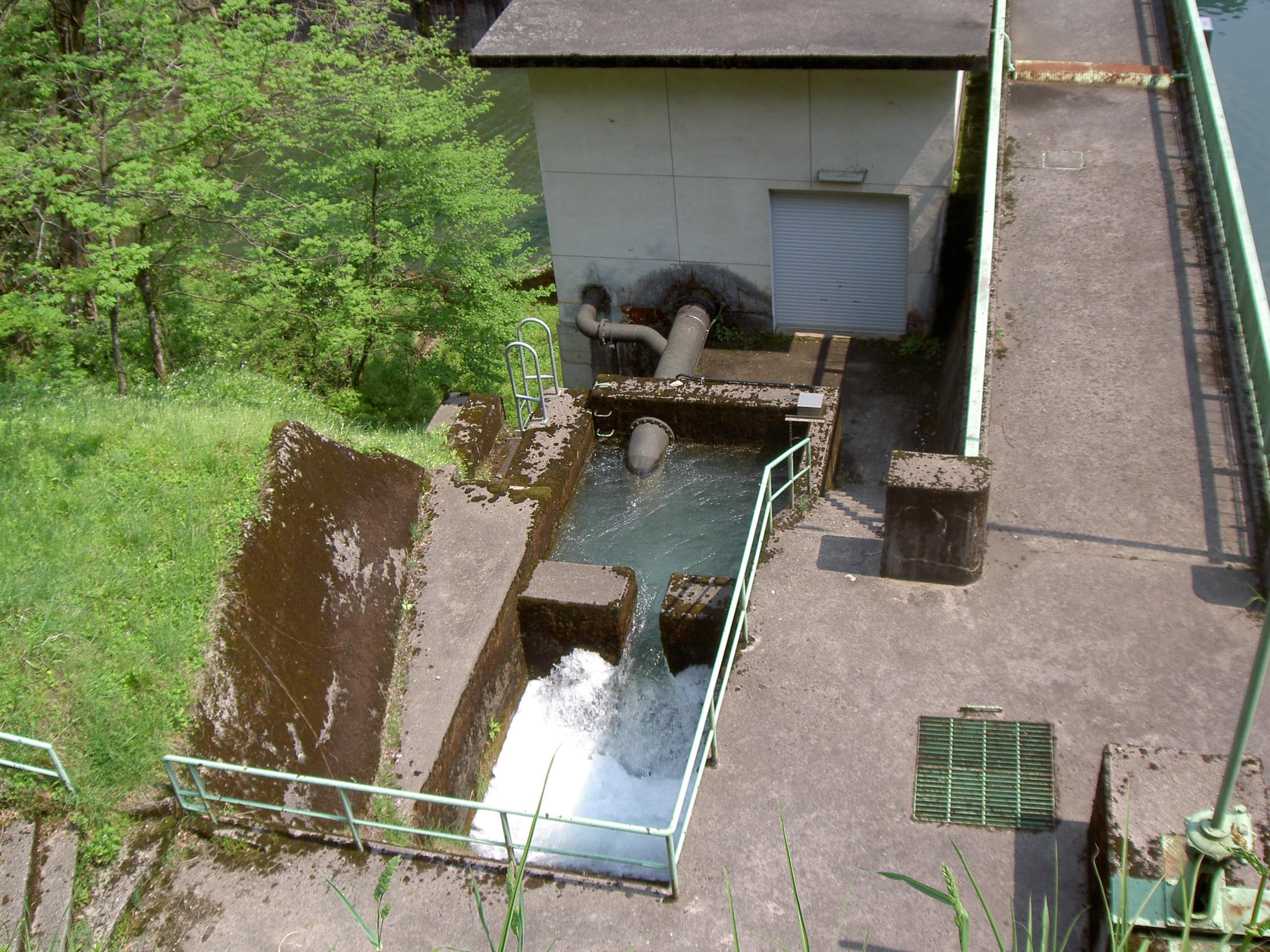 この八尾ダムは、山間にある見てのとおりのいたって小規模なダムですが、上流にある室牧ダムの逆調整池の機能を持っていて、井田川の流量を安定させる役割があります。