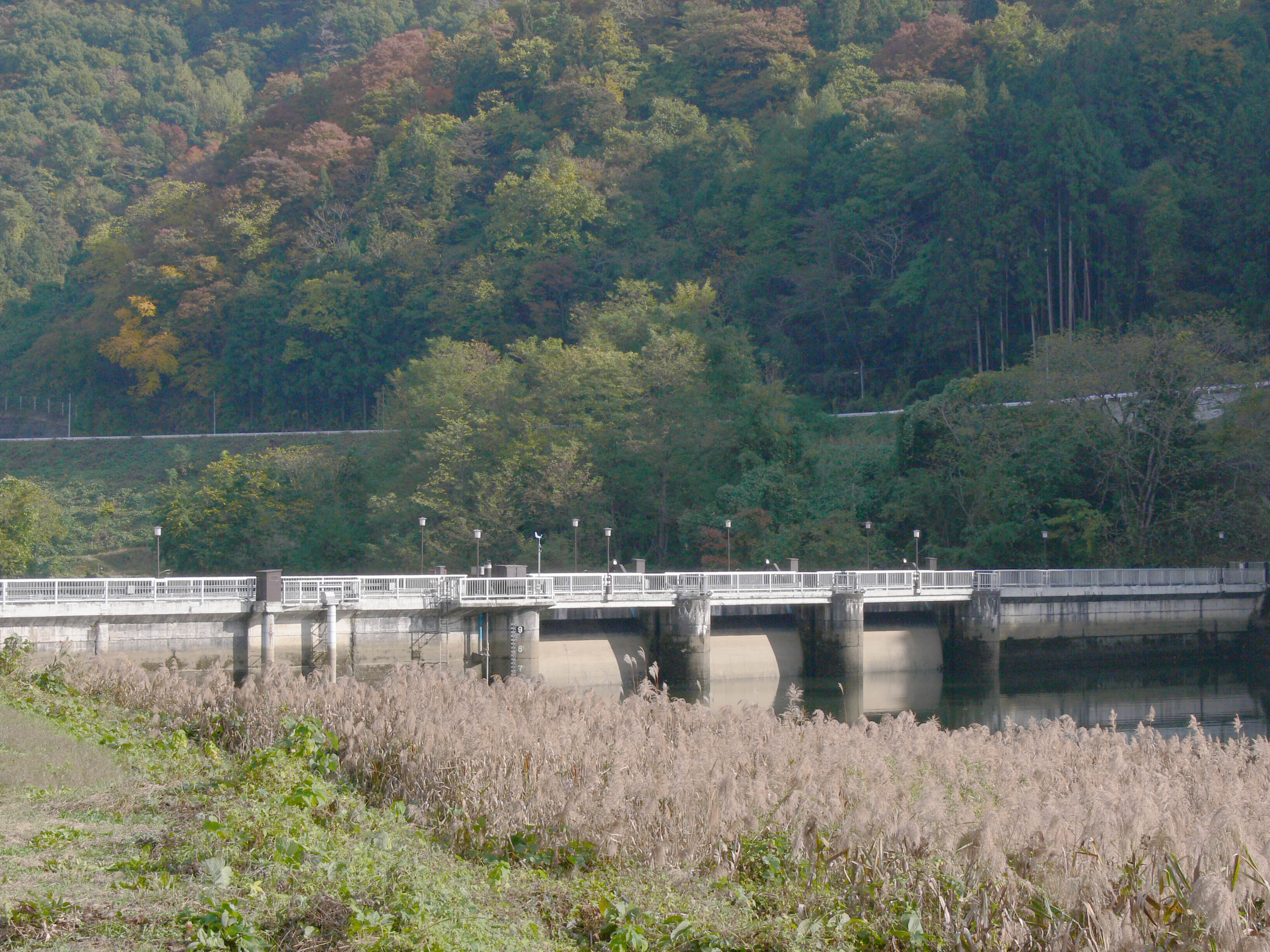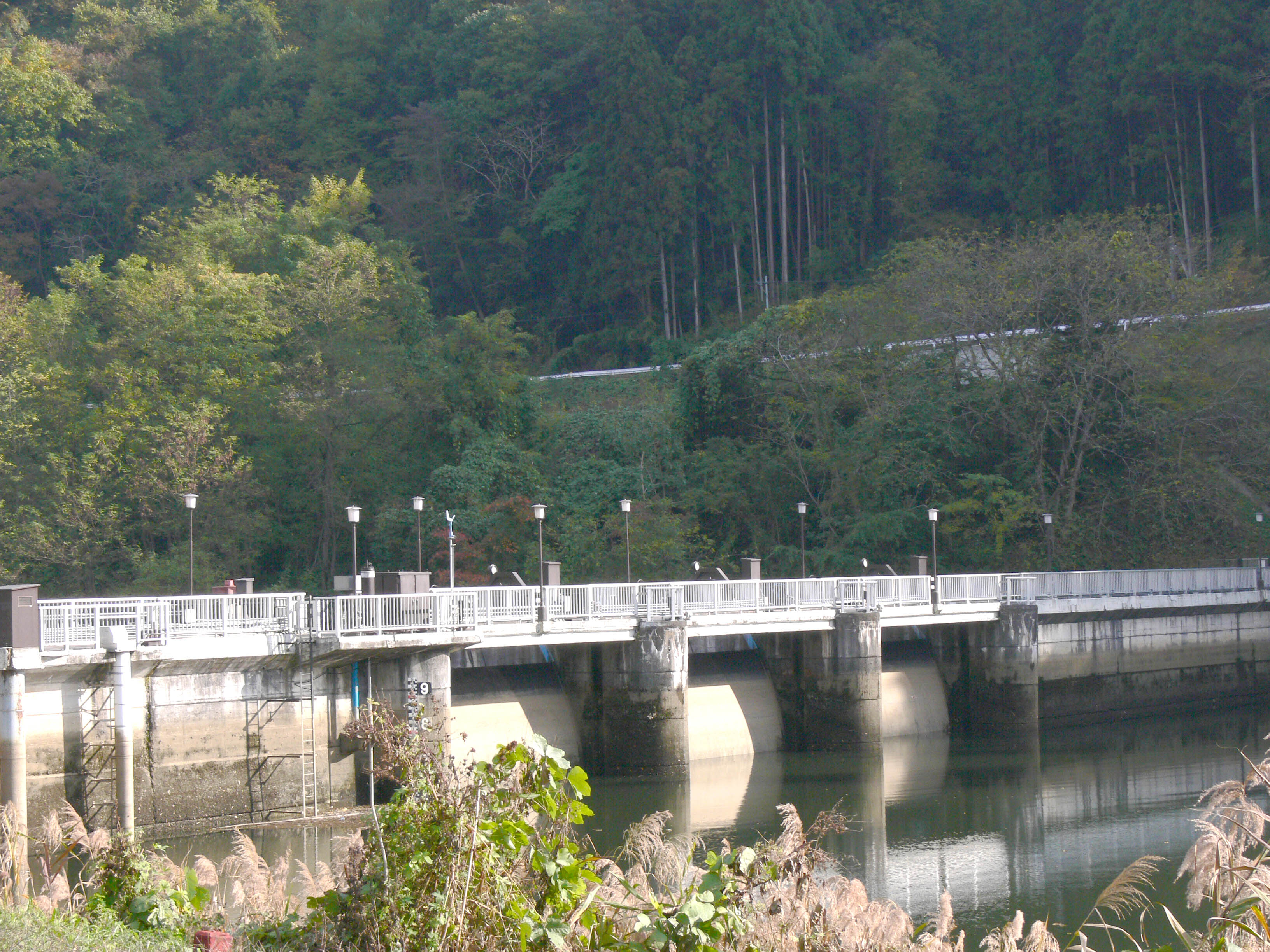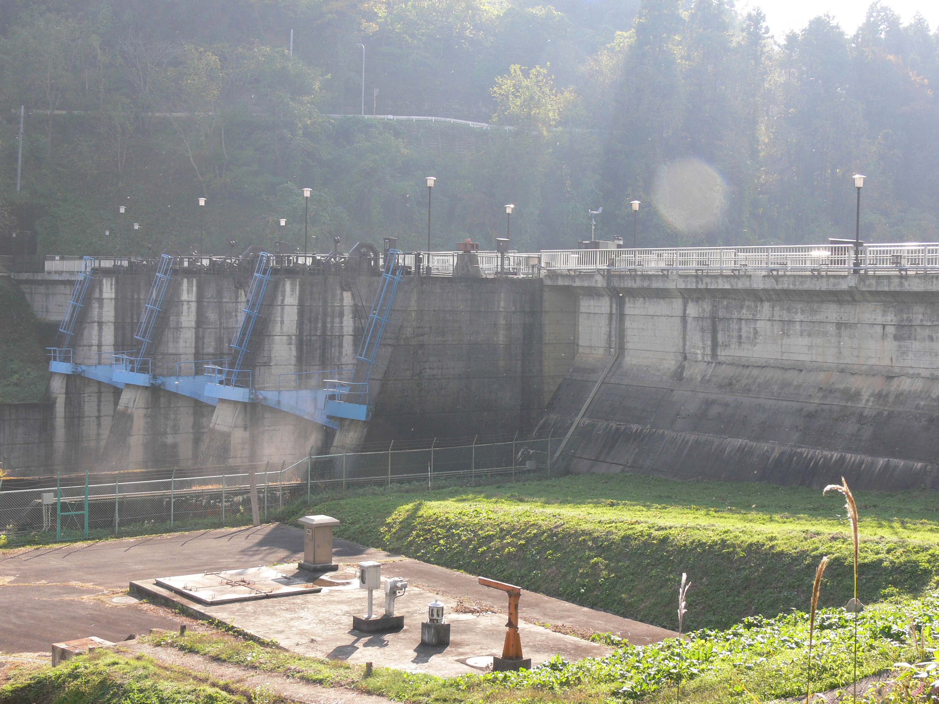 左岸から堤体を見る ラジアルゲートは3門