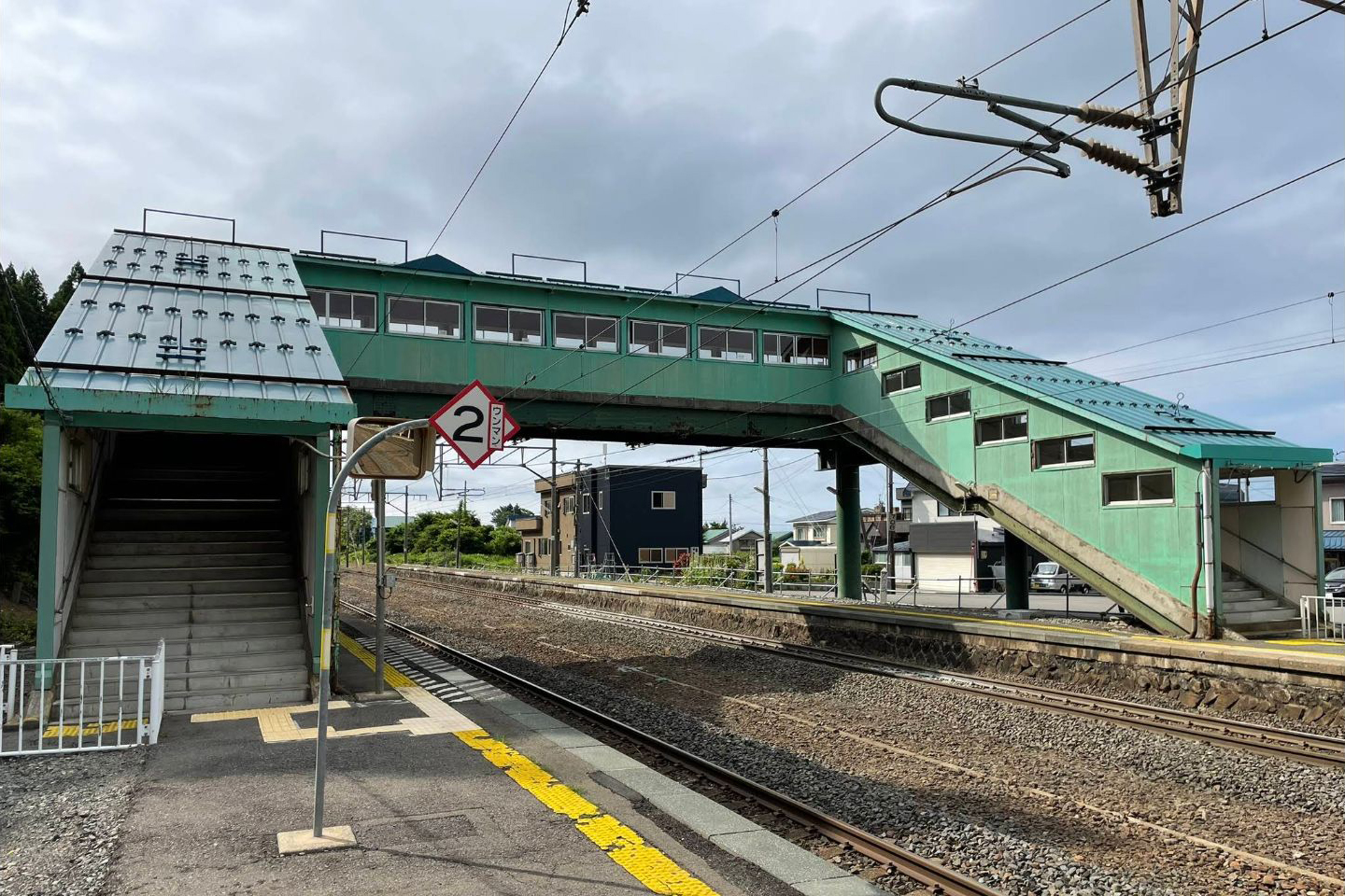 互いのホームは跨線橋で連絡している。木造駅舎を有する。