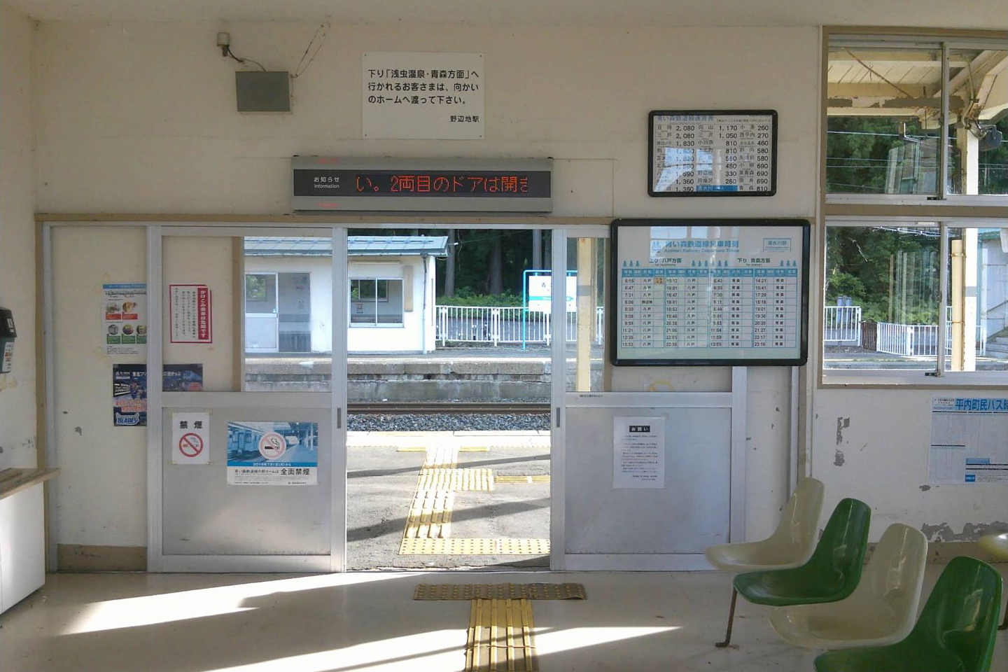 相対式ホーム2面2線を有する野辺地駅管理の無人駅である。