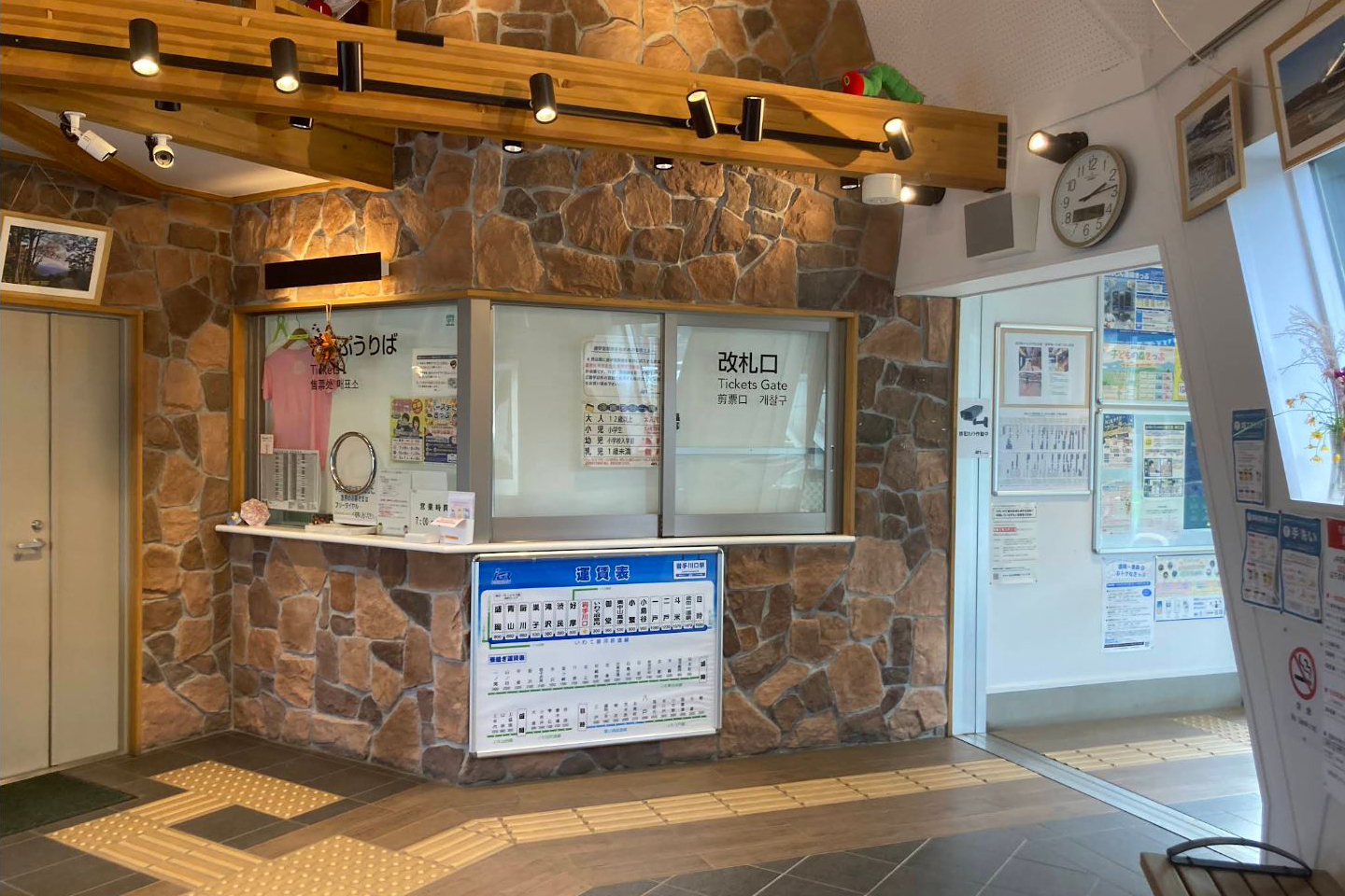 駅舎には出札窓口があり、硬券入場券・乗車券が常備されている。