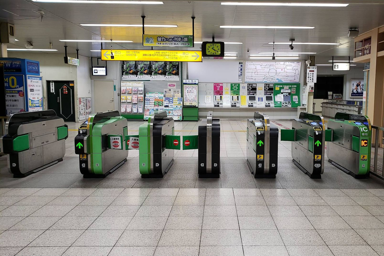 松戸駅管理の業務委託駅(JR東日本ステーションサービス委託)。お客さまサポートコールシステムが導入されており、早朝はインターホンによる案内となる。きっぷ売り場(自動券売機)に立ち食いそば店が併設されている。
